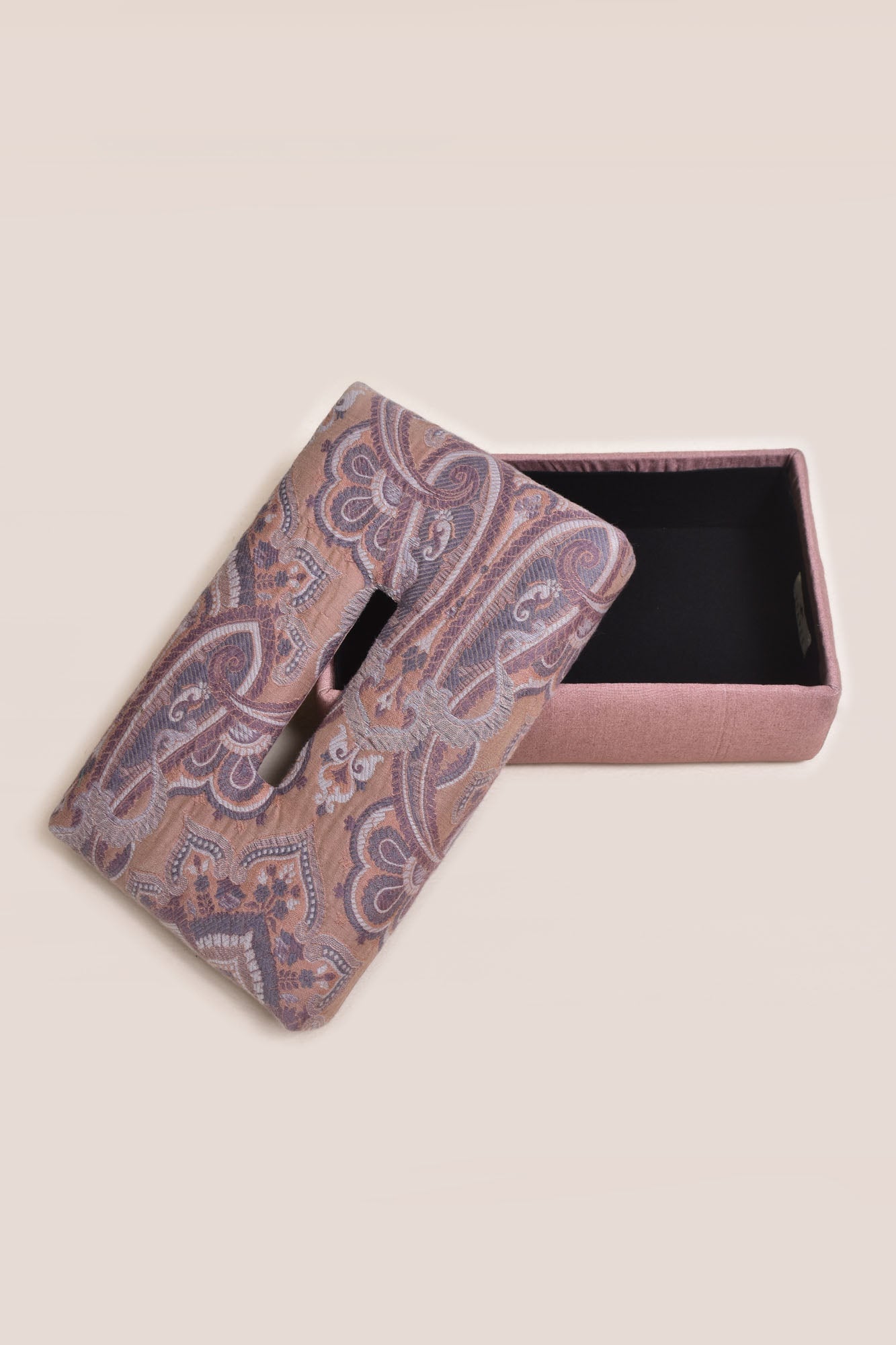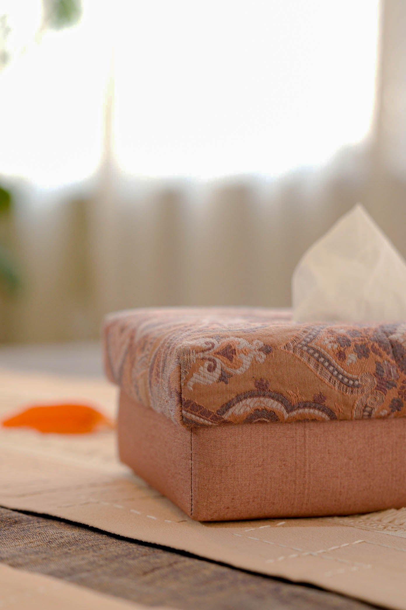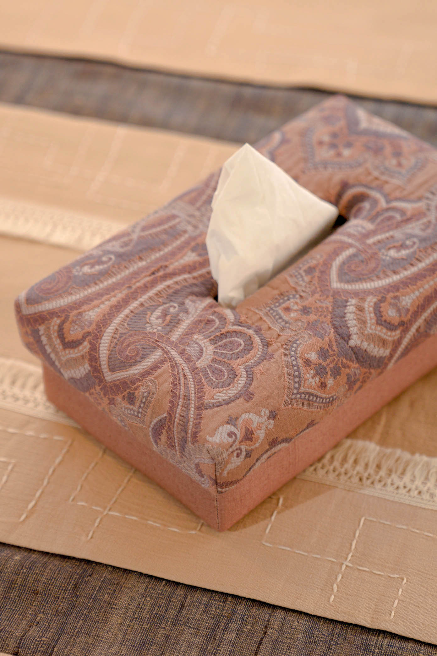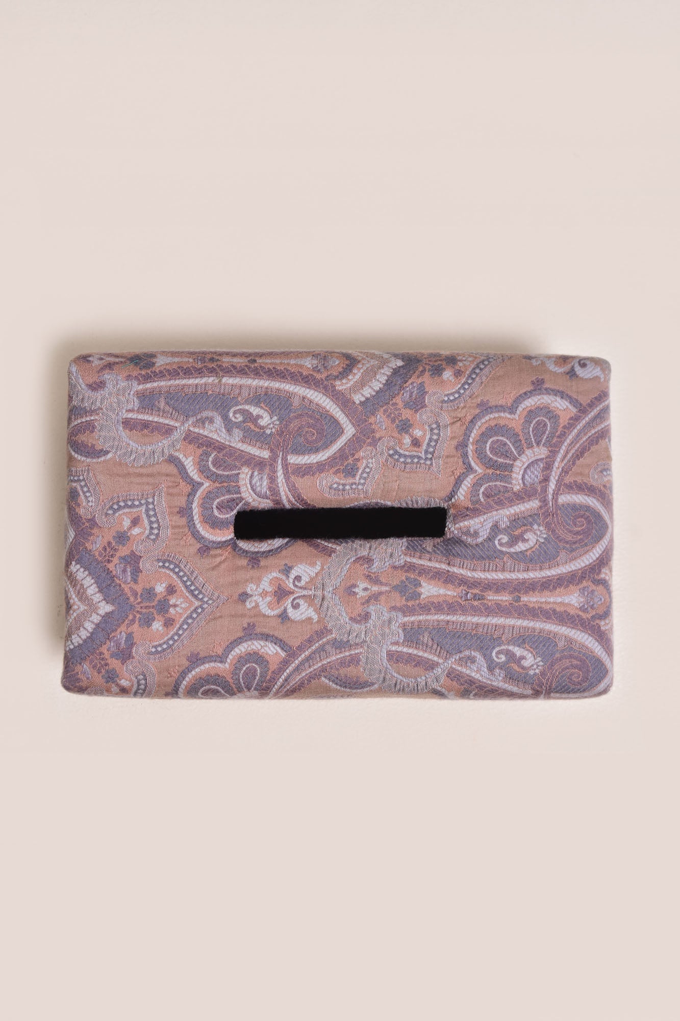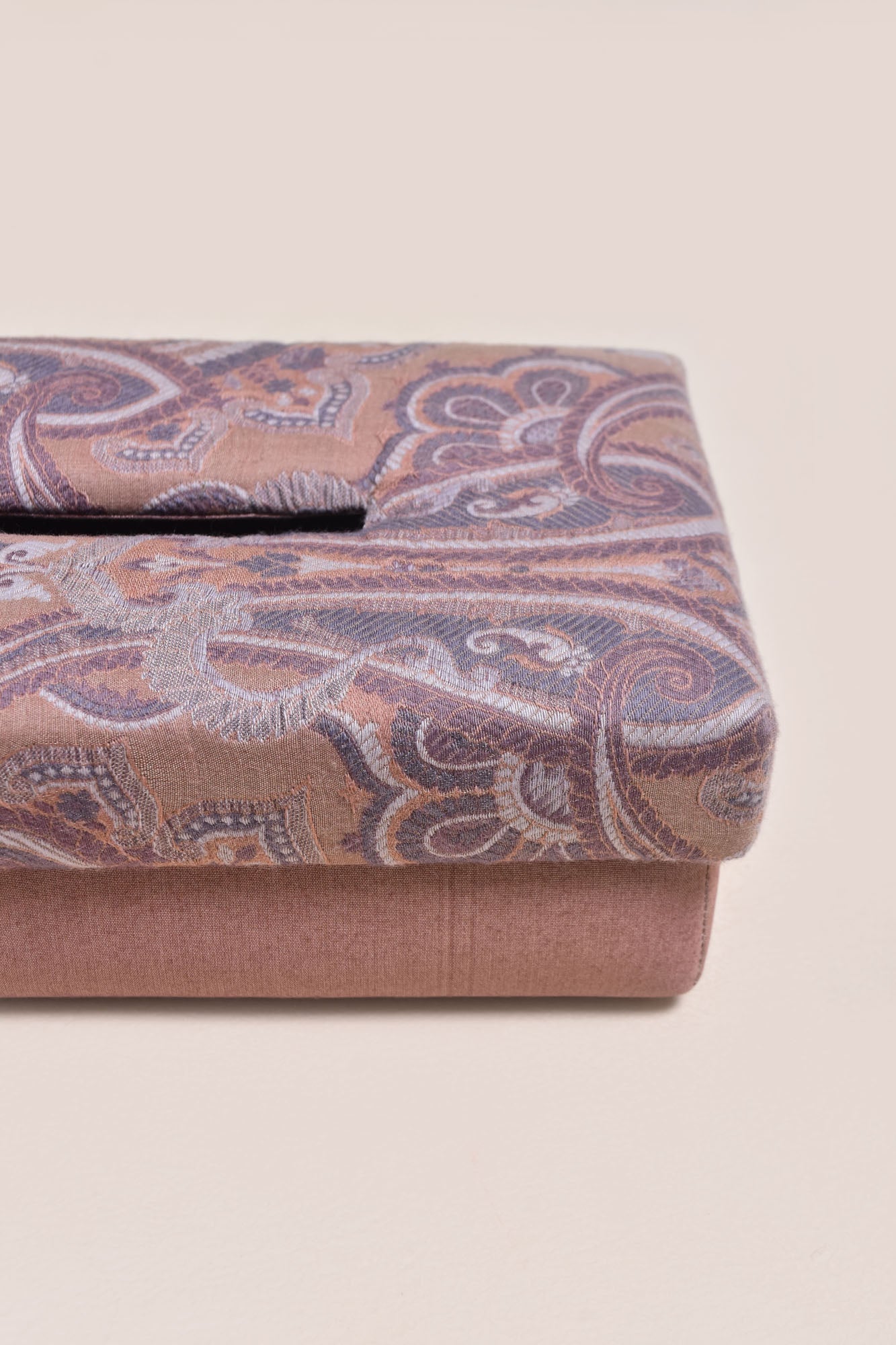 Instil the magic of fall season and its scintillating shades through the Ager handmade tissue box. Ager translates to ‘soil’ in Latin and the very essence of it is reflected on the soil brown hue adorned with paisley designs. What makes it stands out from the crowd is that it is handwoven on the Jacquard loom with pure silk and cotton.