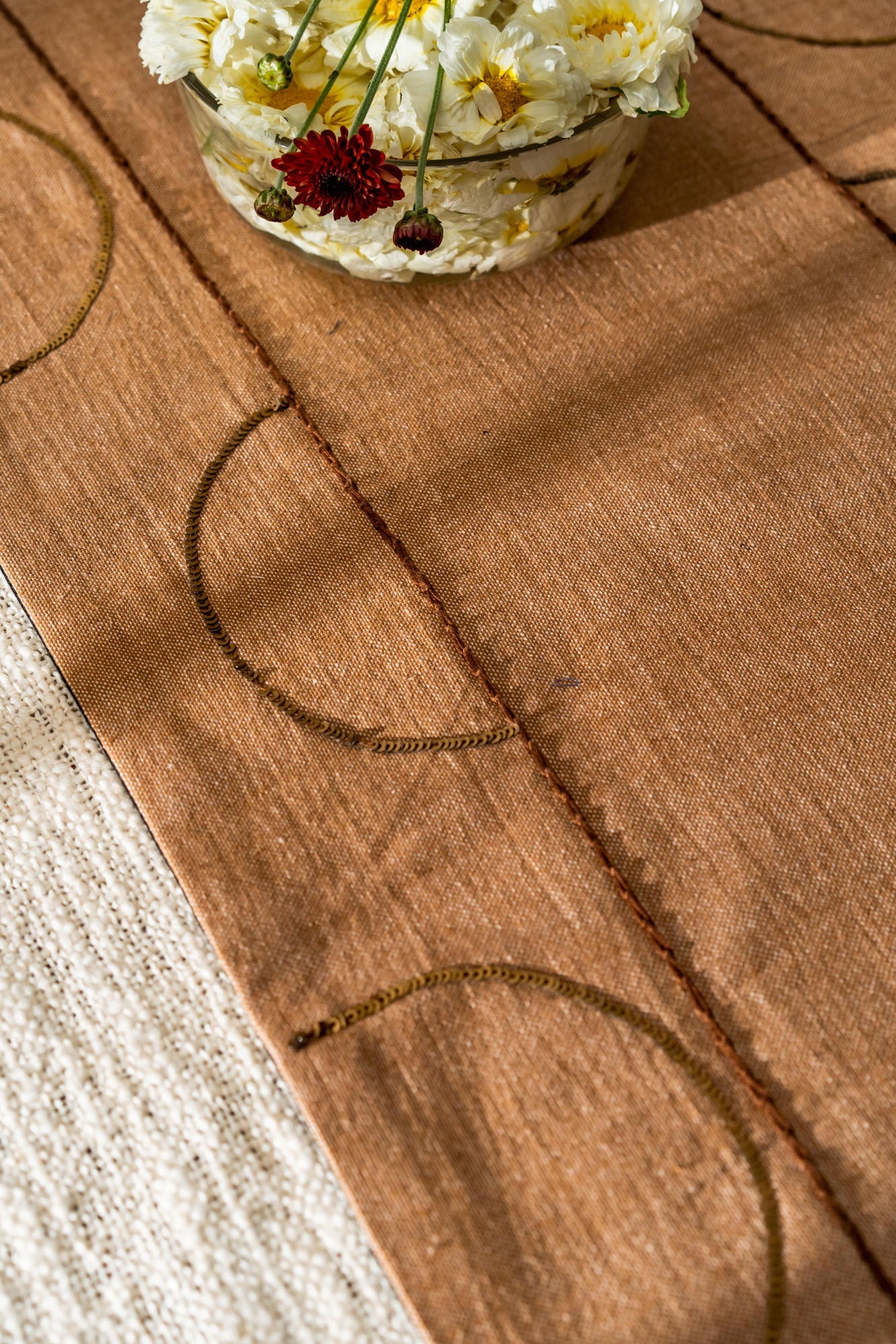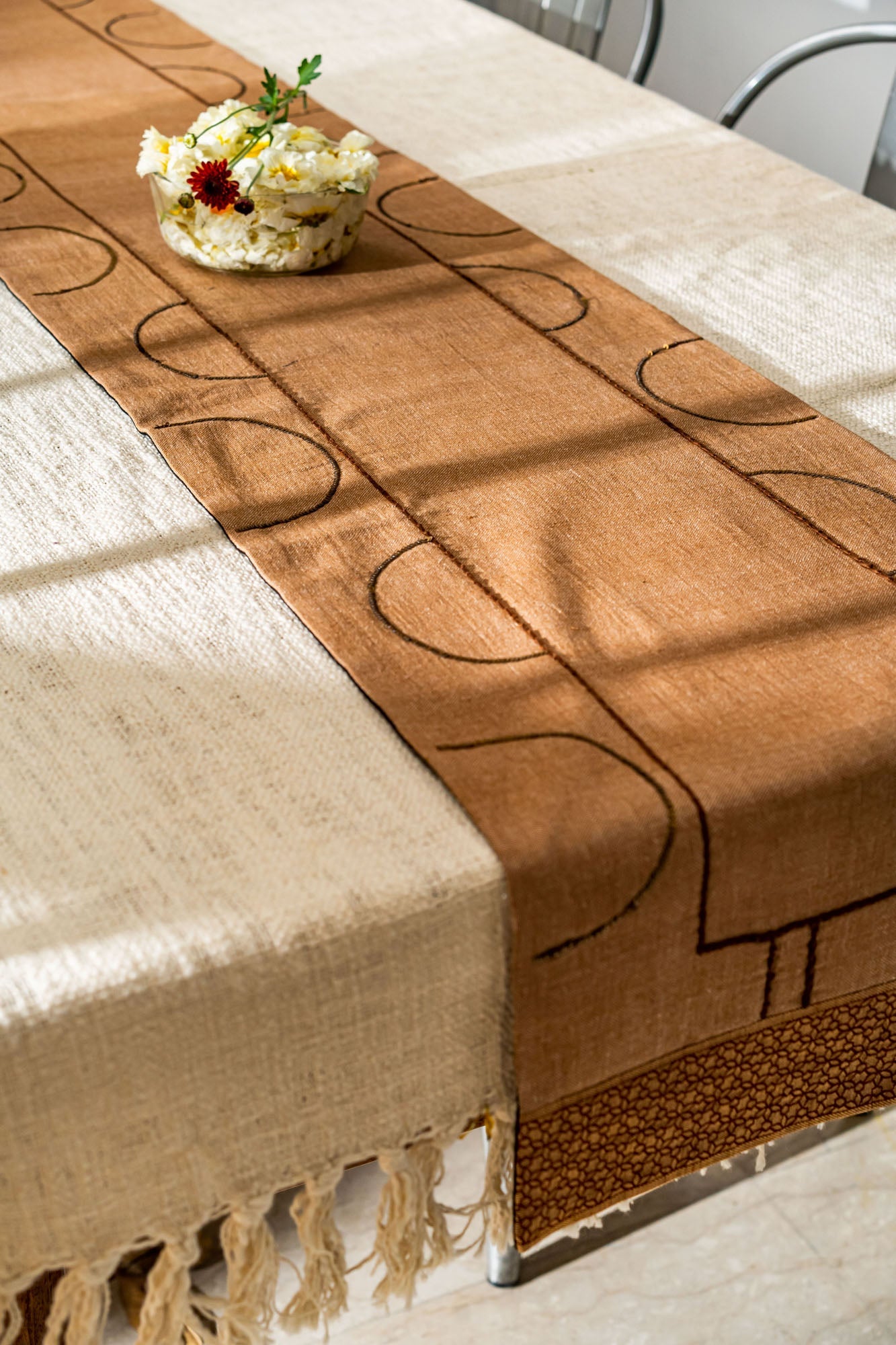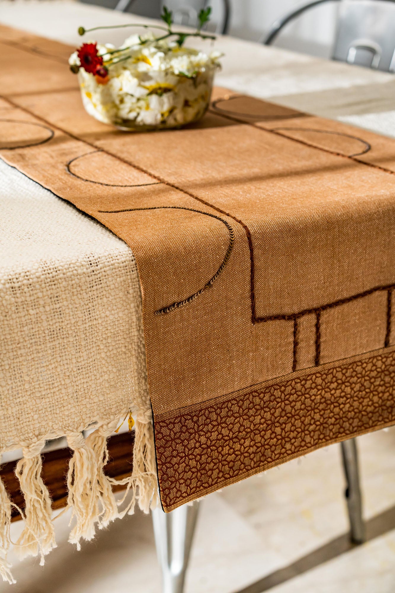 The ámmou table runner is shining for your table delights. Hand-worked cotton bordered liners have a copper base sequence hand work. The royal feast occasions would look great when the table runner is paced carefully.