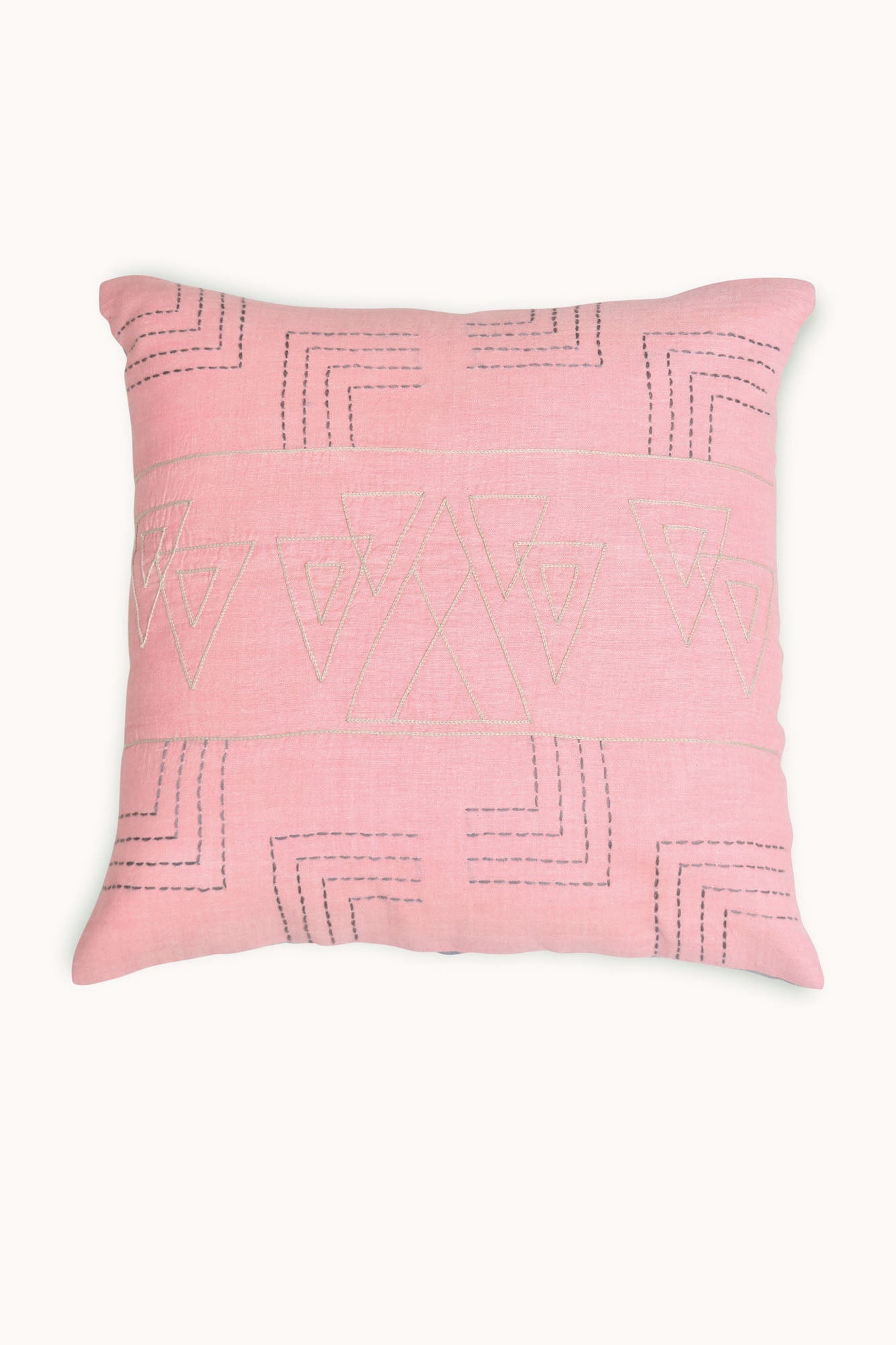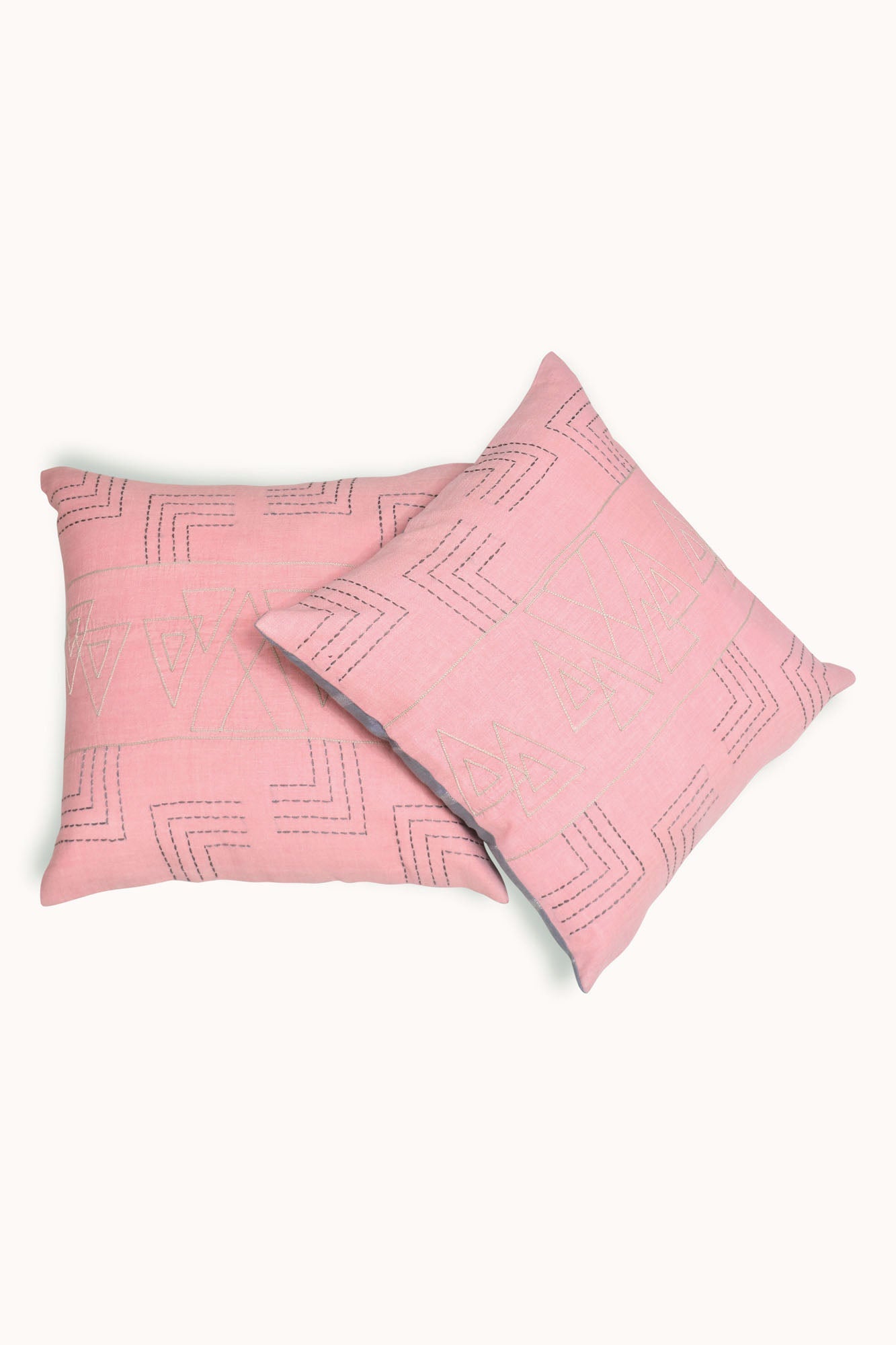 Ateri Synkrusi signifies contemporary sky. Inspired by Greek Art, the cushion cover set in handwoven, embellished with cotton chain and running hand embroidery. The flame of the spring arrow hints towards the breezy window direction. The illuminating colours match with the arrival of spring, best paired with colourful subtle themes.