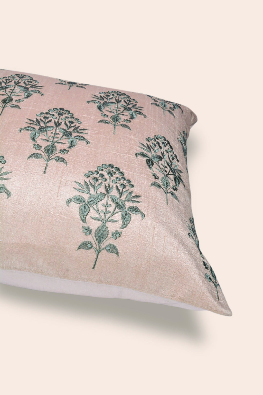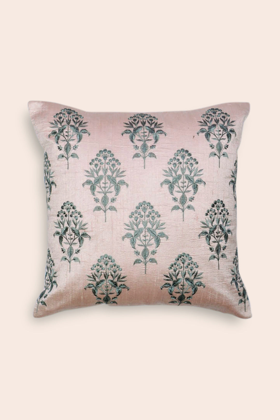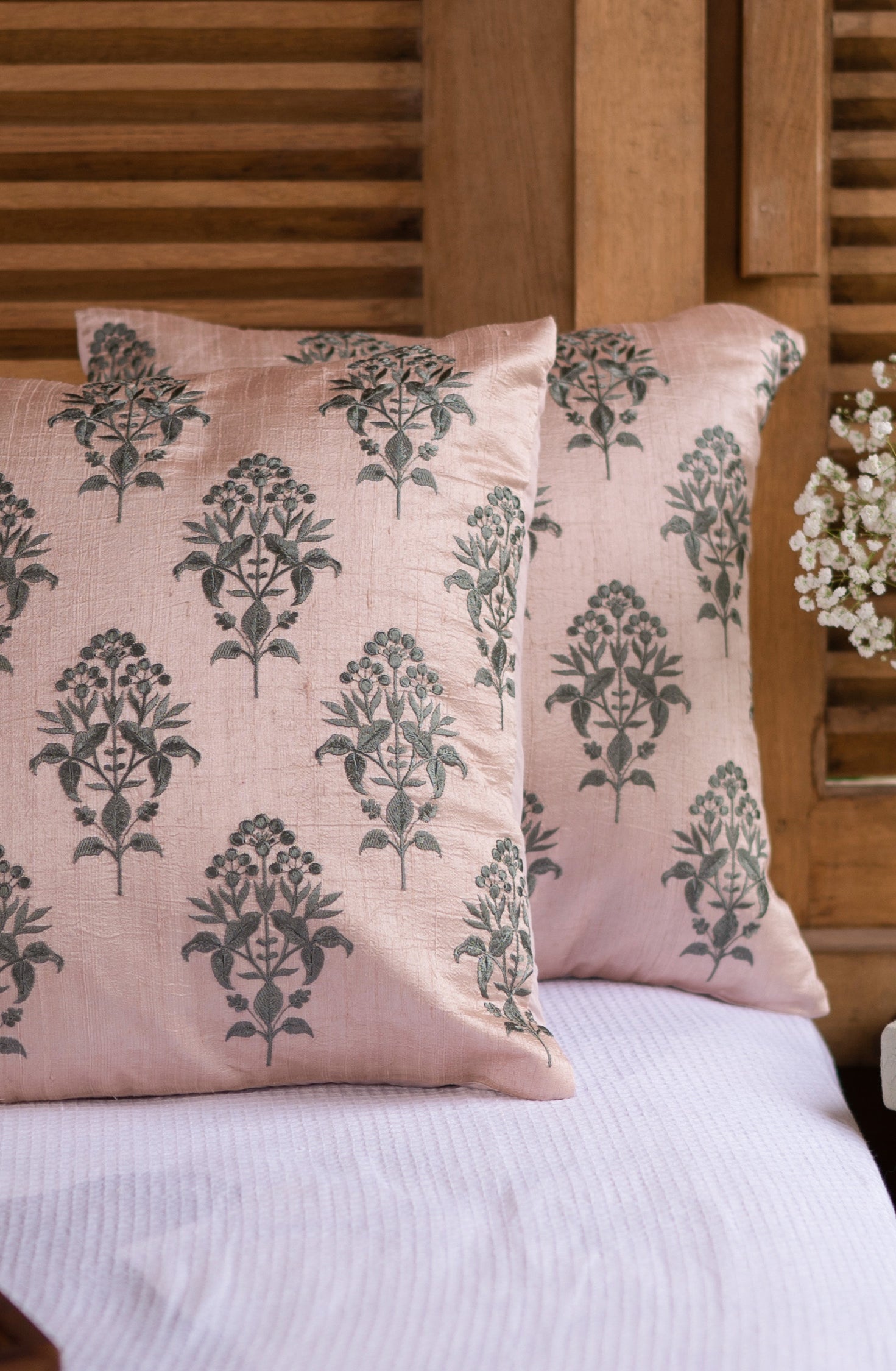 Our Babur Handwoven cushions are embroidered with floral bouquets to elevate your space with a scintillating spirit for the season. Inspired by the William Morris art, the dupion silk cushion in onion pink adds a touch of artistic flair to your festivities.
