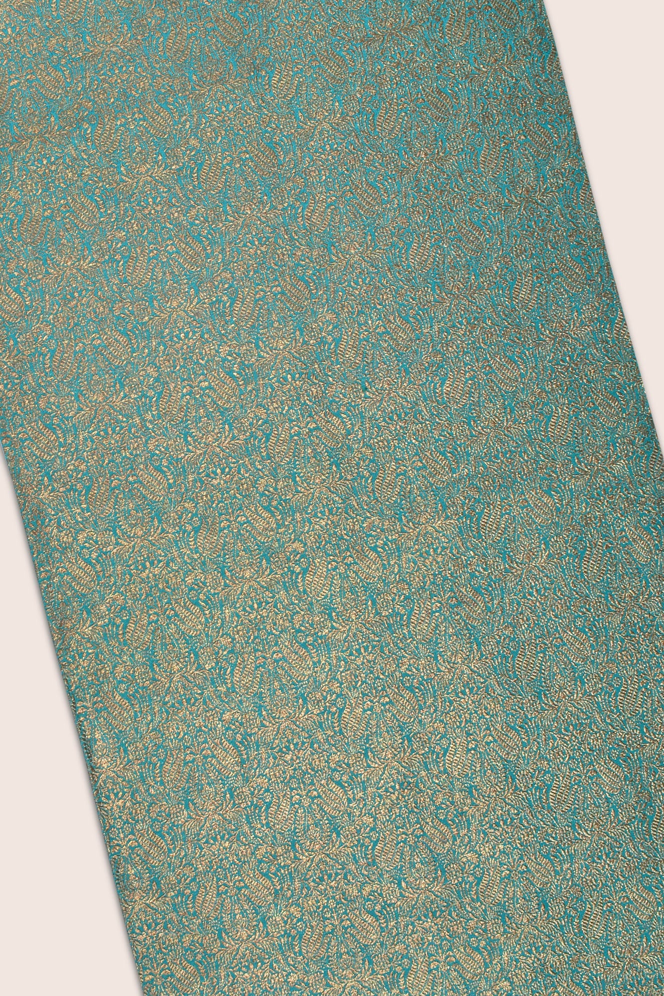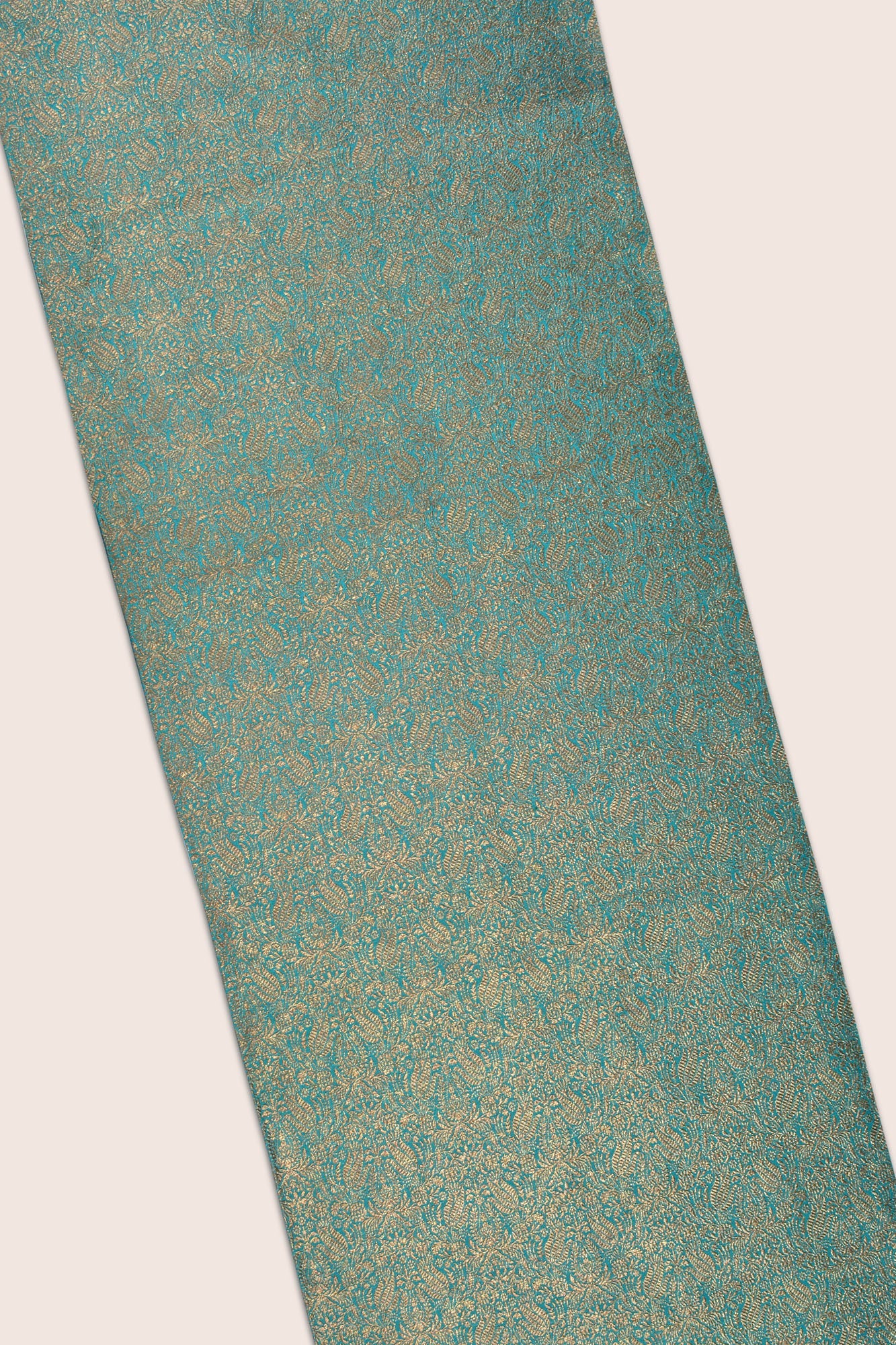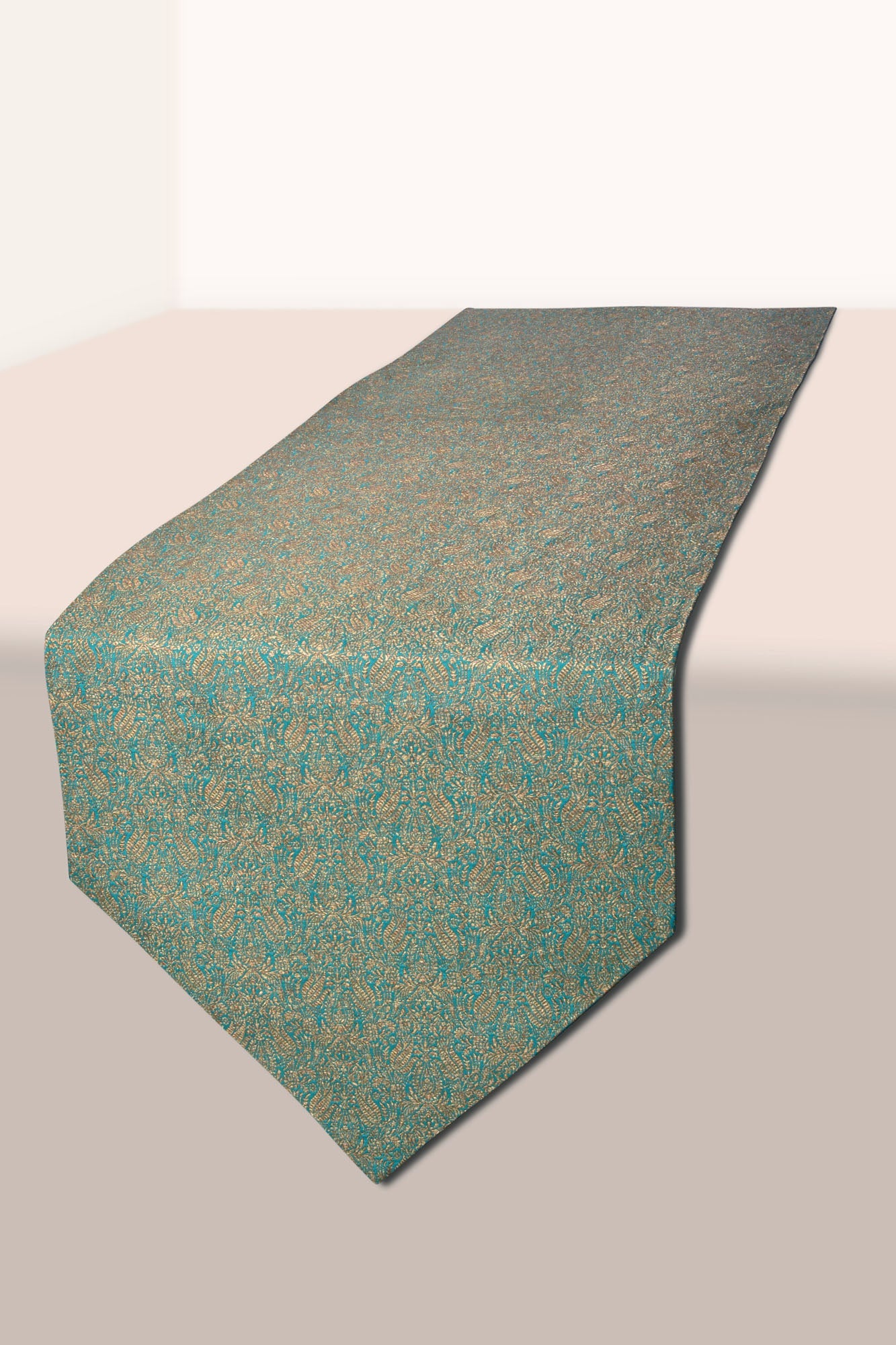 Decorate your festive tablescape with our Banu handwoven table runner that is luxuriously crafted in metalic gold zari using jacquard weave. Inspired by the persian artform, this silk cotton table runner is richly patterned with golden paisleys on a water garden green.
