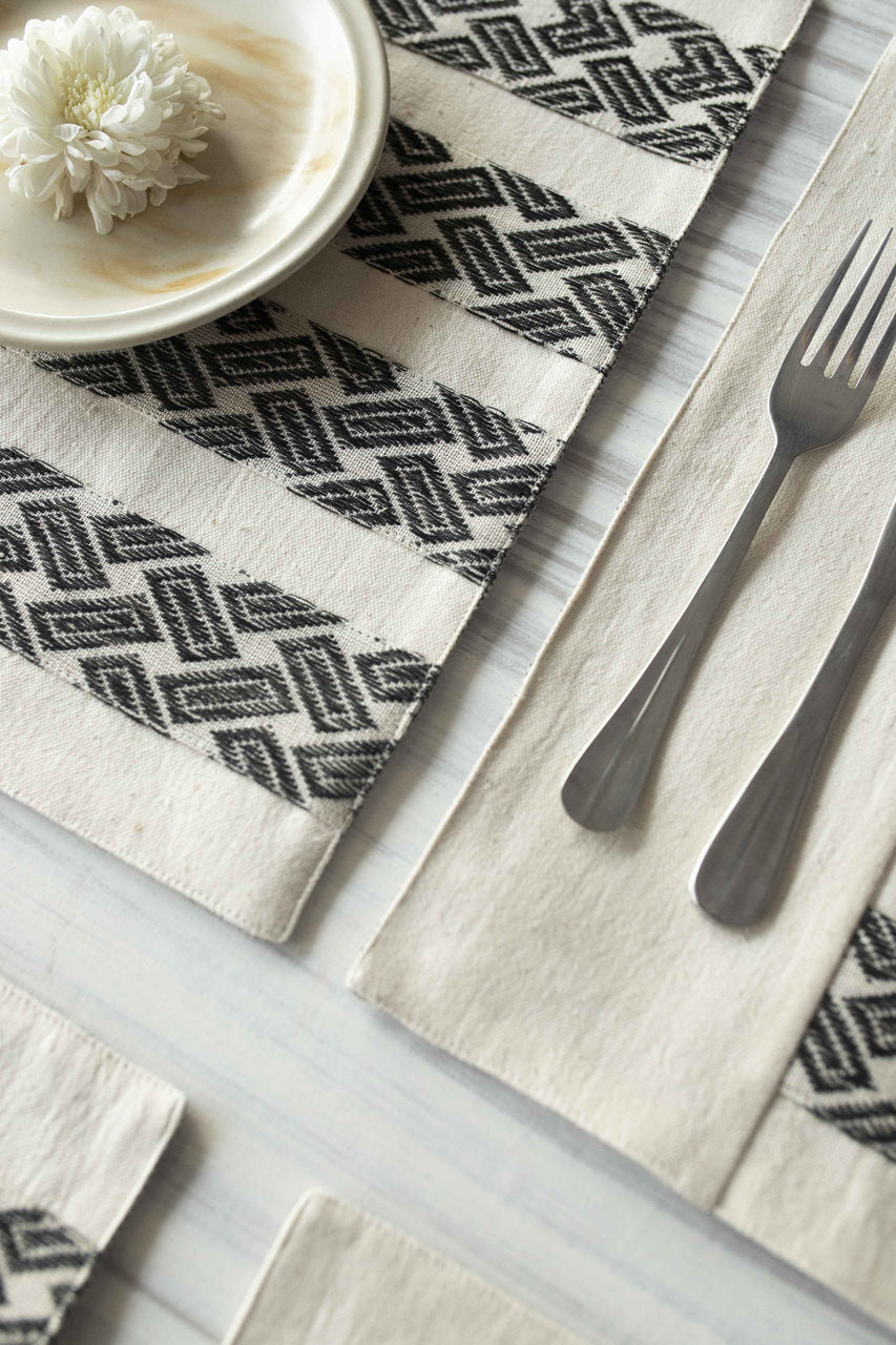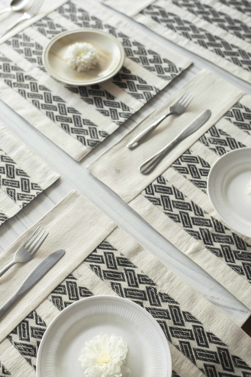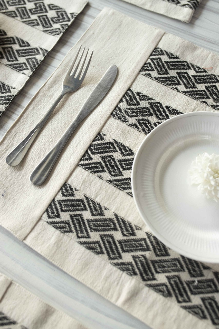 Our handwoven pure kala cotton placemats depict a beautiful soul or Bella Ame (a beautiful soul). Adorned with a handwoven jacquard patch, every other aspect is handmade with care too and therefore, unique.