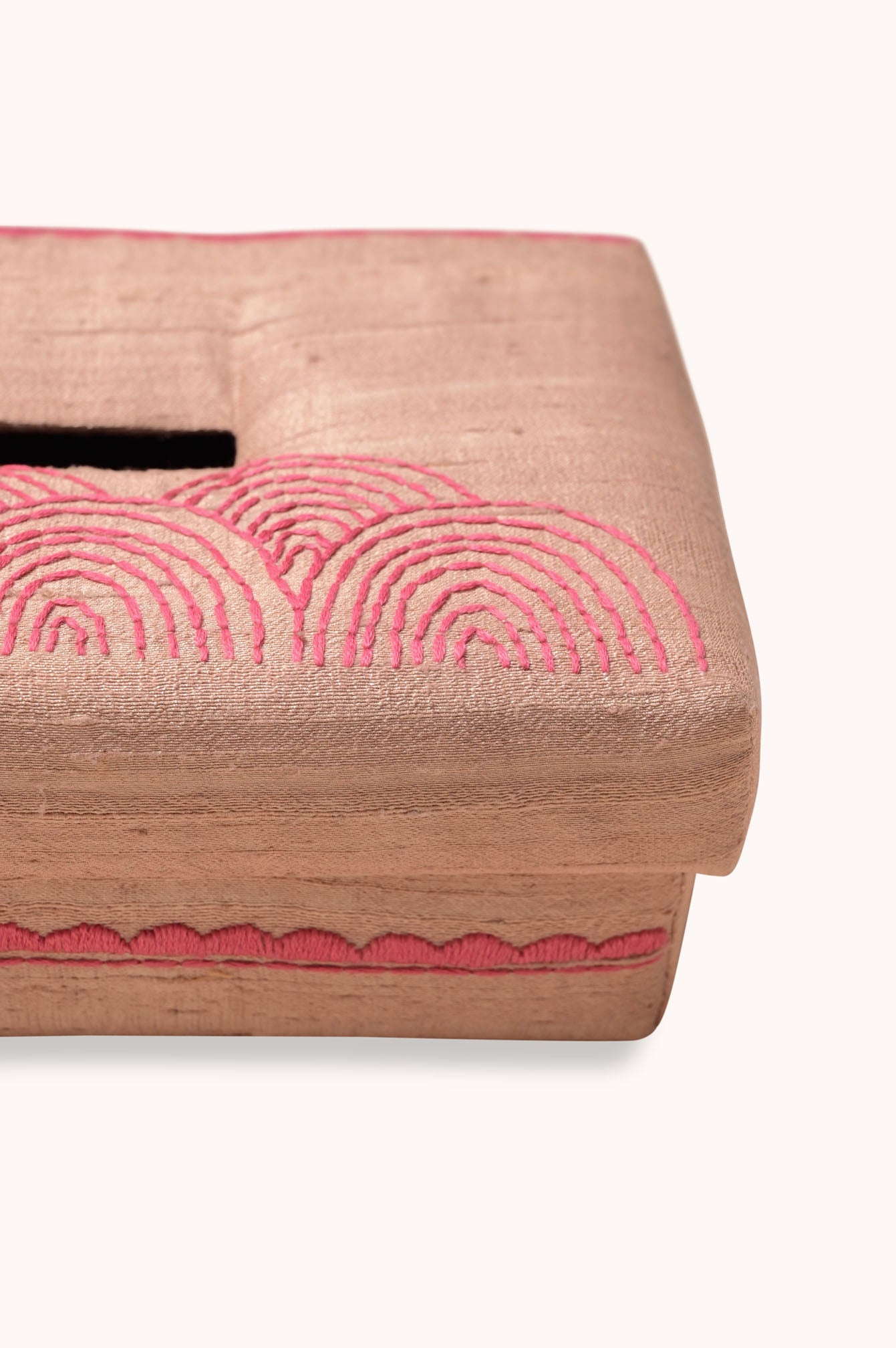 The Bev tissue box is handcrafted from silk with our threads of care, that engages with the exuberance and the passion of mazes and geometry by the Maze culture. This accessory blends well with any setup in any room and/or occasion.