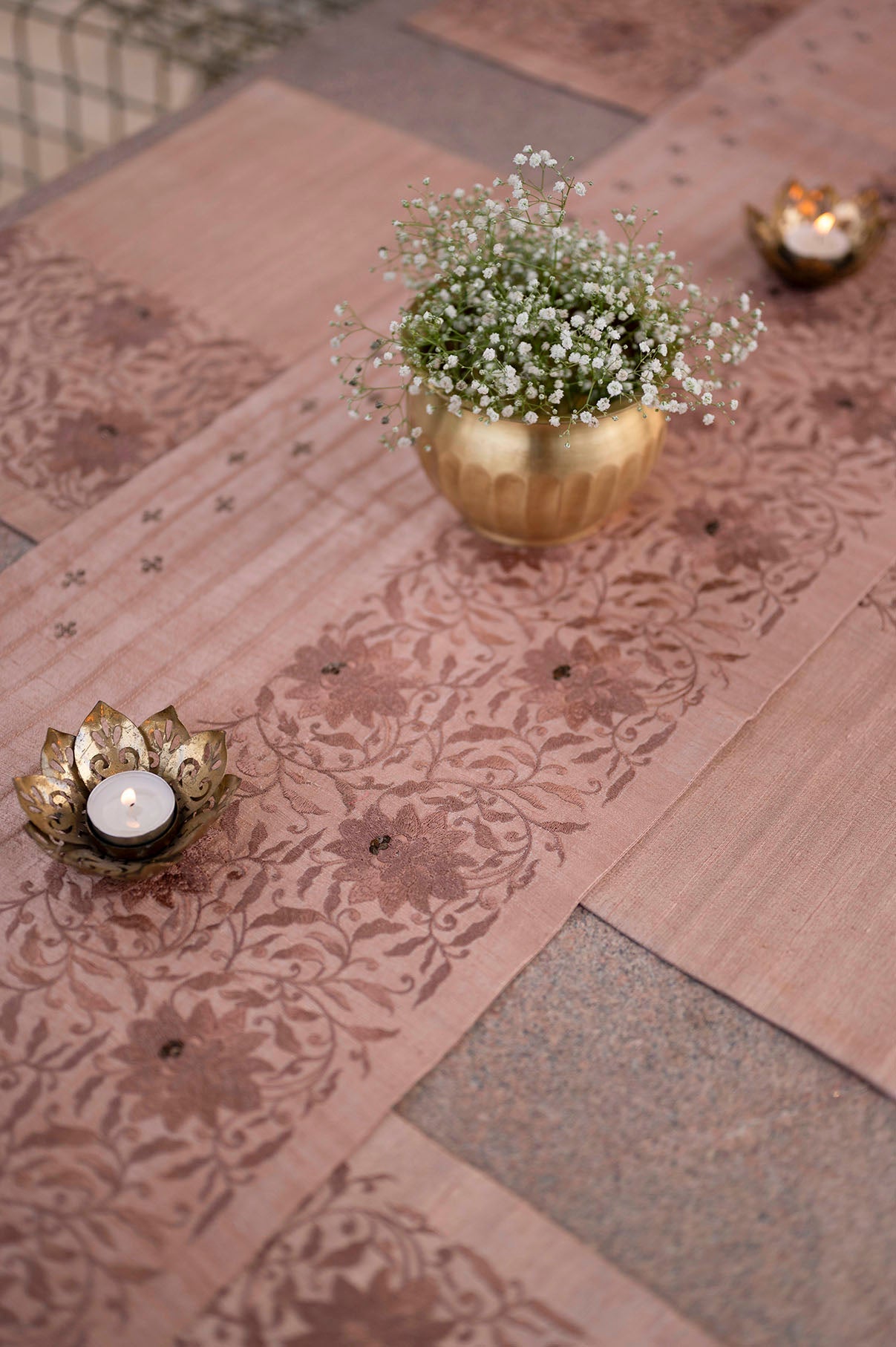 Evoking the spirit of the festive season, our Cora Handwoven Dining Set is artistically crafted with floral motifs on dupion silk. The William Morris art-inspired style of patterns completes the look of your home this festive season.