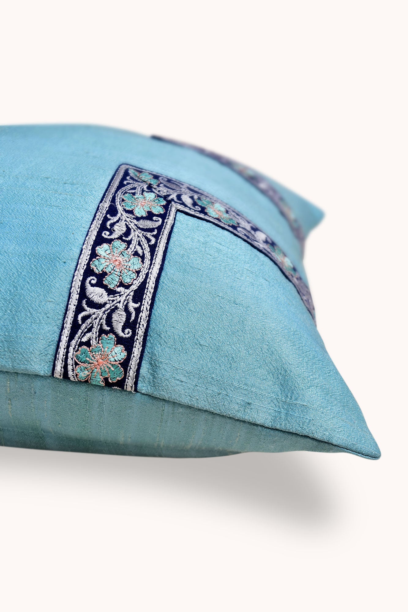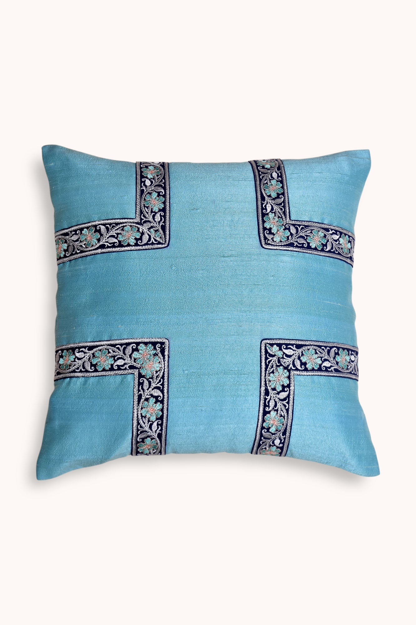 Crossvibe is the cushion cover in hand-woven dupion silk that has a embroidered lace four-side in floral patch design. The holistic vibes give you every chance to discover peace while working. Place them on ritualistic and busy furniture.