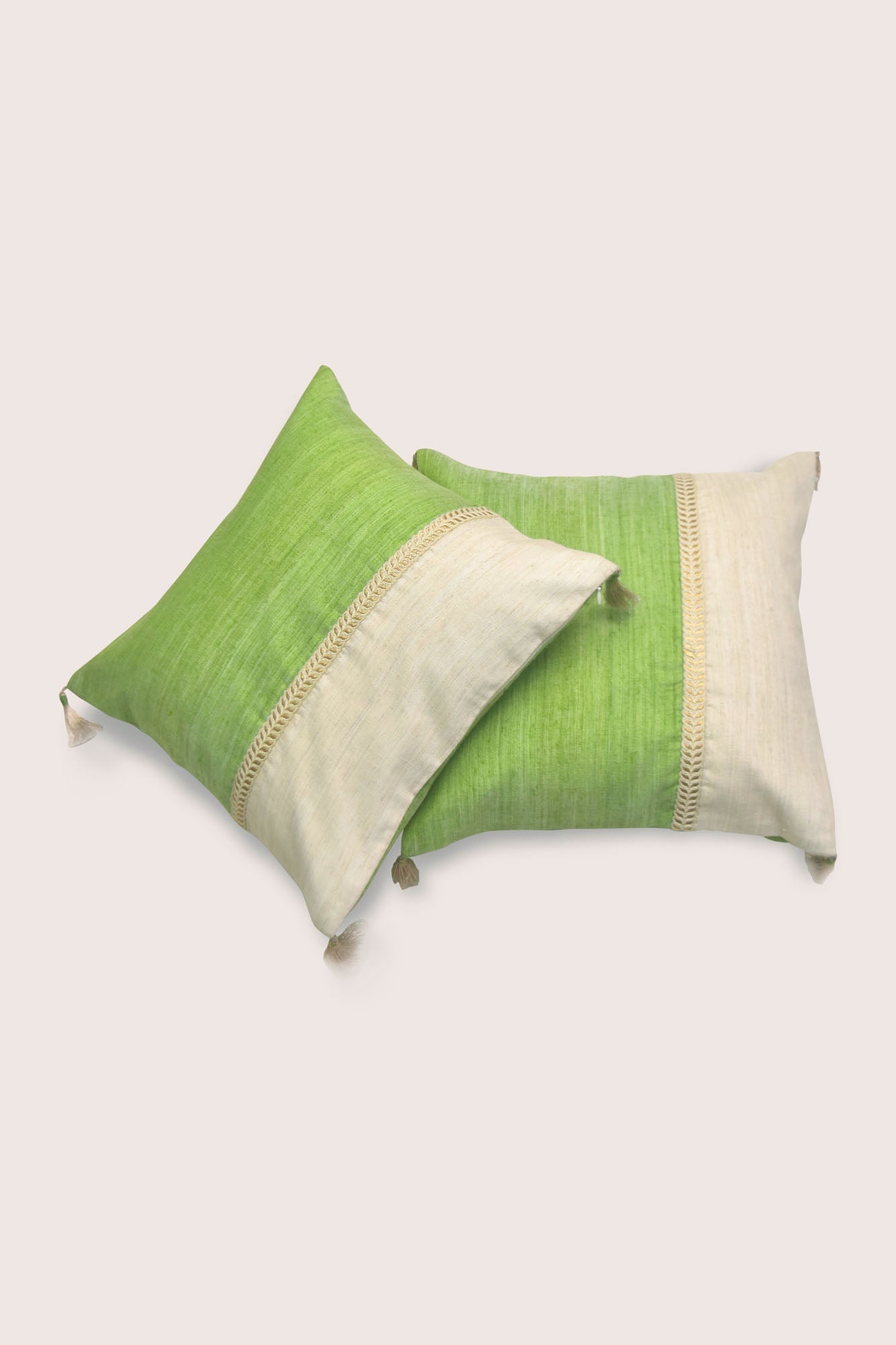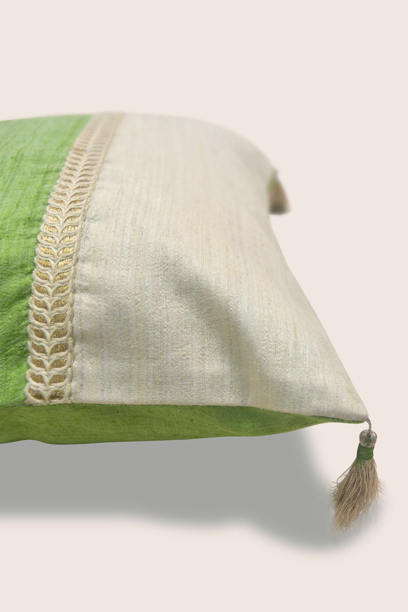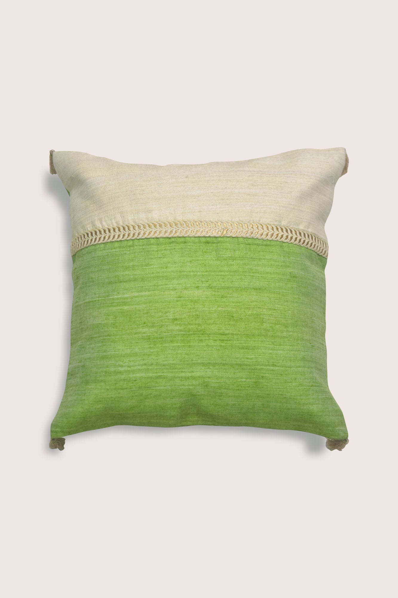 Bringing in a splash of green into your living room adds an extra edge to your overall set-up. Handwoven with pure Dupion silk as well as Matka silk, the Cypress 16’ x 16’ inch cushion comes in a vibrant shade of green with hand-embroidered zaree borders and zaree tassels on the four corners.