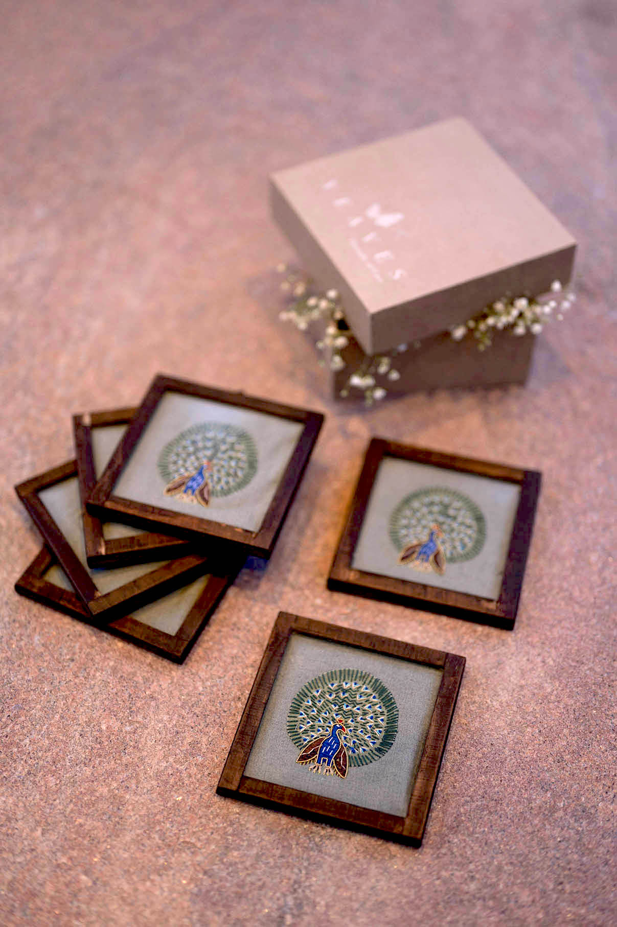 Dancing Peacock Handwoven Coasters - Set Of 2 Pcs
