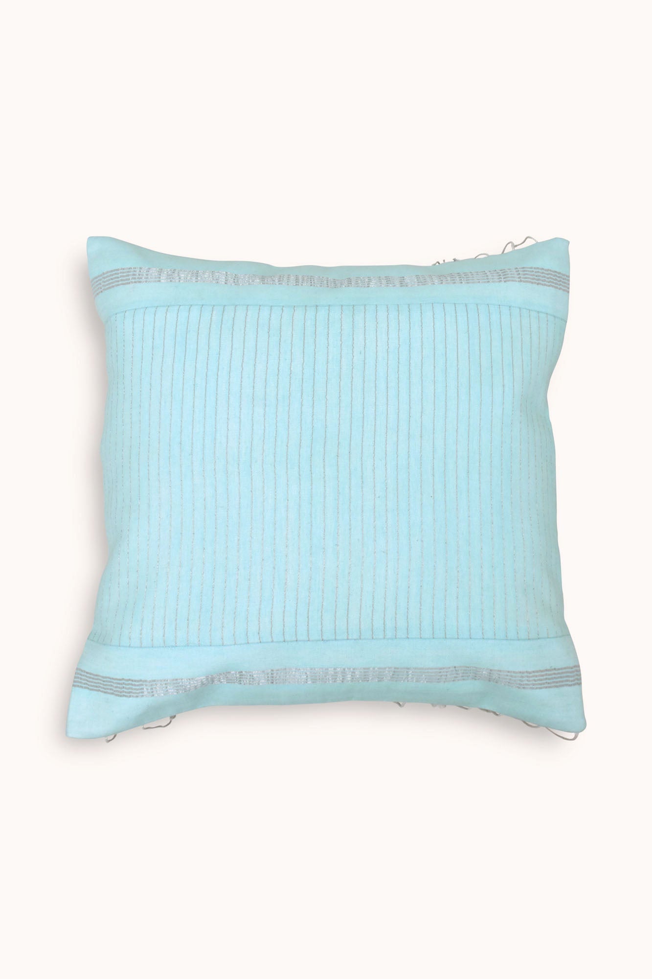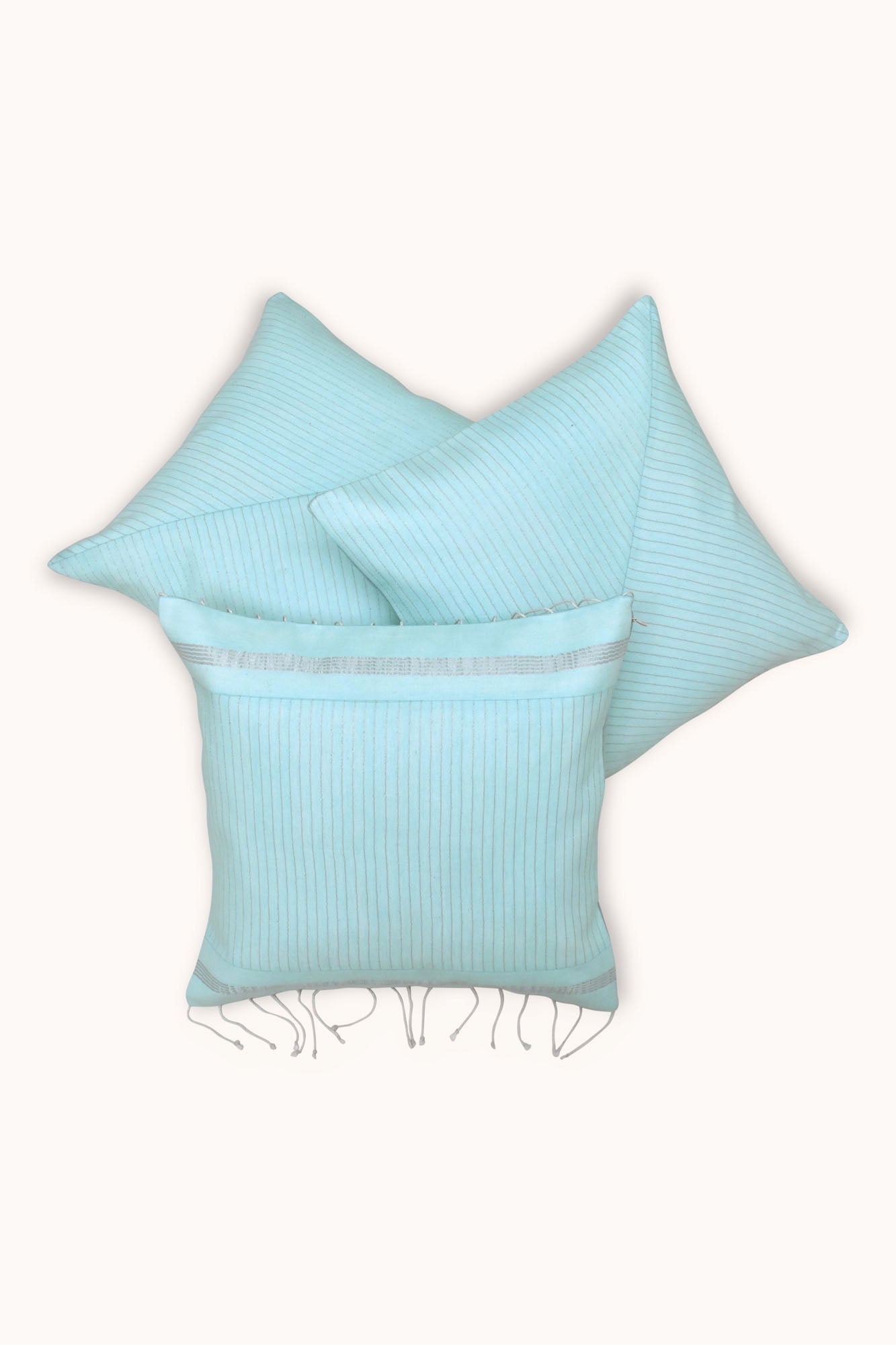 Envolvement del Cielo means enveloped in heaven's hope that is handwoven linen cut patchwork with single fabric. The applique work has simplicity and uniqueness for sheltered usage in the symmetrical furniture ambiances.