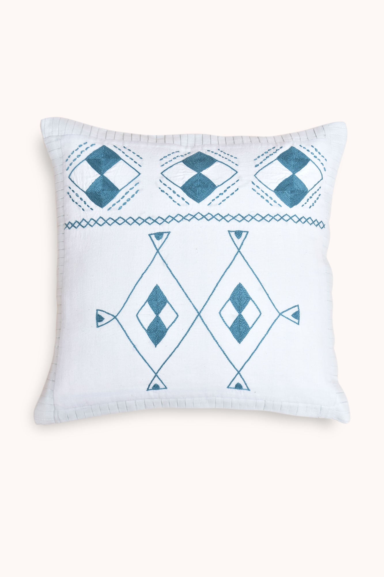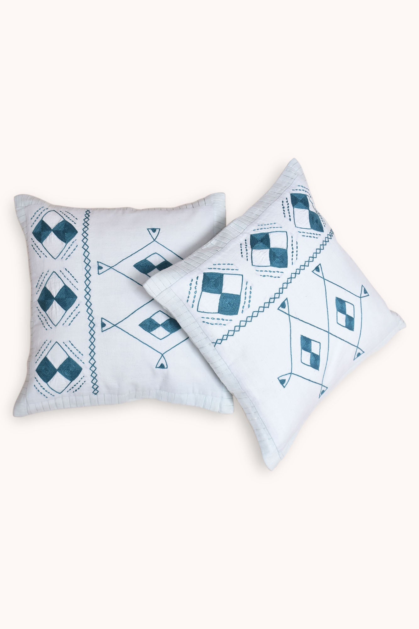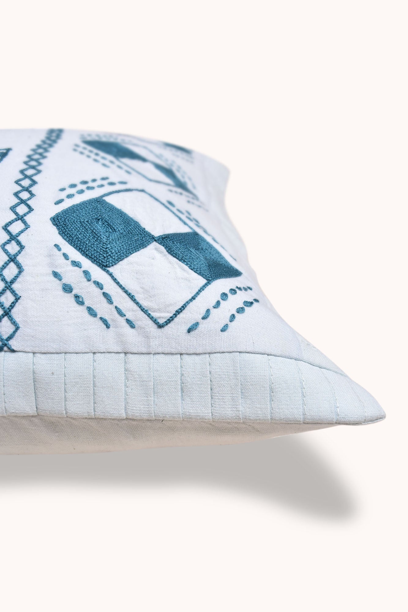 Estrellas is the name of an ancient star that resembles purity. The handwoven cotton cushion cover features hand embroidery and pleated design. The Mapuche hand artwork too features twin stars in the background. The shining Estrellas can add elegance to any furniture.