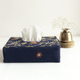 Aurora, denoting dawn is handwoven using pure cotton. The colours of the sea and the sky beautifully meld in this signature tissue box that weaves together a rich and vivid navy shade with hand embroidered soft gold hued threads.