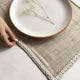Featuring a lovely natural colour, Mångata tablemat depicting reflection of moon on water. It is handwoven in twill ghicha cotton and fashioned with lace handwork. Versatile and dynamic, they can be placed on your dinner table, coffee table or even a dresser for a raw chic look. Its a Double sided Mat, you can use both sides of the mat.