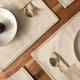 A beige shade of khadi-kala cotton is interspersed with a dynamic stripe pattern and patchwork in our handcrafted table mat isiko stating traditions, adding to it's delicate appeal. And the best part? It will pair well with all kinds of table settings - modern, cultural, edgy or minimalistic.