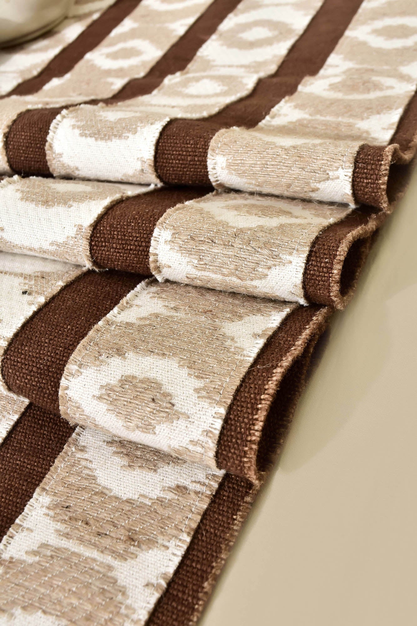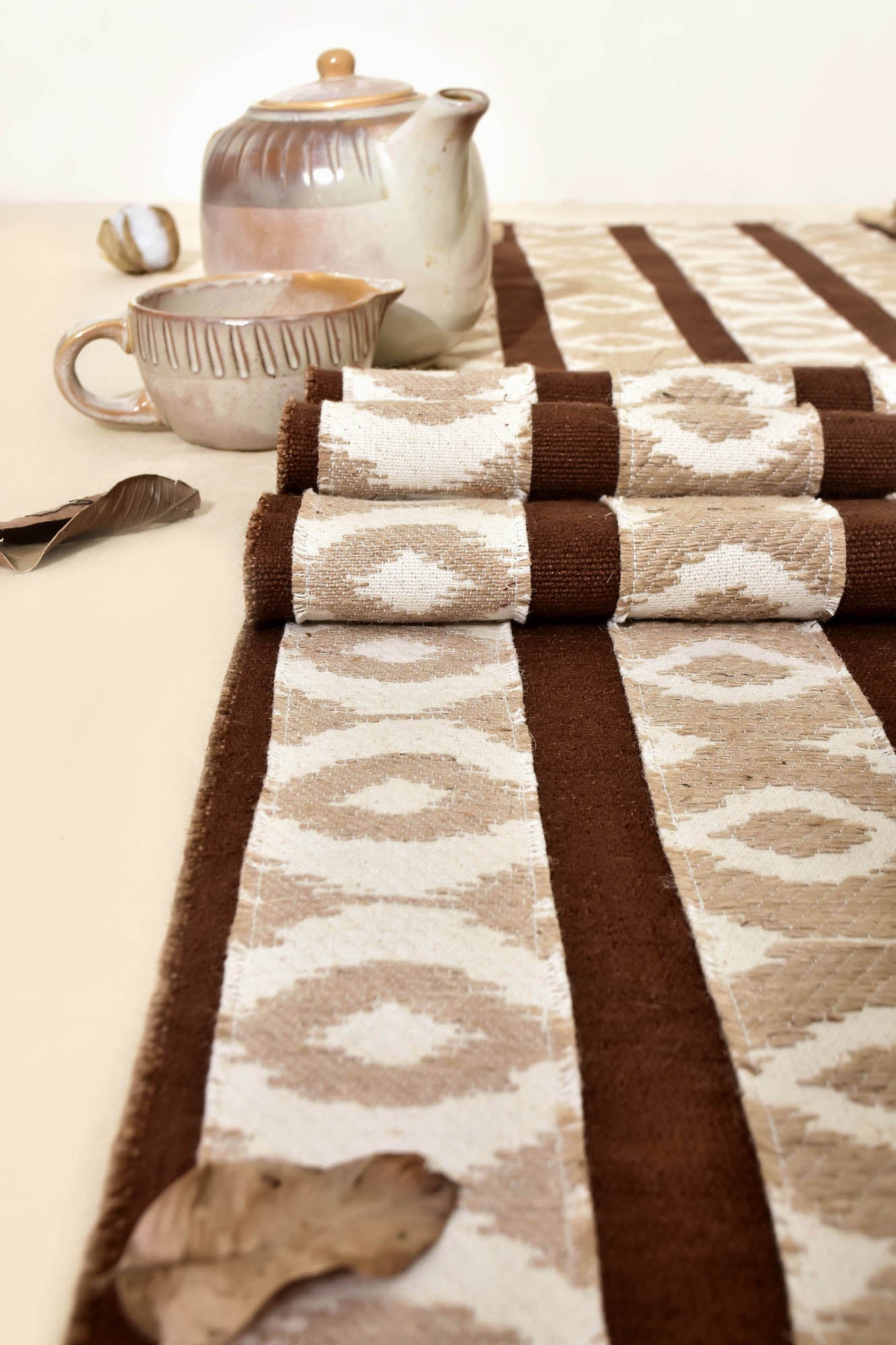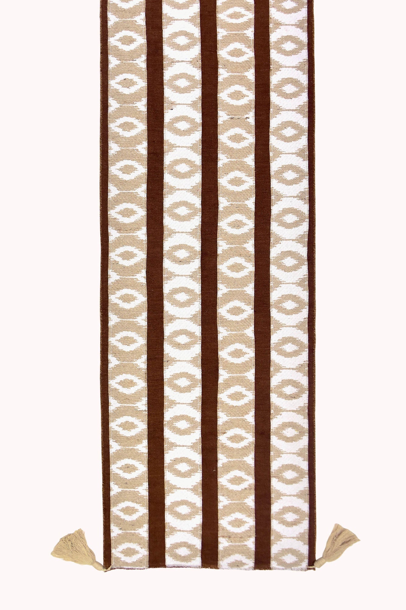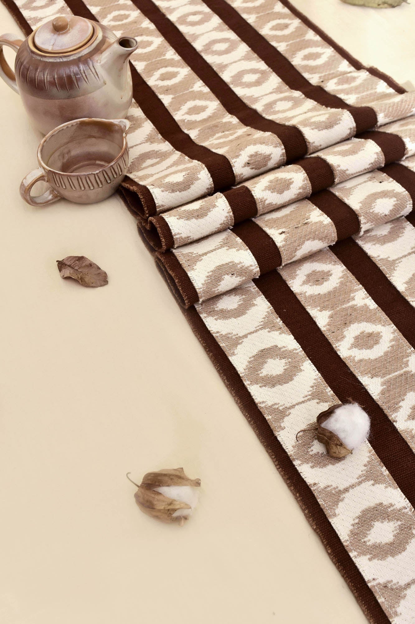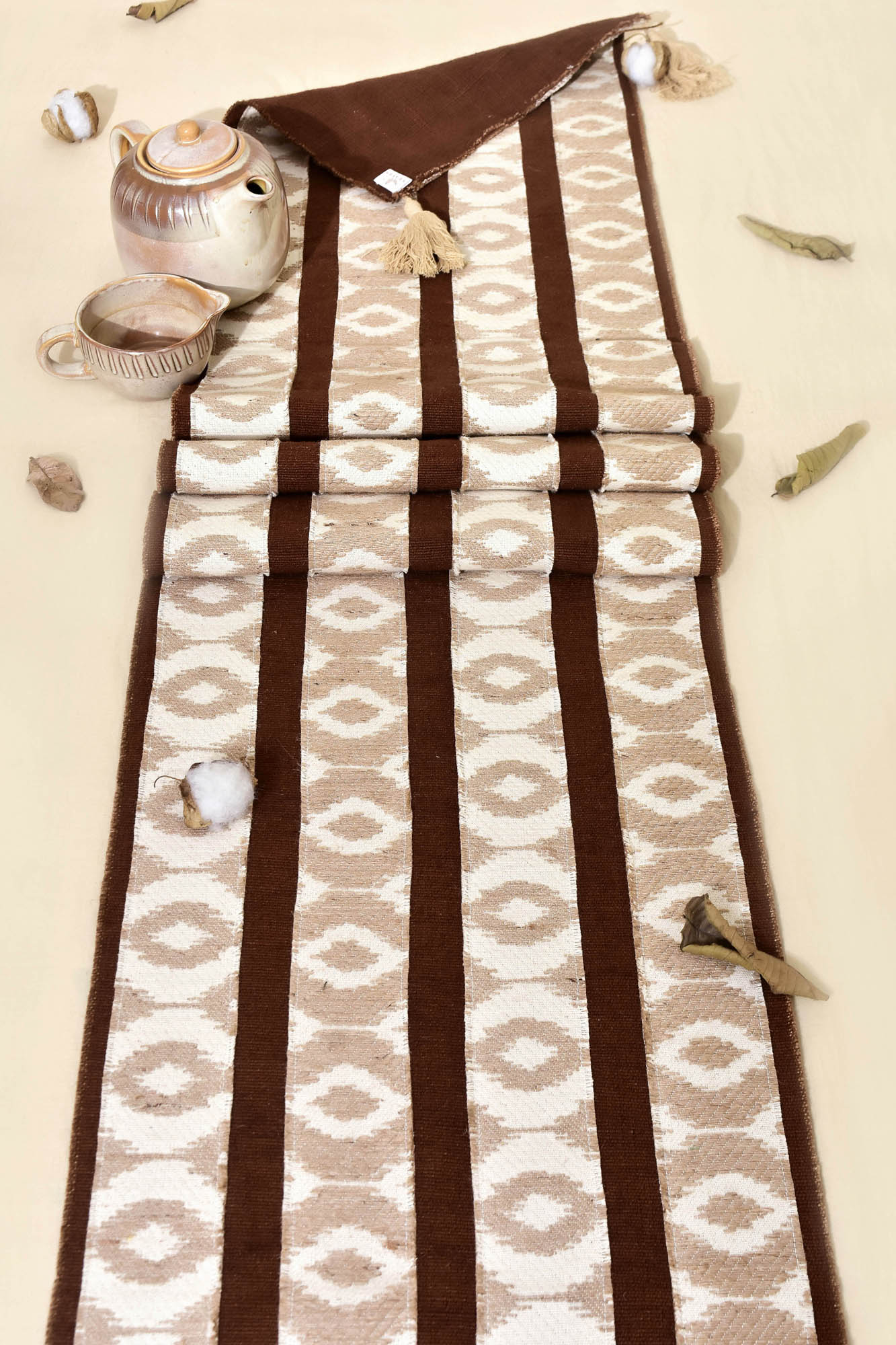 The majestic beauty of geometric design is depicted on our beige cotton table runner. Specially handcrafted for your home, the artisans vision is translated seamlessly through a patch that can be cherished day and night alike.