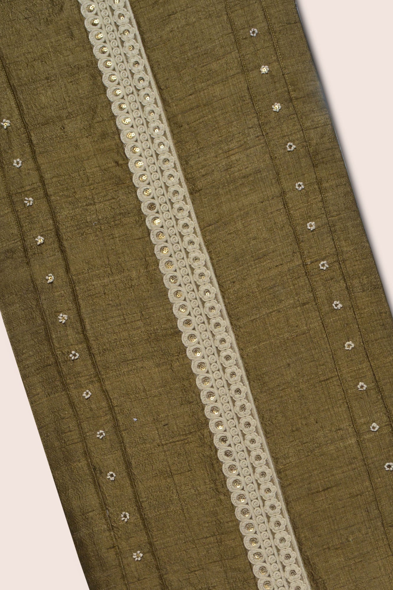 The Anga Handowven Table Runner, handwoven in dupion silk by our weavers is a festive statement in olive green that is accented with embroidered patchwork on the border. Inspired by the Mughal Era, the luxurious details of the table runner bring your home alive with the spirit of the season.