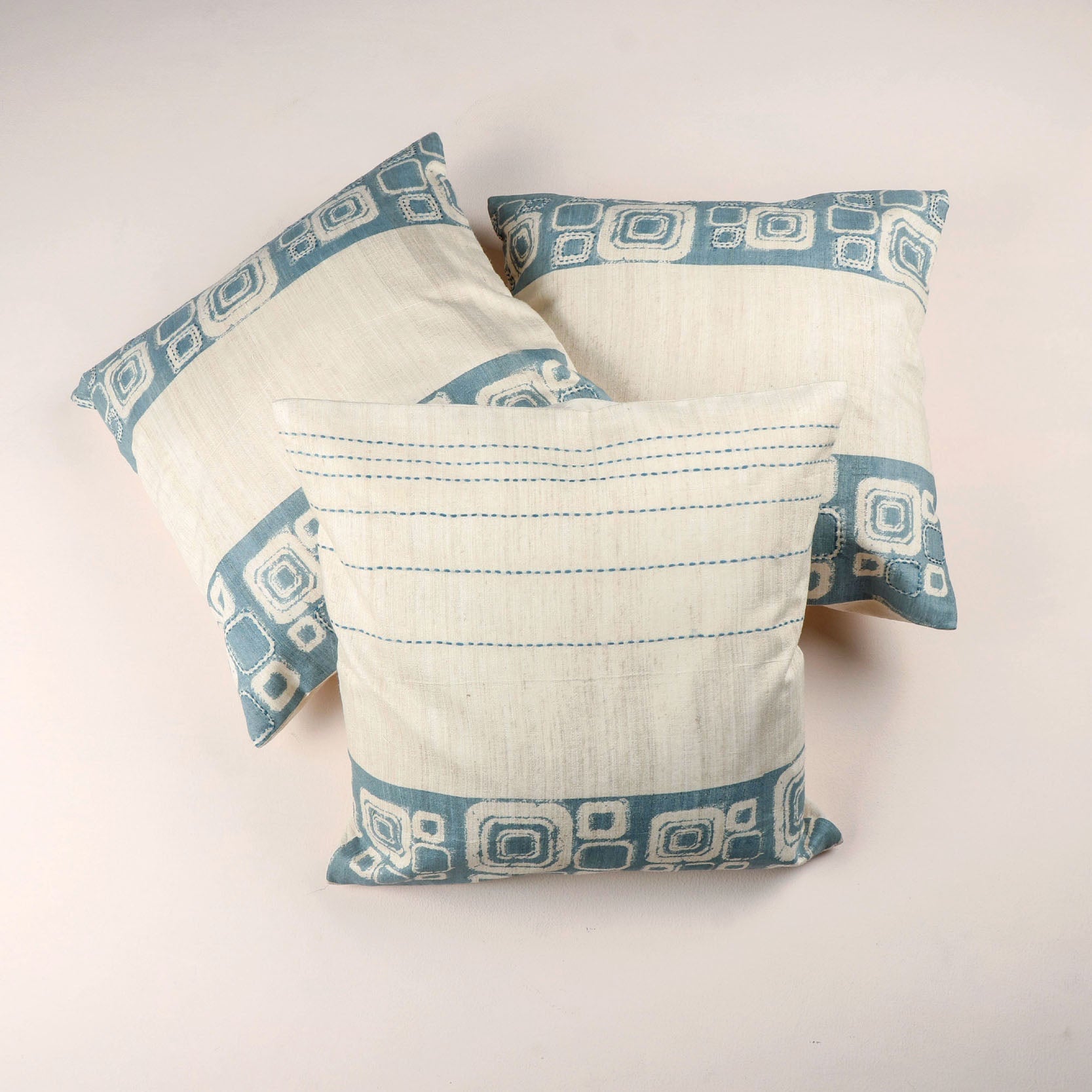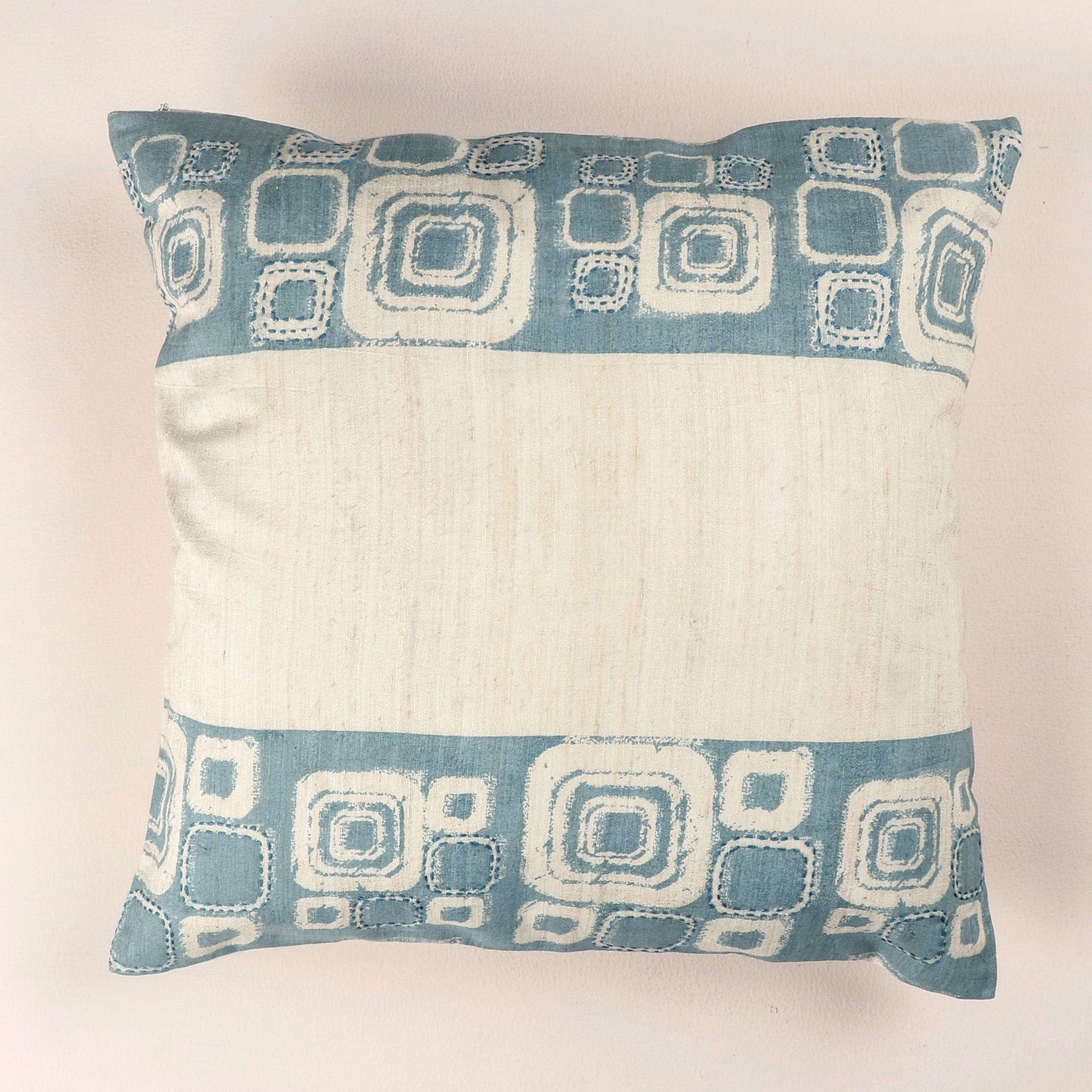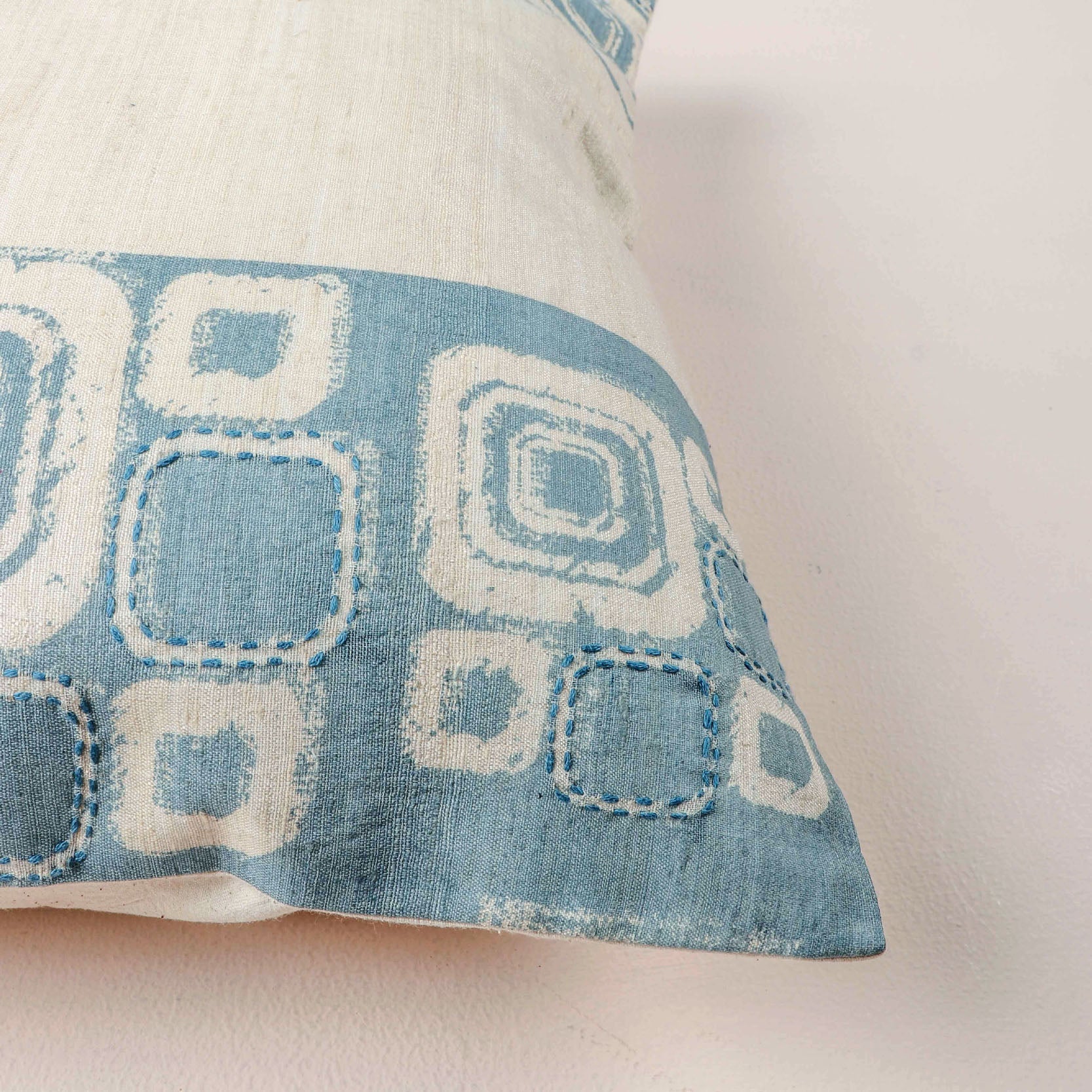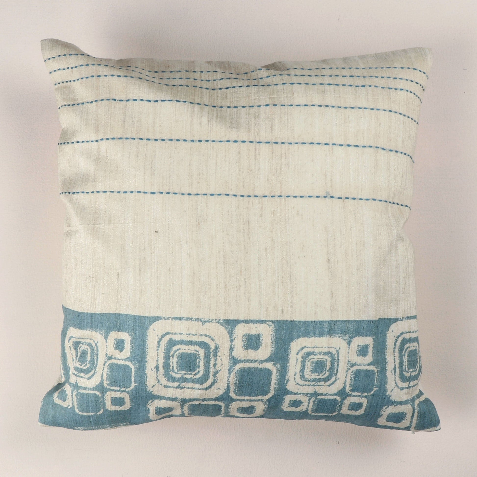 The handwoven eri silk cushion entitled, Haruto features a harmonious blend of block print and hand embroidery inspired by the maze culture as seen on its geometric patterns. The light colour palette exudes a calm vibe that brings in a fresh wave of positivity.