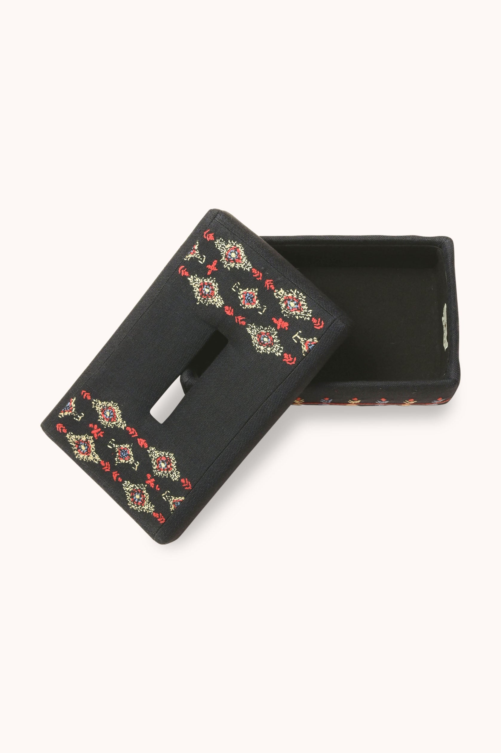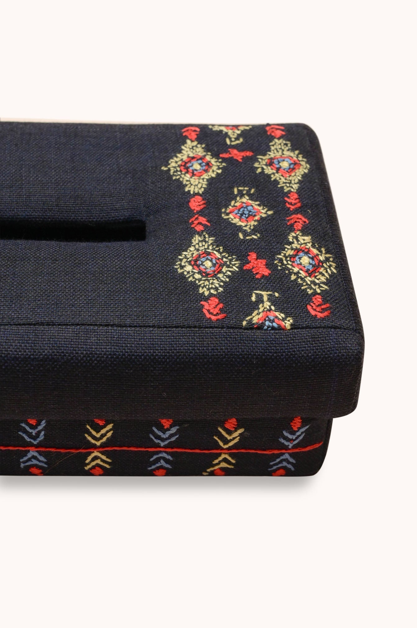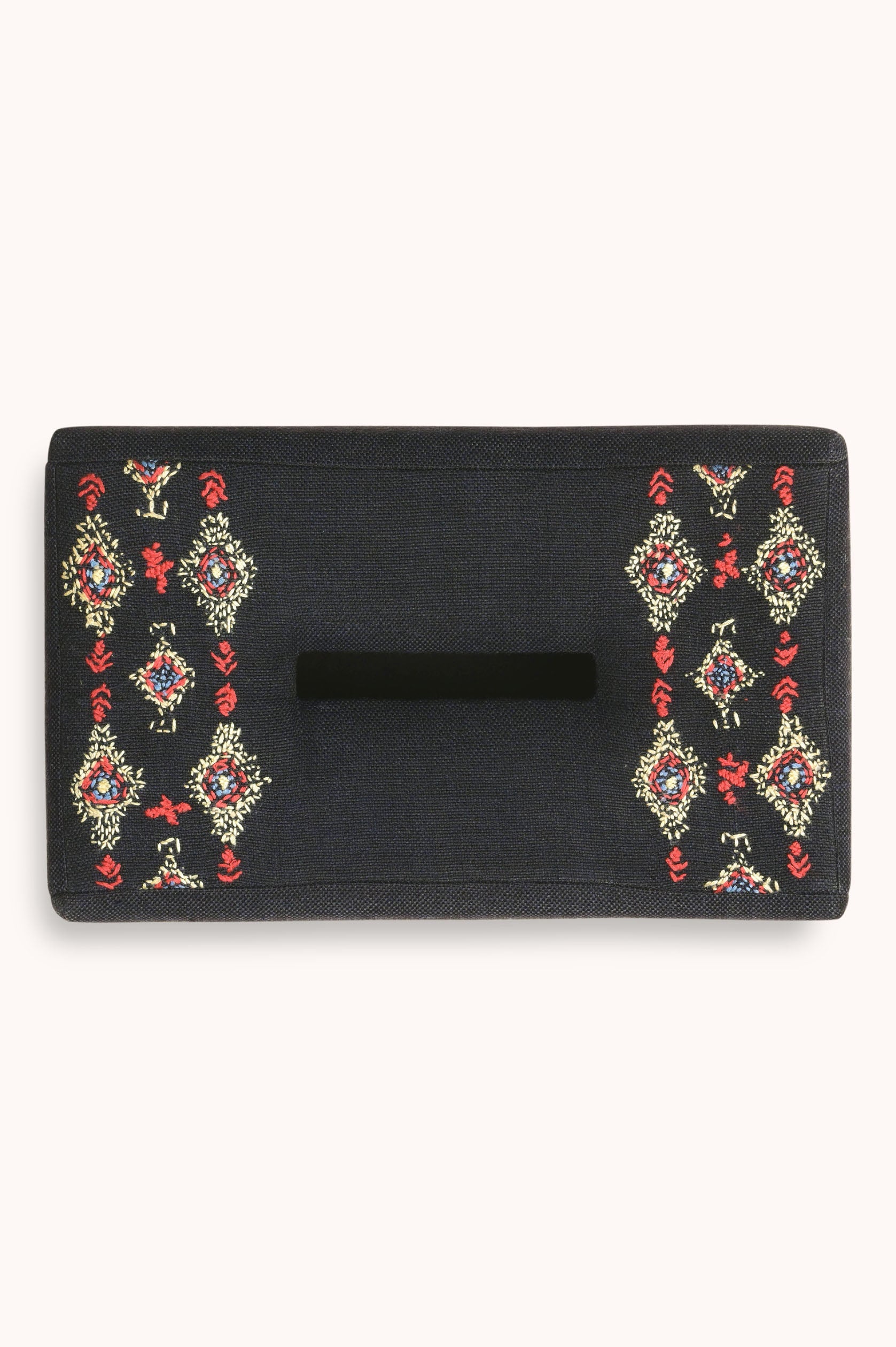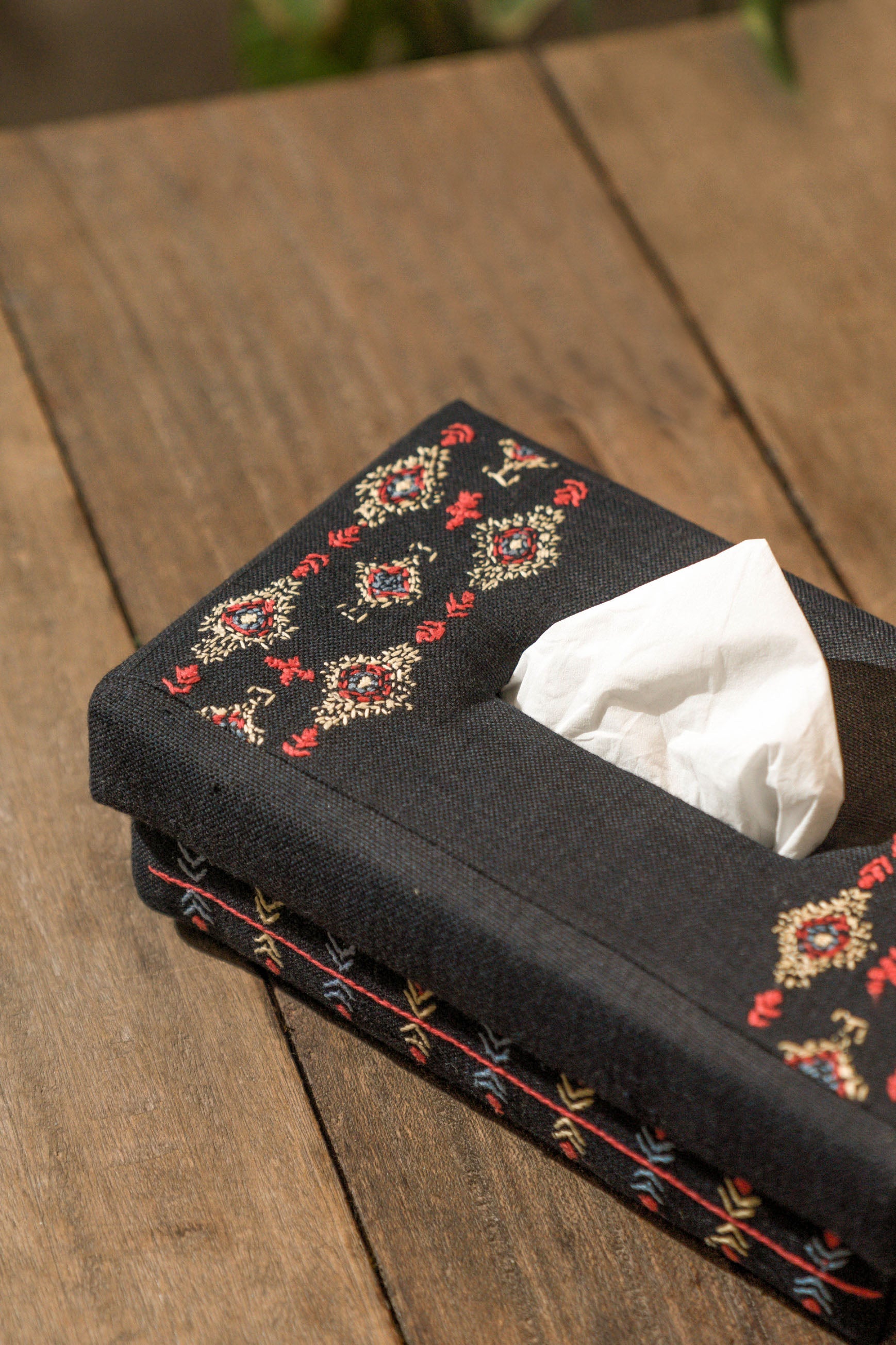 The Helen tissue box is an extremely elegant creation from Veaves handcrafted with finesse from handwoven cotton. The hand-embroidery features accents of the African-Aztec culture as seen through its clustered pattern.