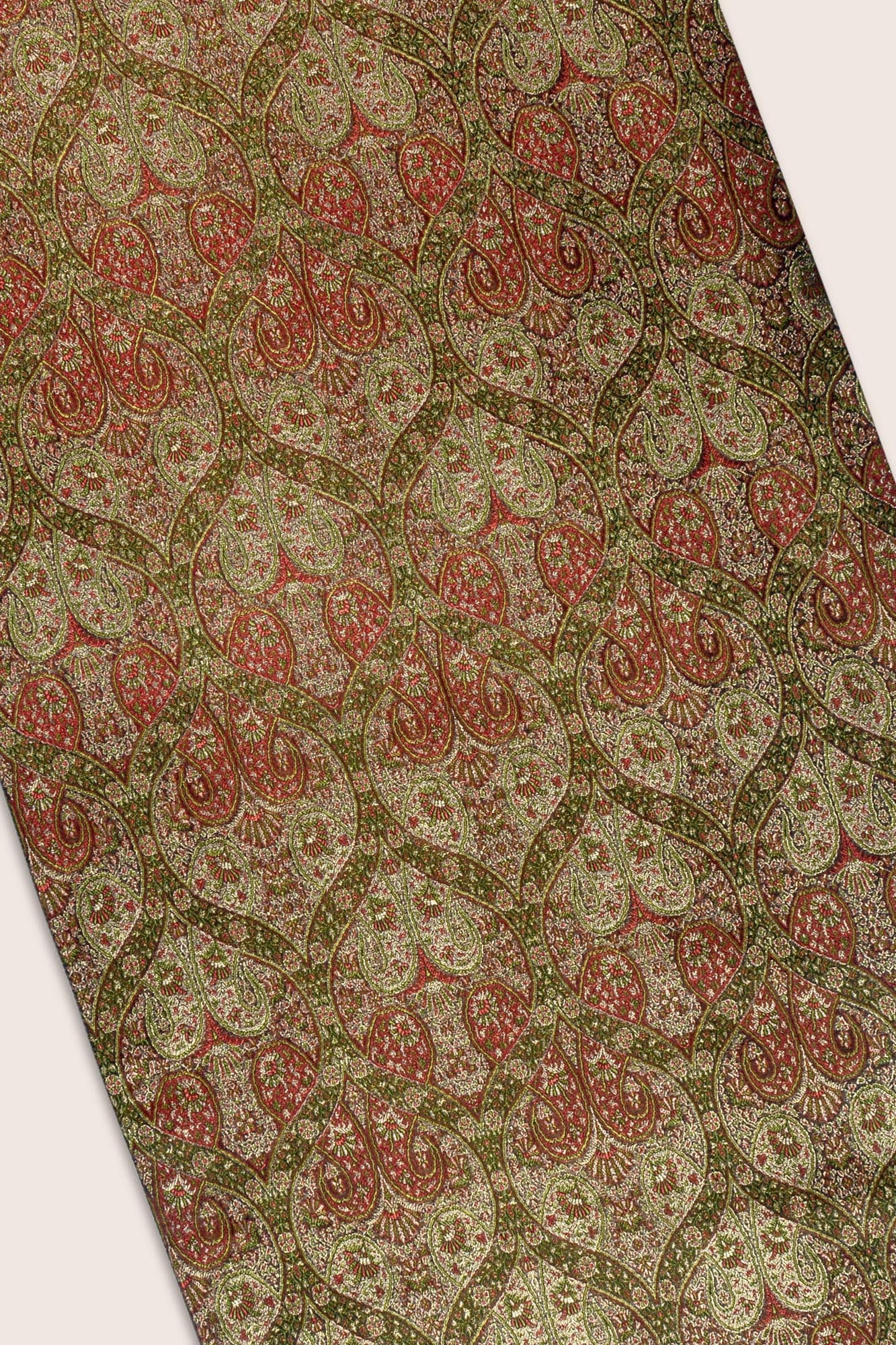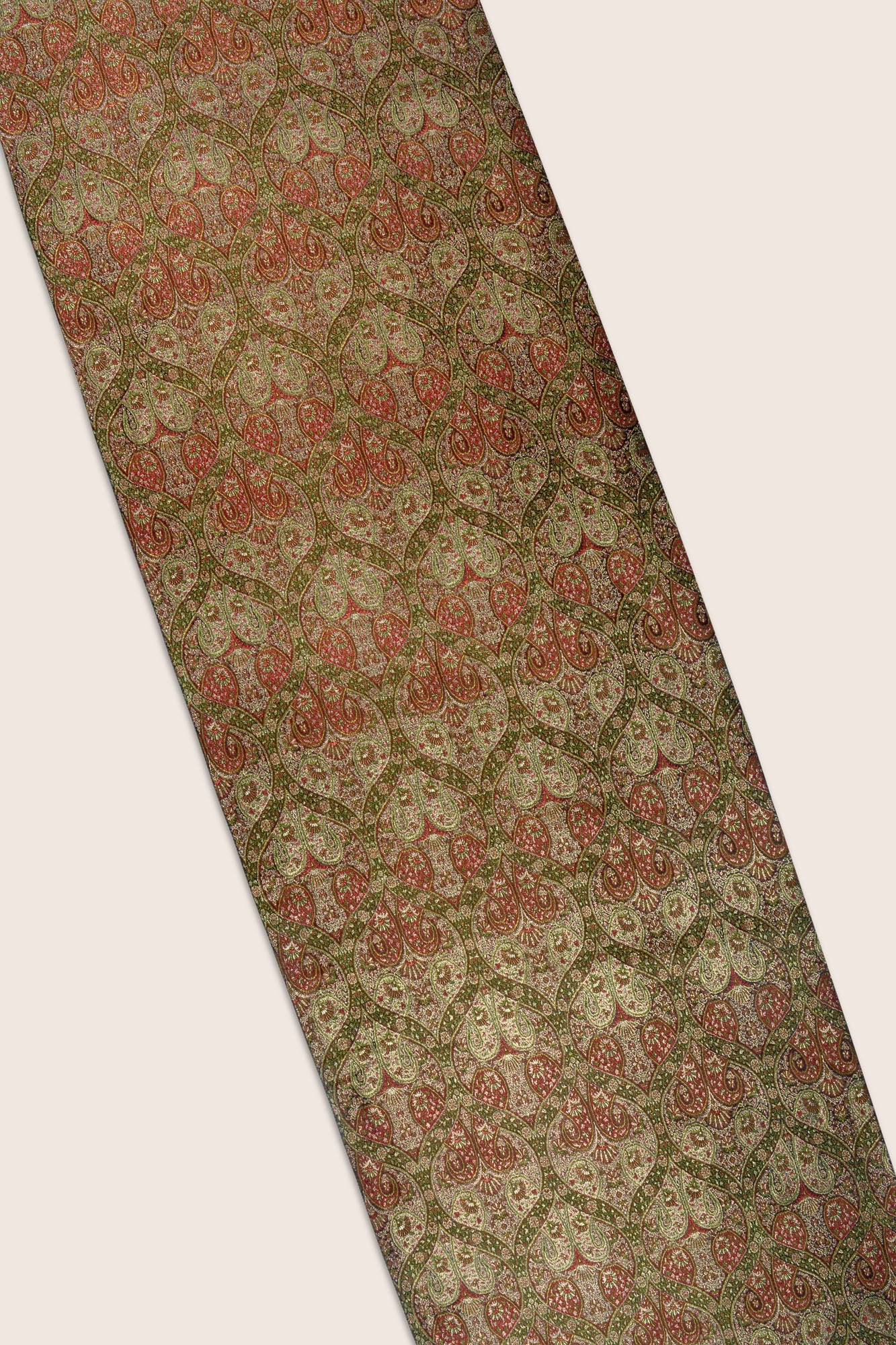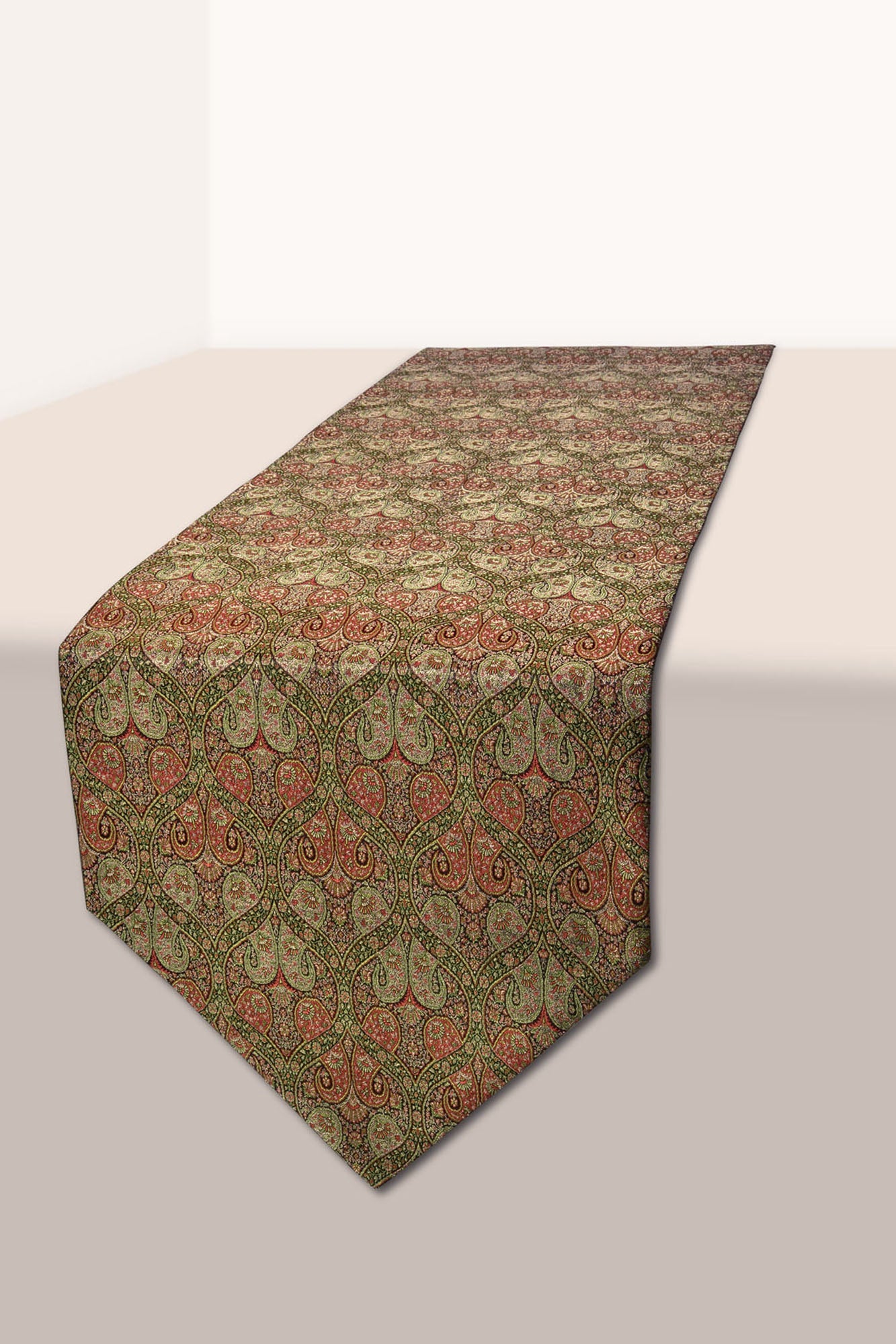 Capturing the charms of the festive season, our Hoshmand Handwoven Table Runner is artistically crafted with jacquard woven allover designs on dark olive green katan silk. The Mughal Era inspired style of patchwork jacquard completes the look of your home this festive season.