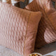 The inflorescence is the head of a flower. The dupion silk handwoven cushions has tucked pleats and zari border. The smoothness of the colour and material encompasses guest serving the occasions placed on comfortable lounges.