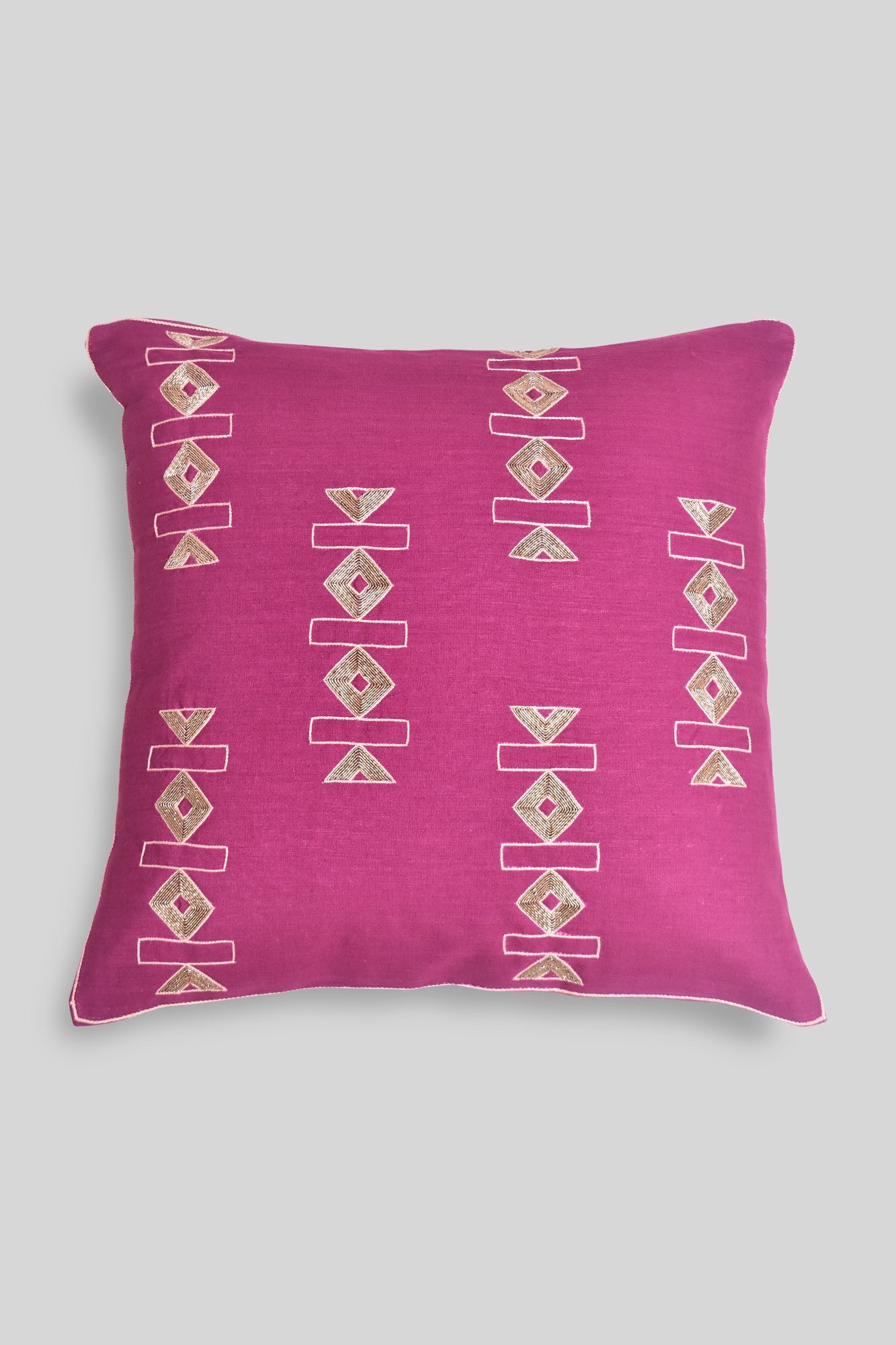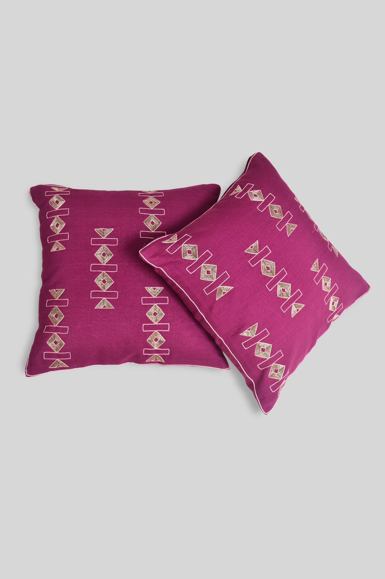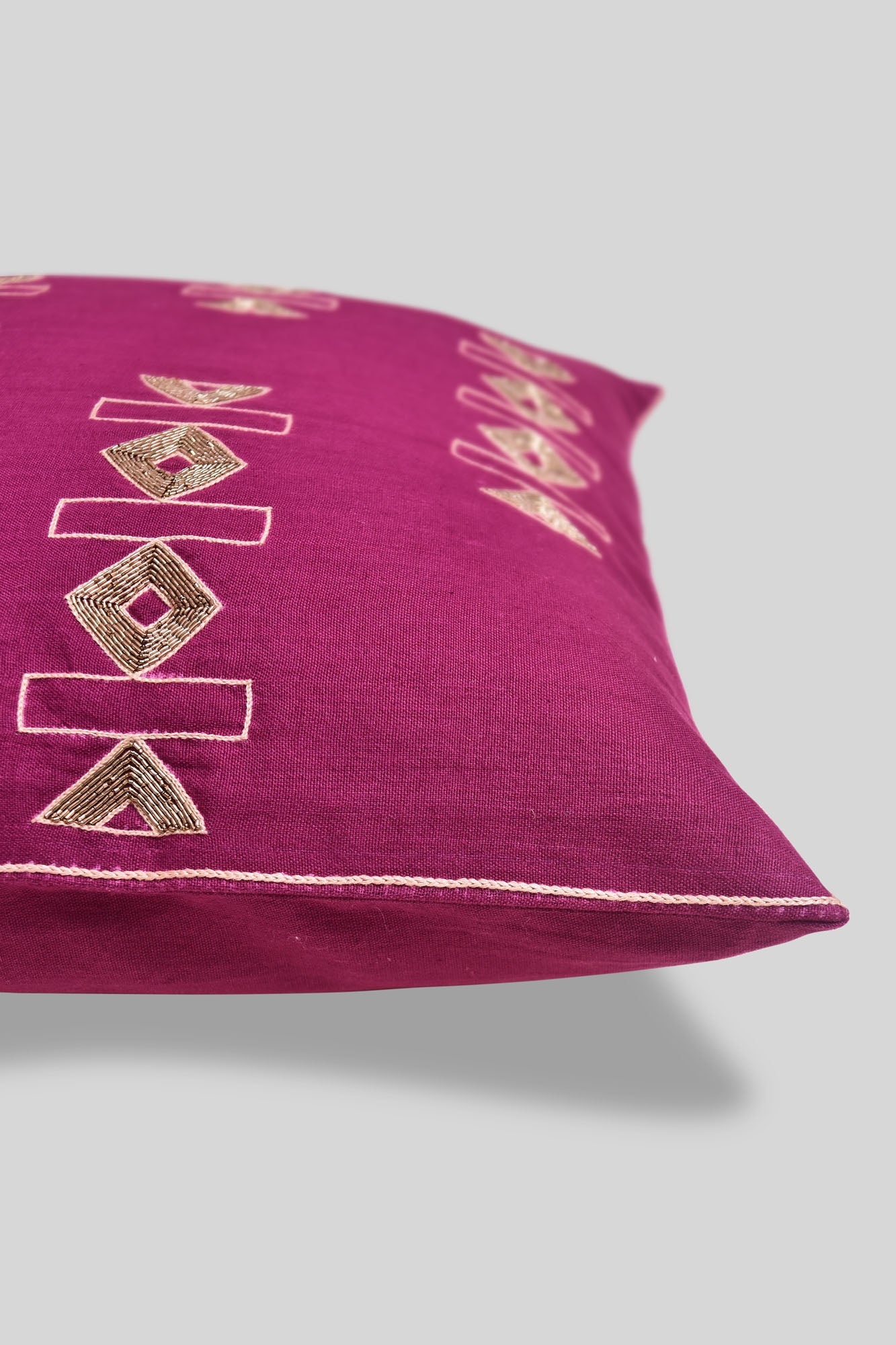 Isorropía asterión is a balance of star cushion cover. It is handwoven in pure khadi cotton with zardozi hand work .The mapuche art has tribal art work sequences layers of stargates that are placed to establish a fresh summer connect while the spring fiesta begins in nature. Place the cushions at natural shade furniture background.