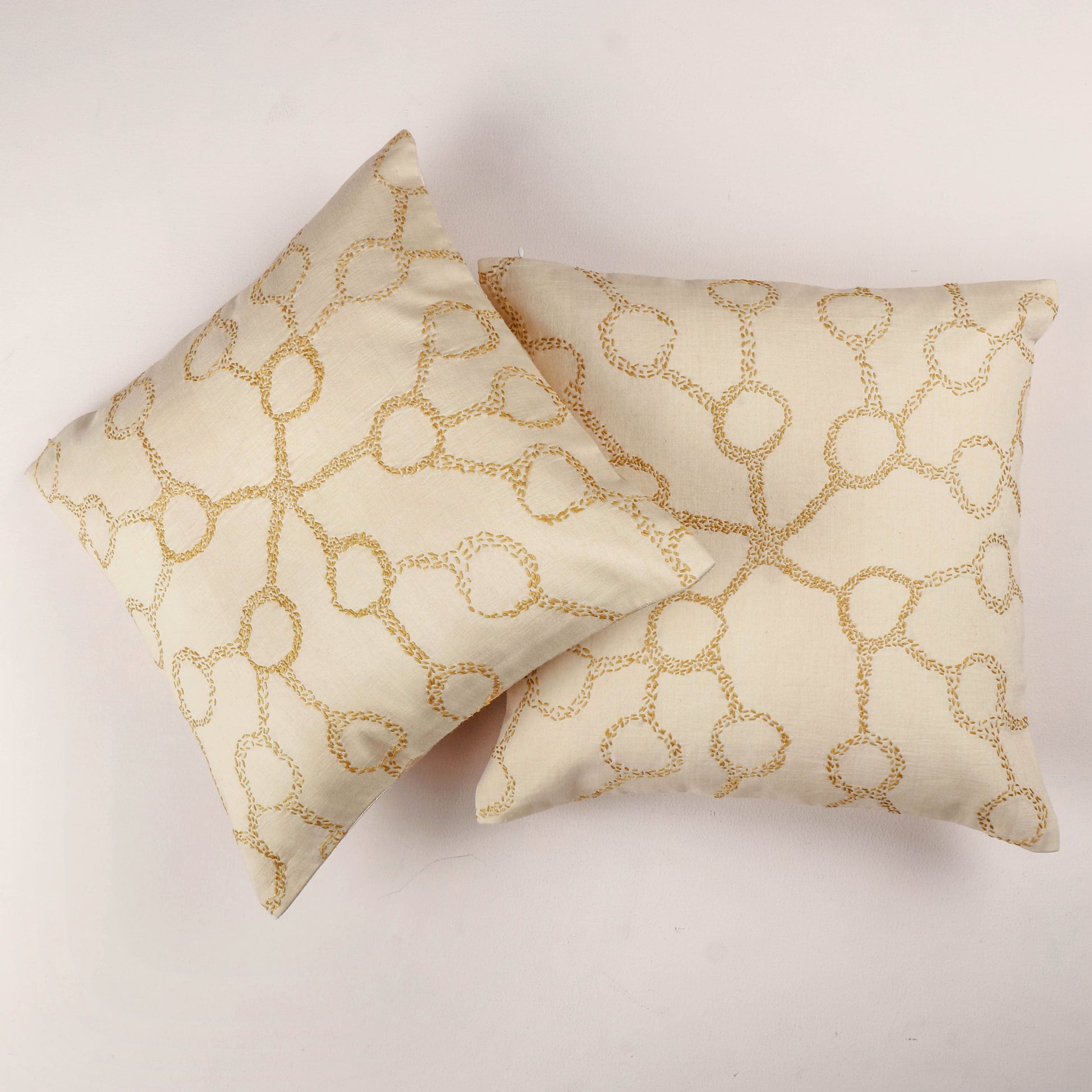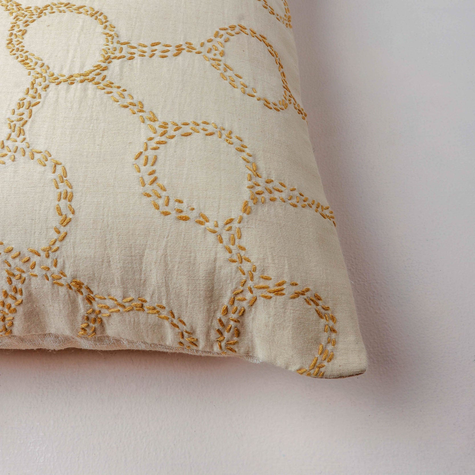 The Kaito cushions come in warm tones to exude warm vibes of hospitality wherever it is placed. Handwoven with cotton and hand-embroidered with immense zeal, the elaborate work of threads is inspired by the Japanese floral artwork.