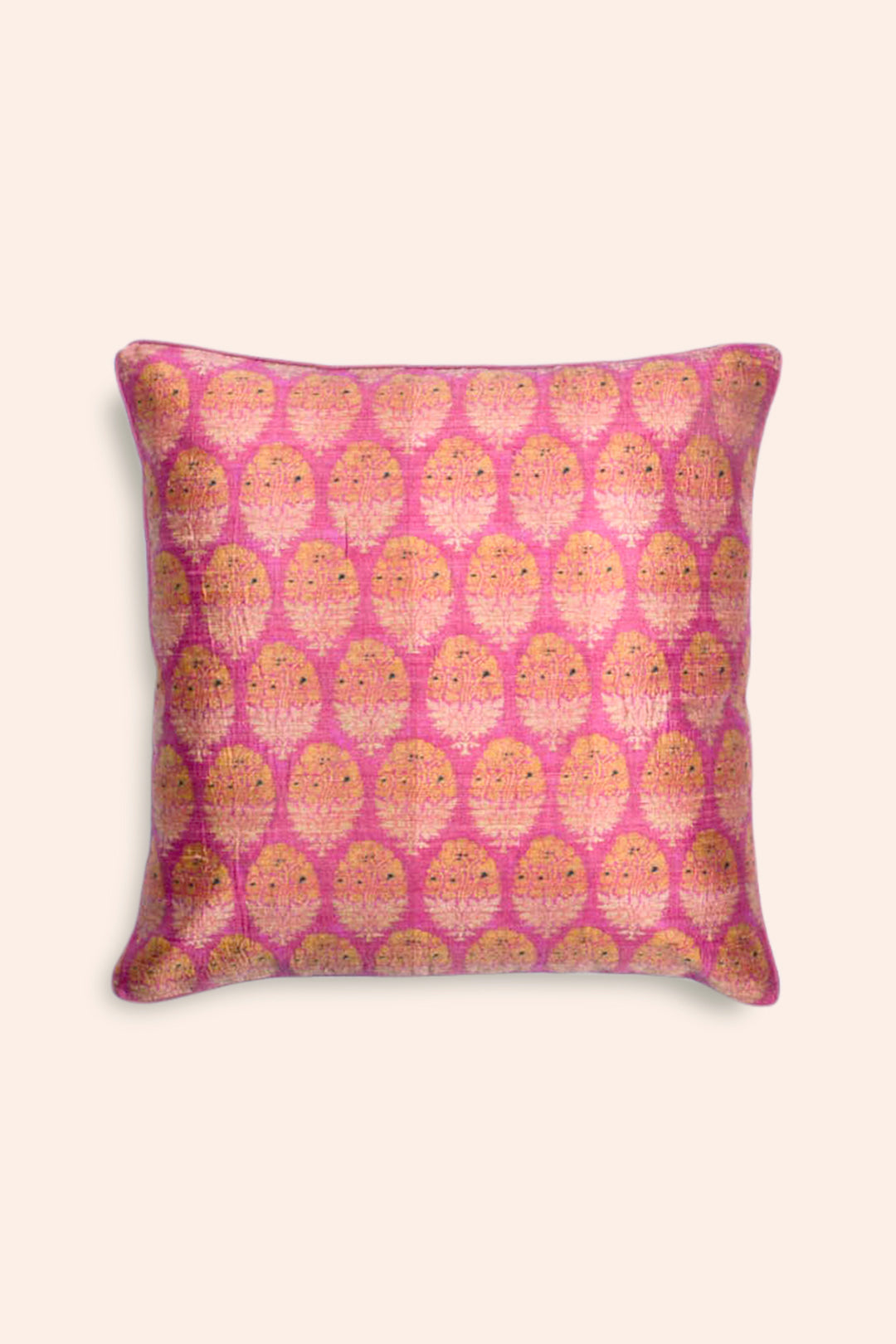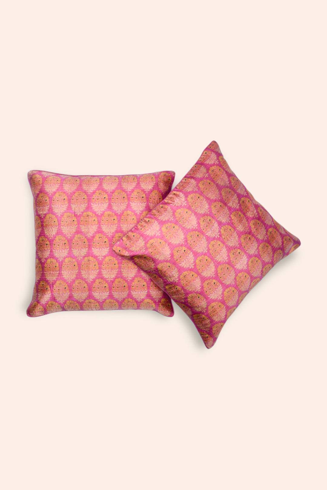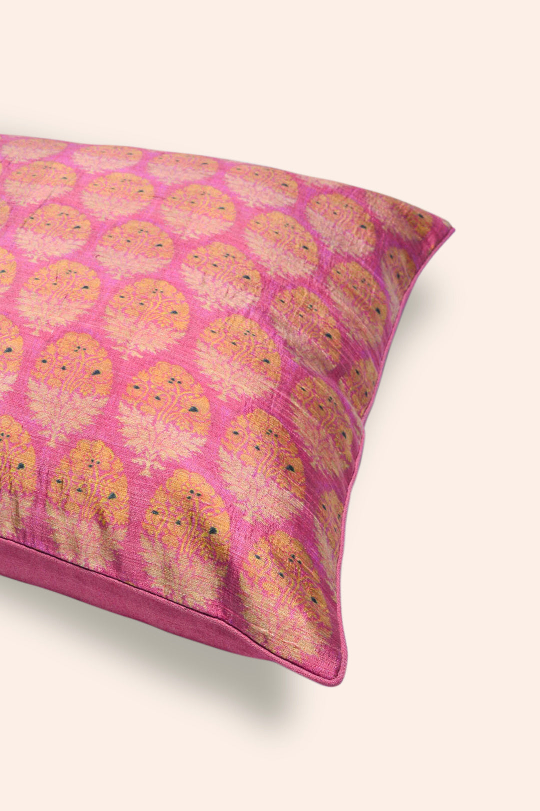 Let the corners of your home spark the spirit of the festive season with our Kandahari handwoven cushions. Inspired by the Mughal era, the handwoven cushions are rendered in multi colour print that elevates the feel of the pink shaded dupion silk.