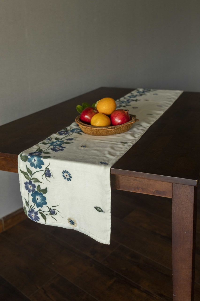 The English aesthetic is subtle which makes an object last through many generations. Lambent too stands for gleaming with a soft radiance. Replicating this, our table runner is handcrafted in pure cotton and Mul with an understated English floral print.