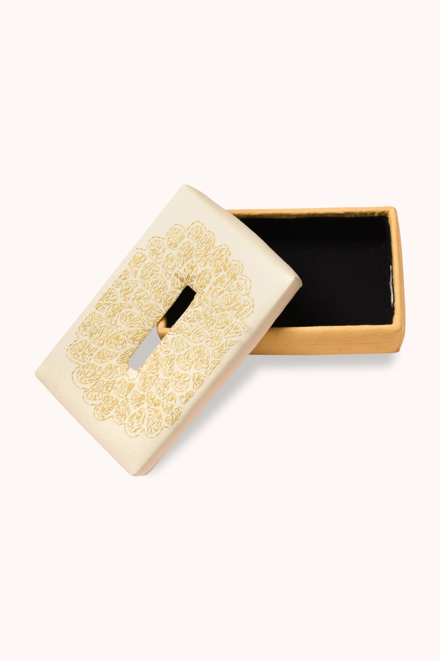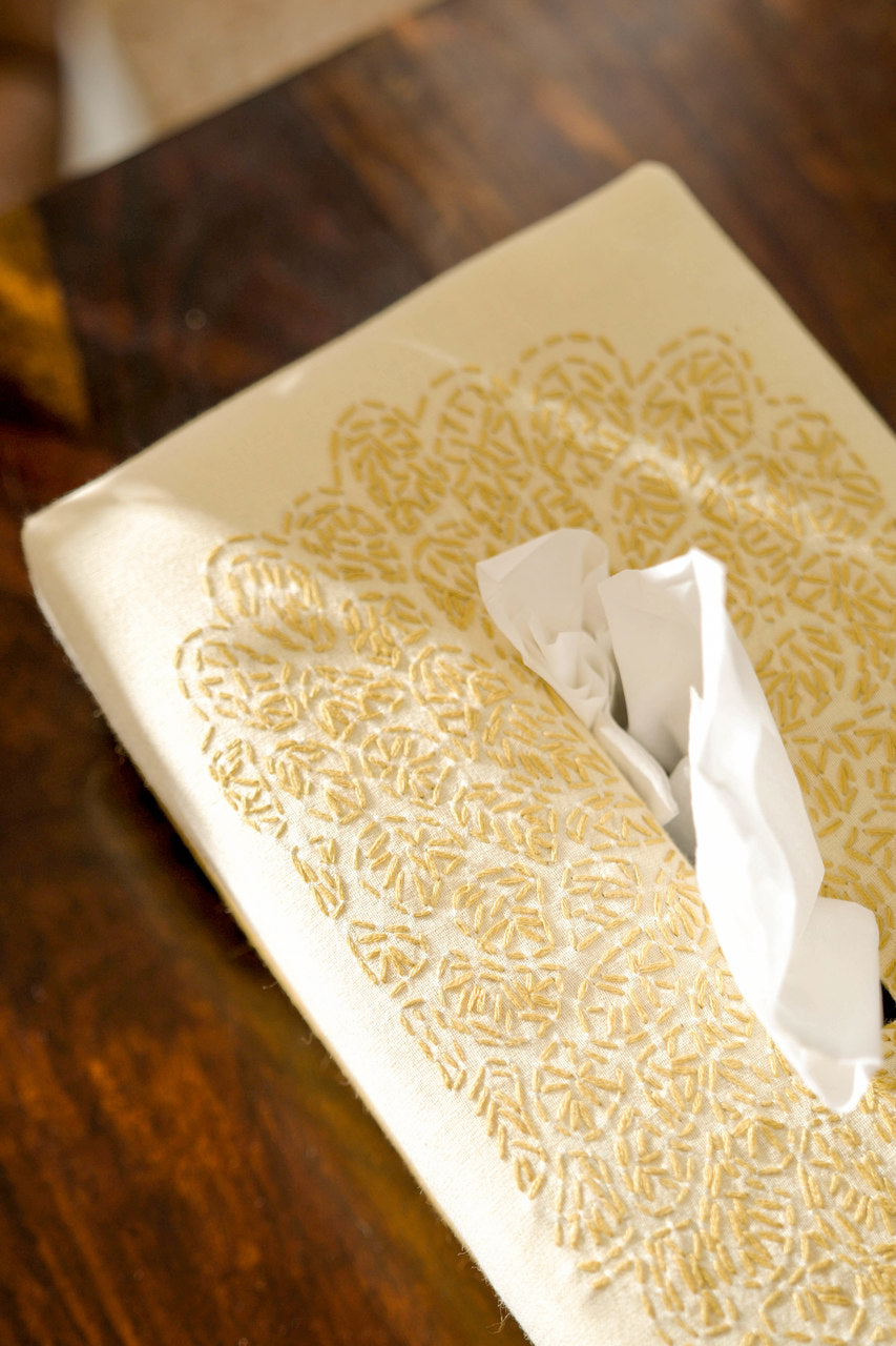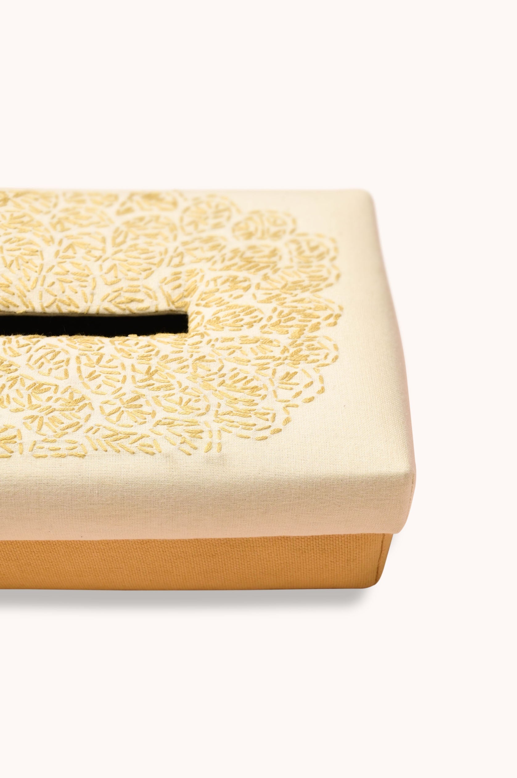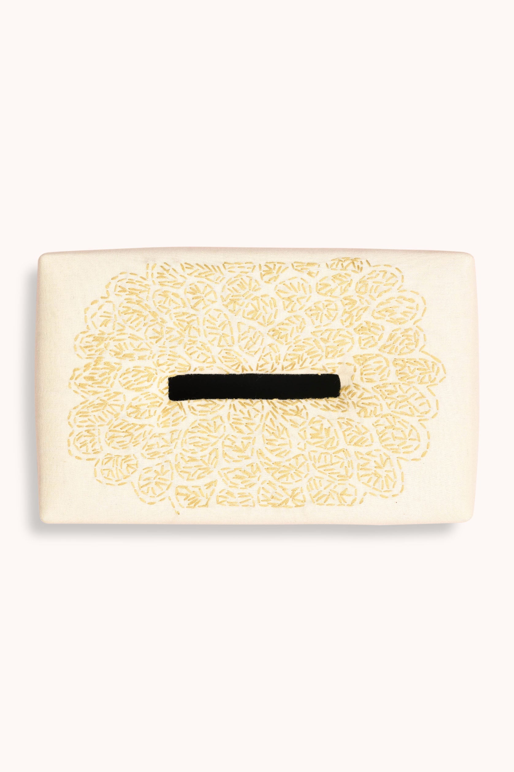 Glistening with gold, the Lucia tissue box is handcrafted with care from handwoven cotton and makes a great accessory for your dining setup. The intricate hand embroidery in the Lucia tissue box is inspired by Japanese floral artwork.