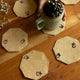 The Coasters come in a glass with a wooden frame to protect the artwork.