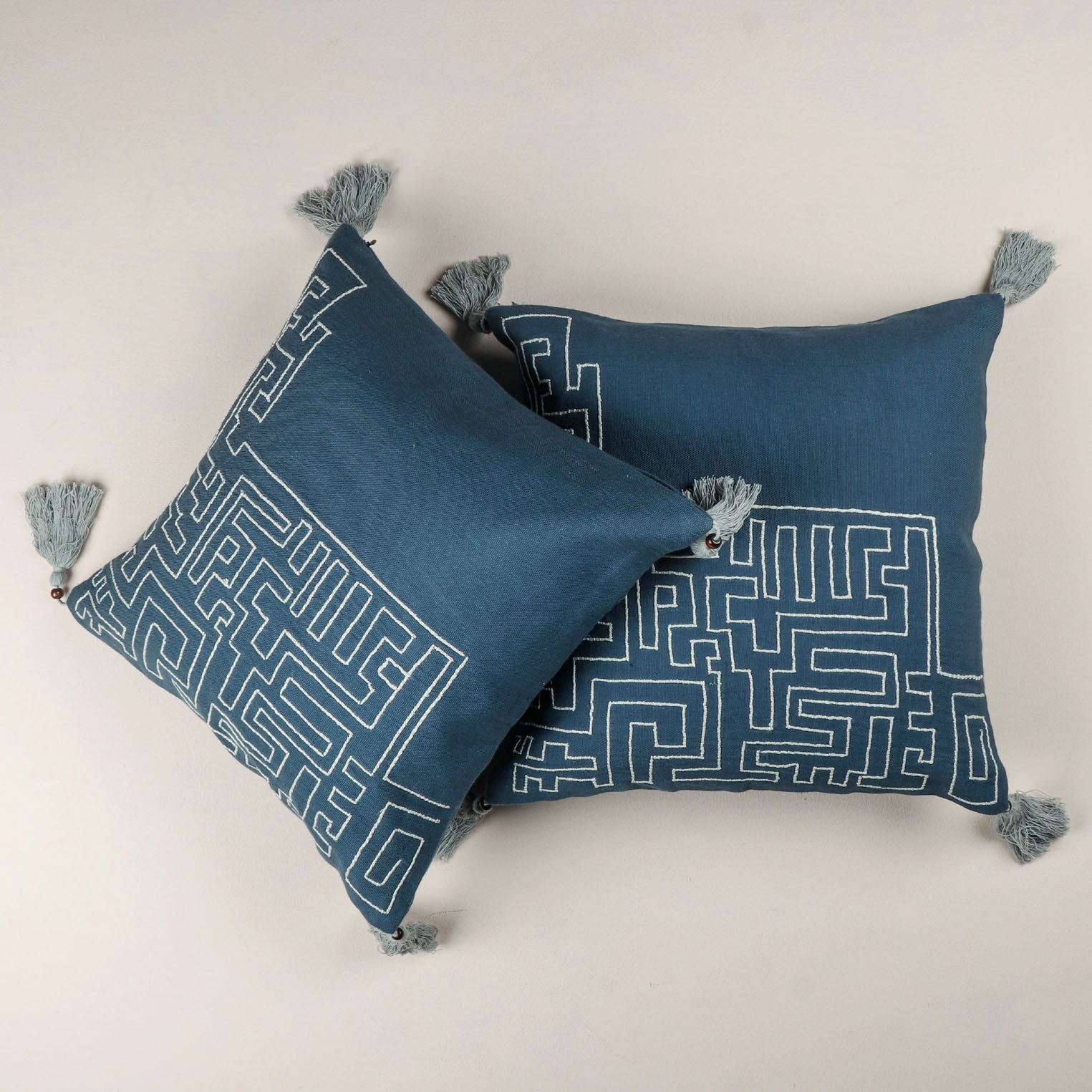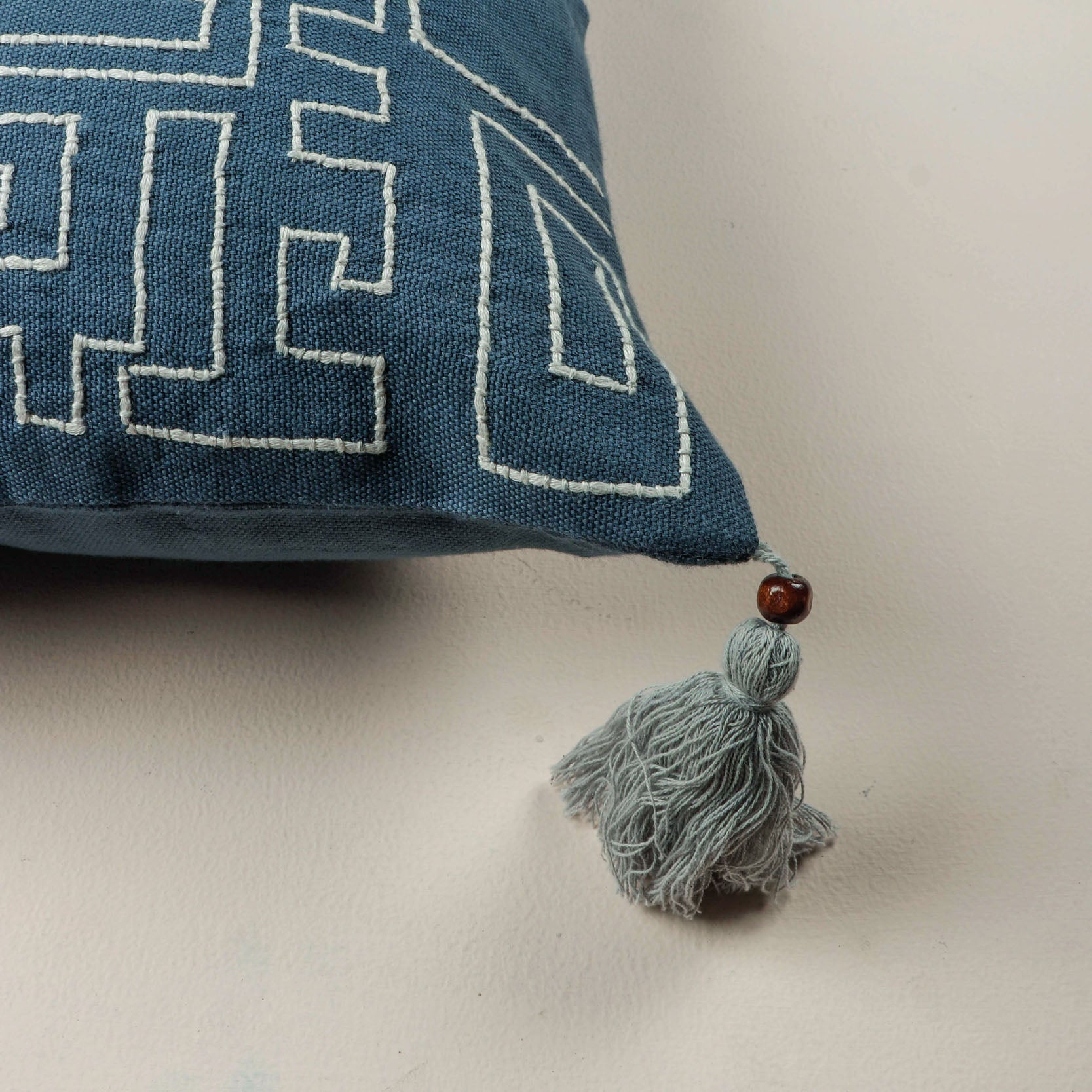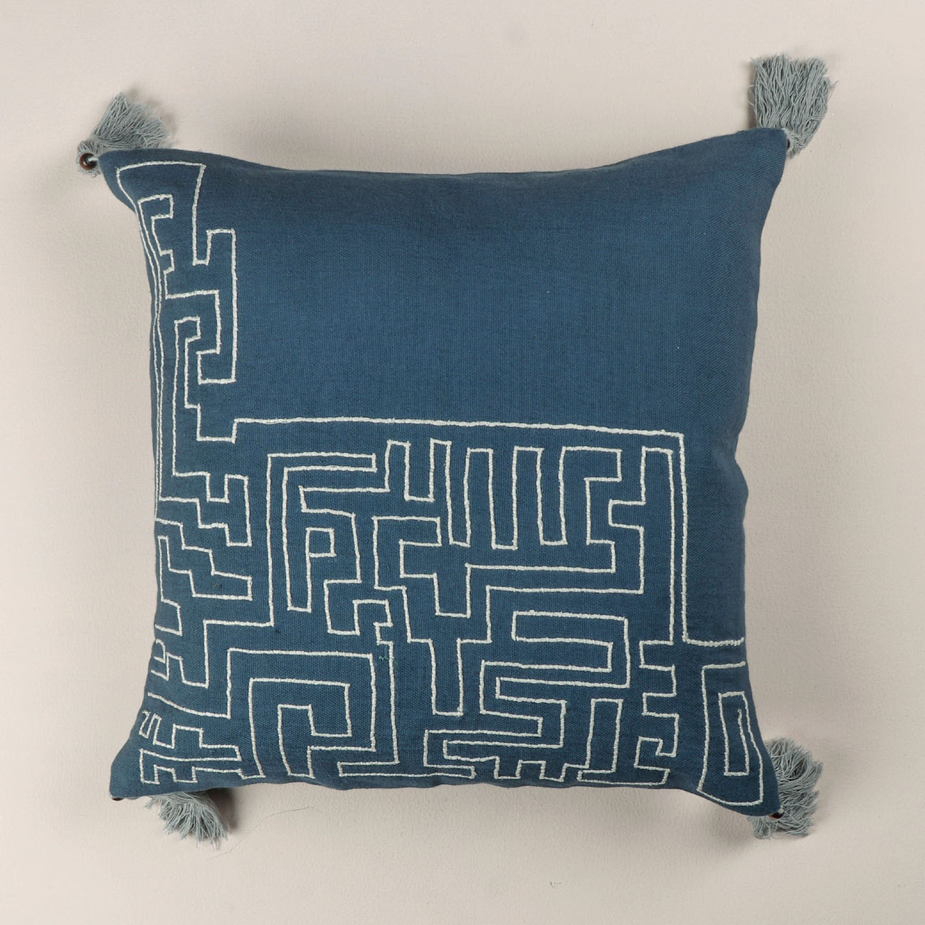 The Minato hand embroidery exhibits the glory of the Maze culture with a uniform geometric pattern. Embellished with tassels, the Minato cushion captures the essence of the vibrant culture, that sit right firmly on your mantle.
