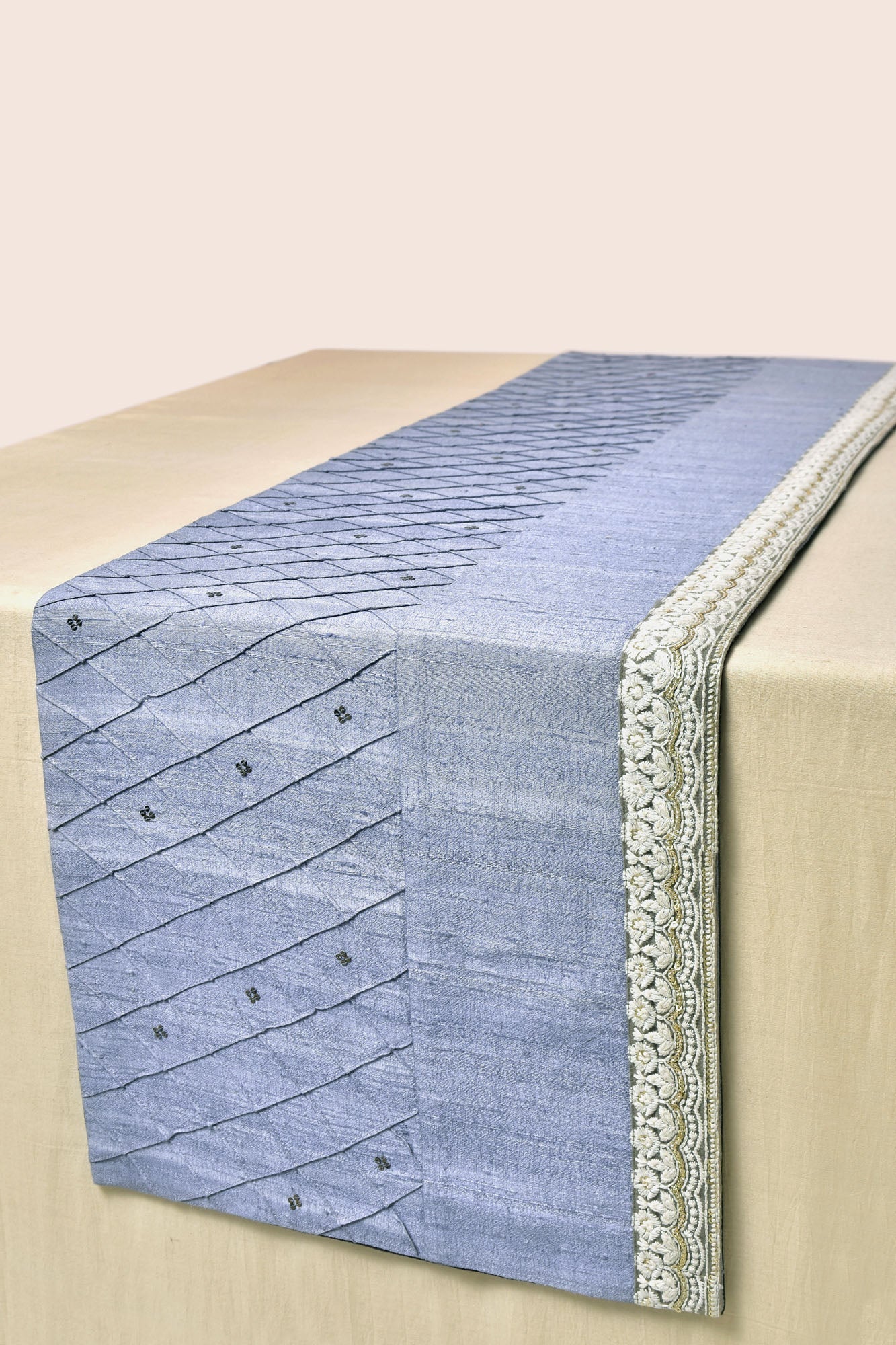 Depicting timelessness with elegant blue colour, the Mora handwoven dining set reflects calm, comfort and exuberance amidst your festive set-up, making your guests feel more welcome and relaxed at the party. The Mora dining set is entirely handwoven with pure Dupion silk and features an array of pleats and hand-embroidered borders.