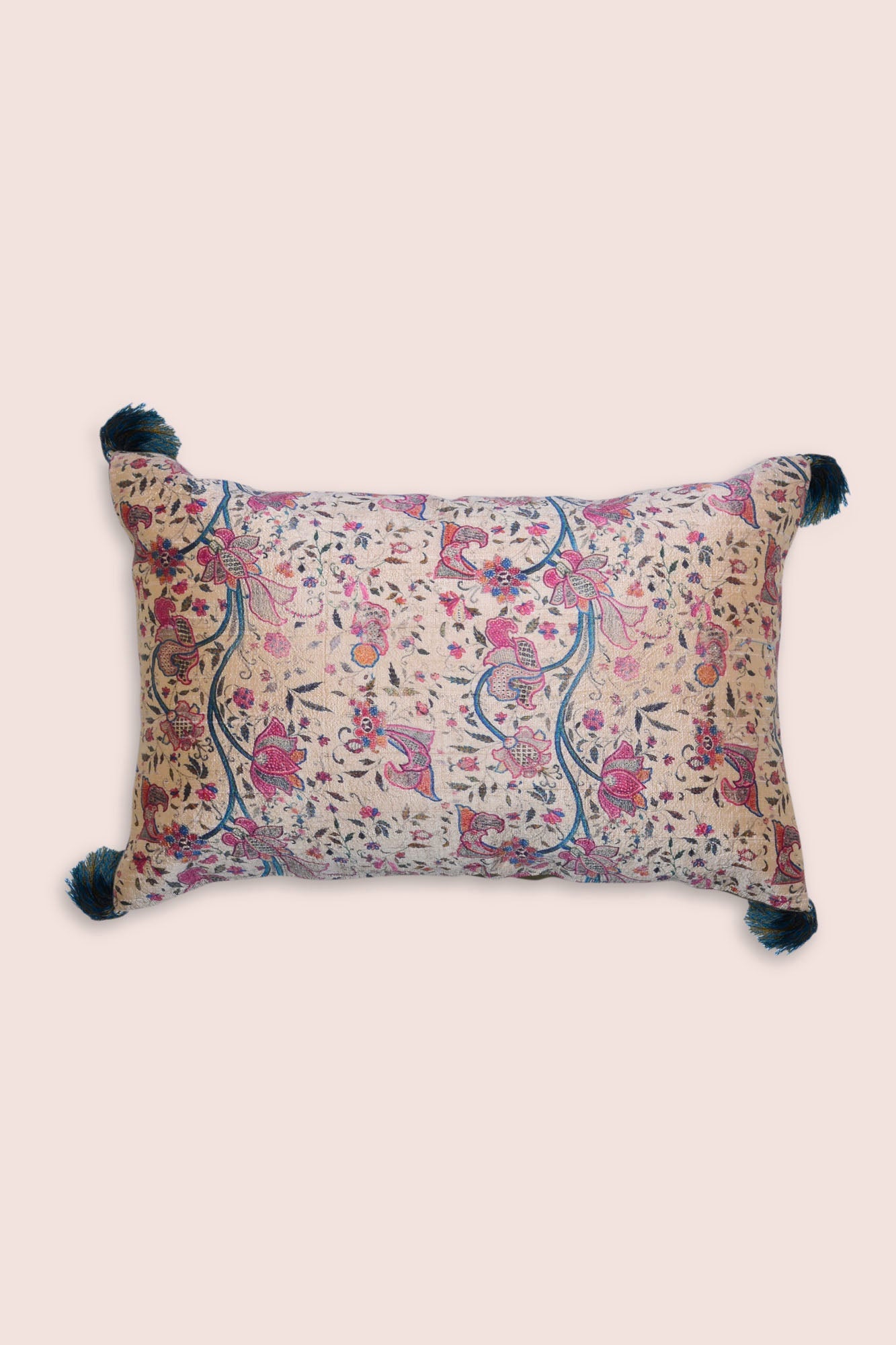 Capturing the charms of the festive season, our Nissa handwoven cushions is artistically printed on Dupion silk. The Mughal era-inspired style of flowers and vines completes the look of your home this festive season.