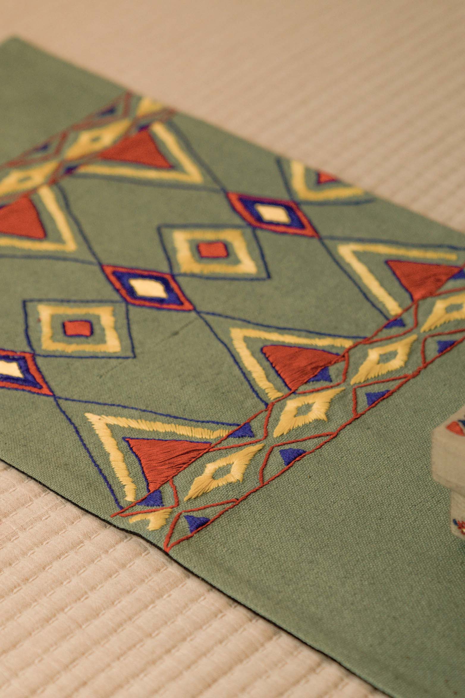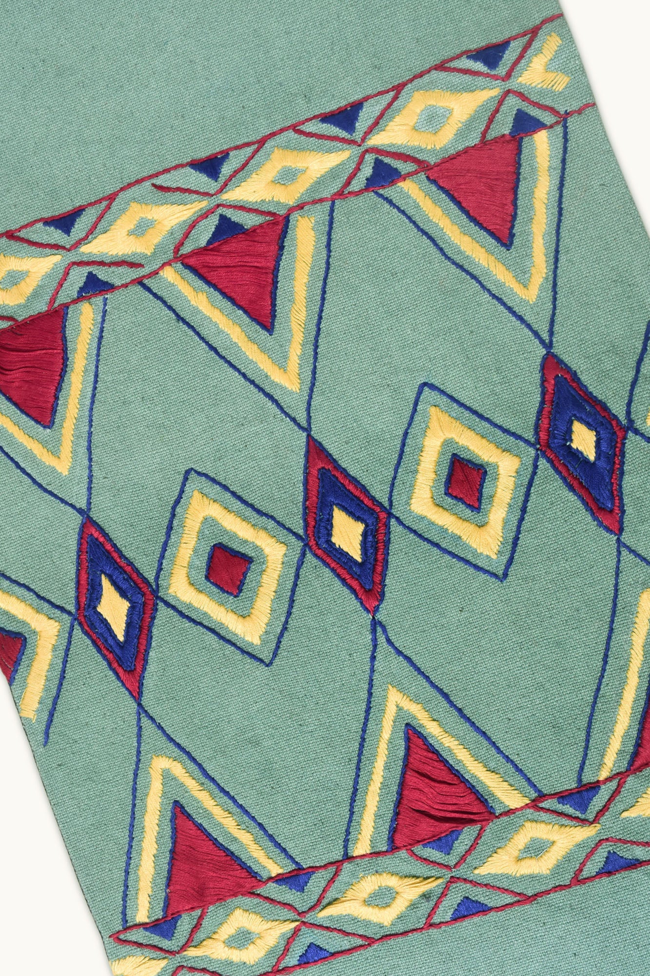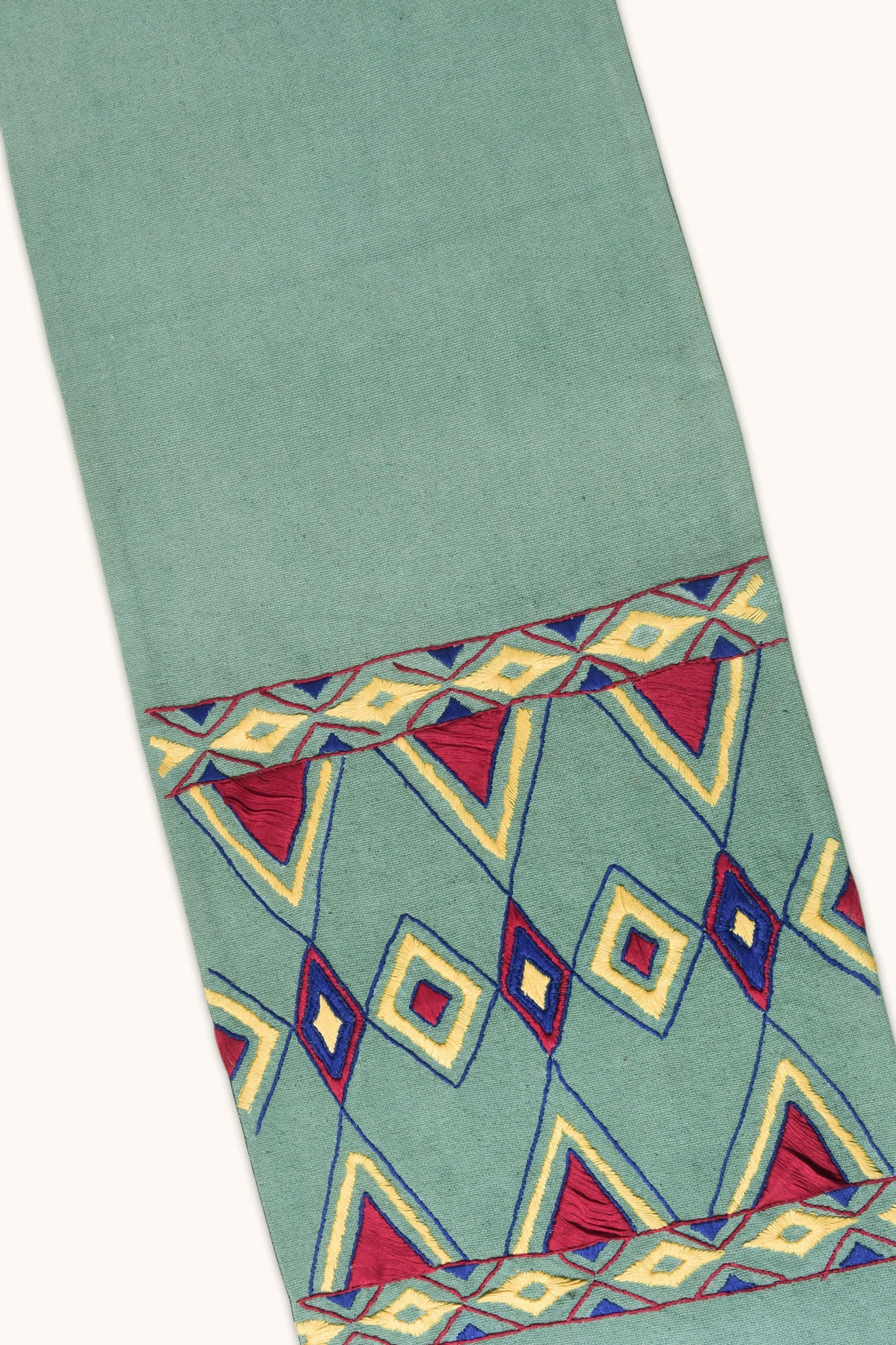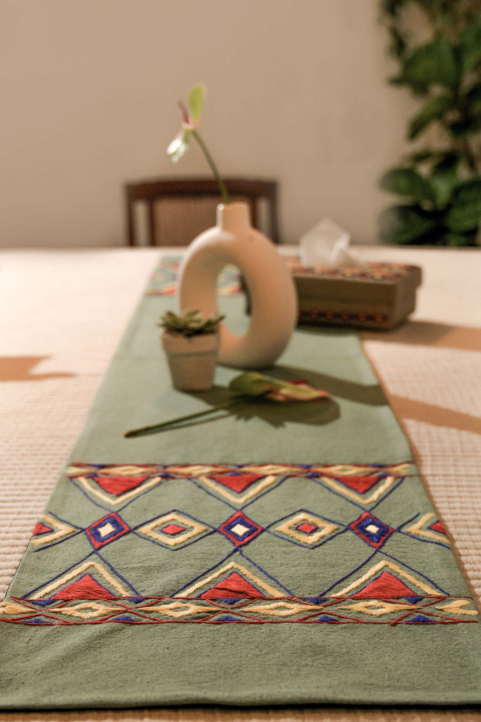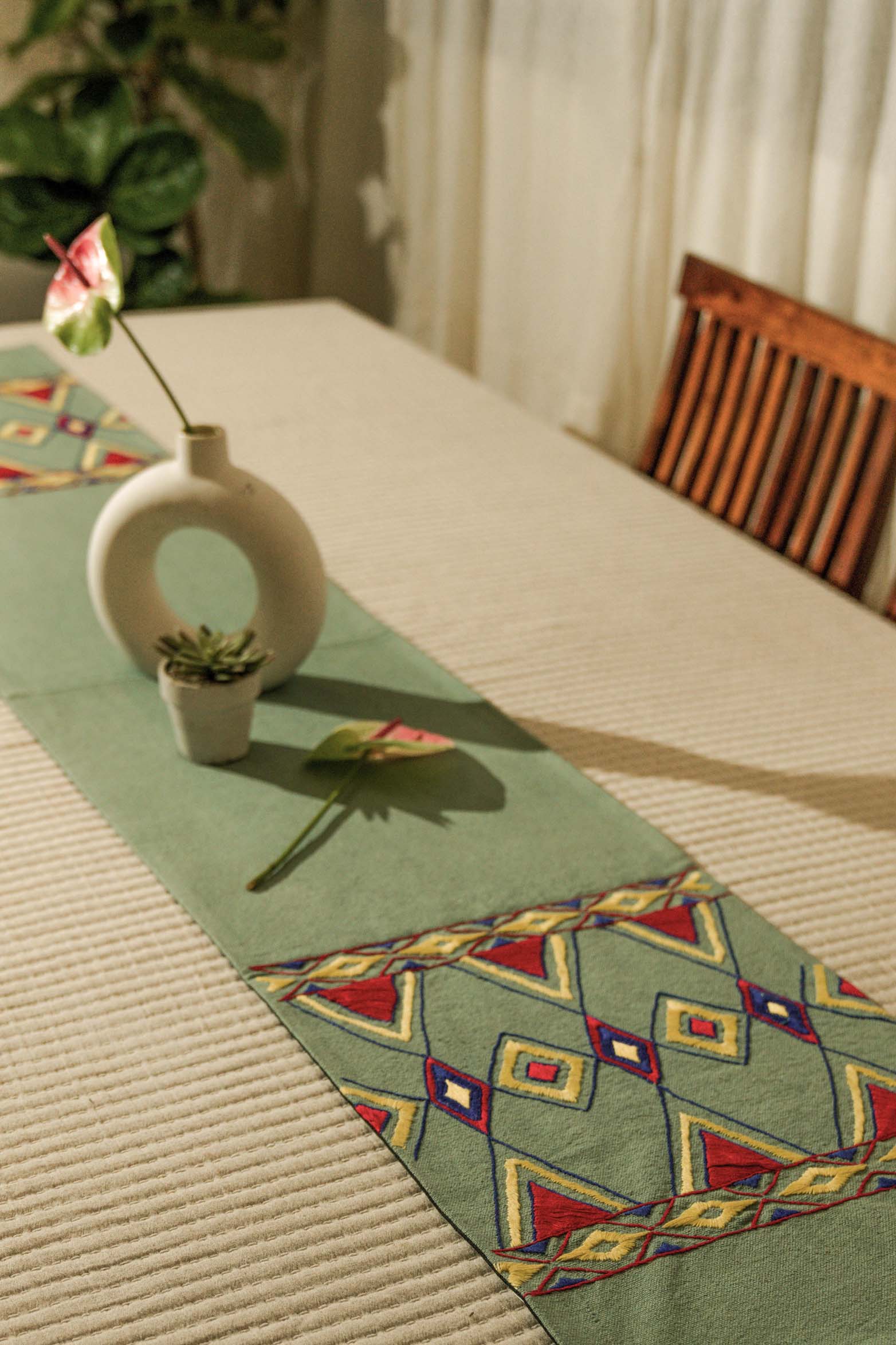 The quirky play of complimenting colors gives us hints of the African Aztec culture ingrained in the table runner by means of hand embroidery. The Orca table runner is handwoven from cotton and provides a great spotlight for your collection of silverware.