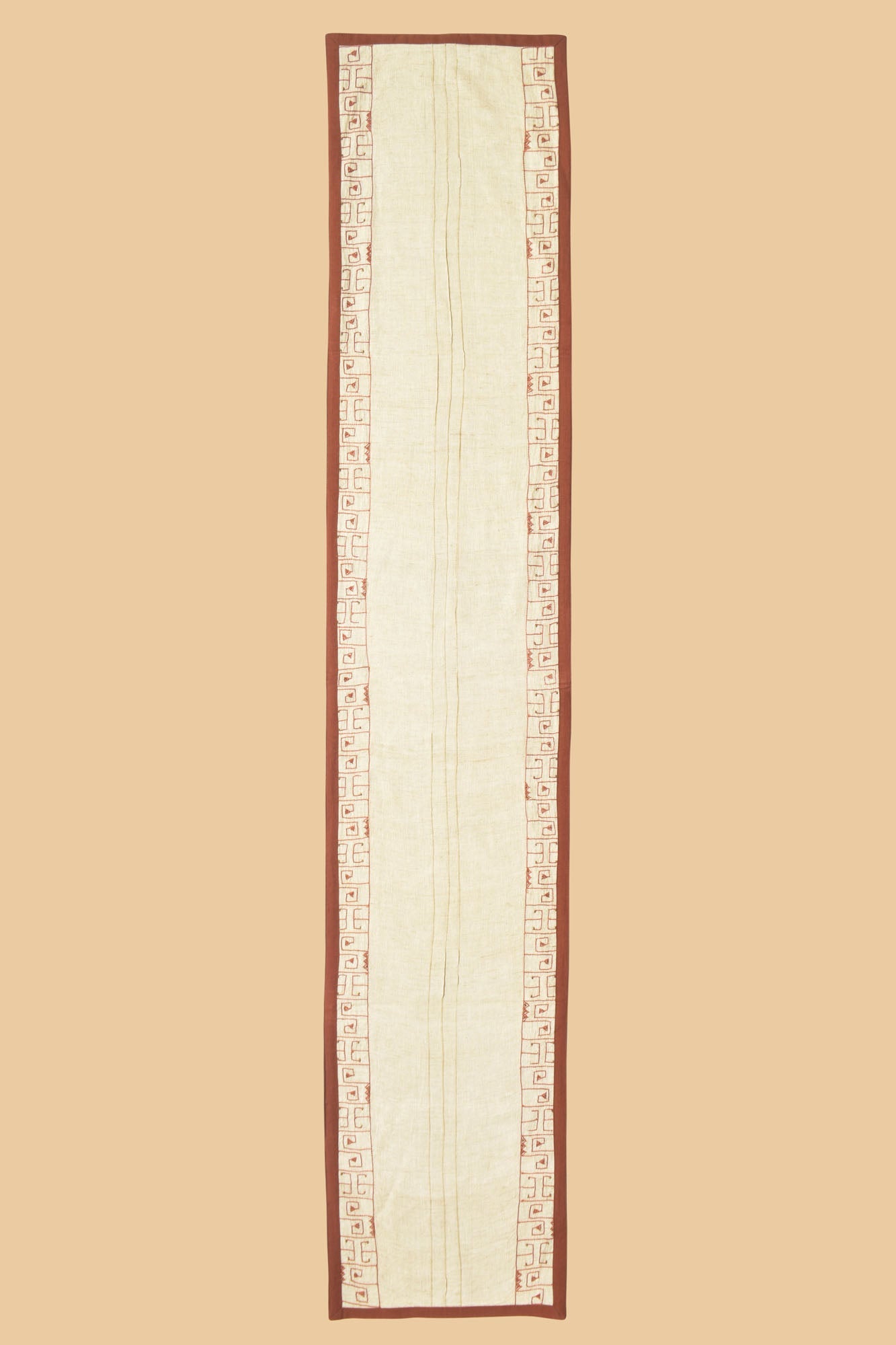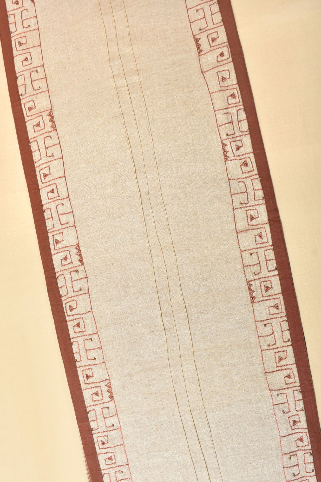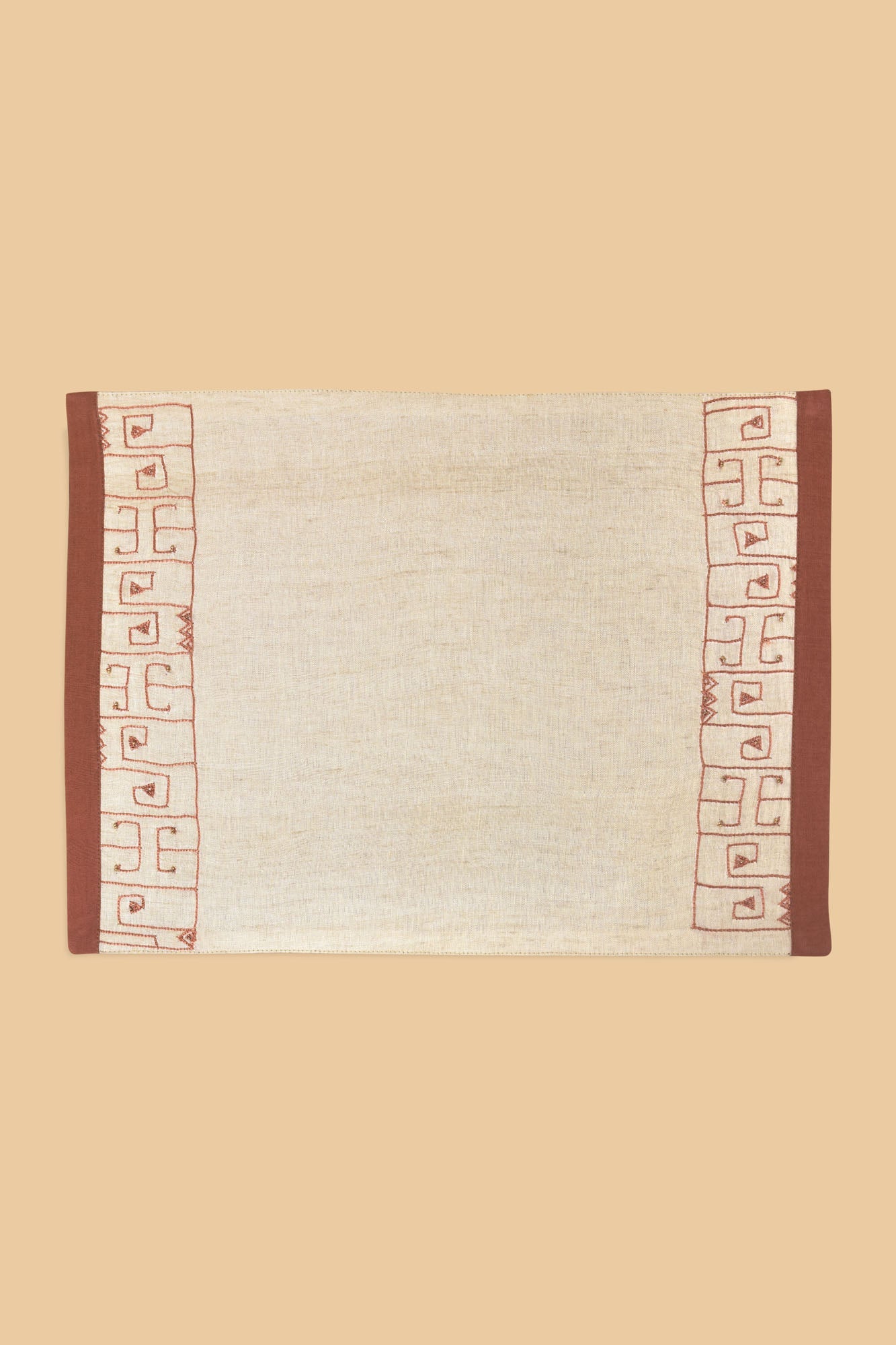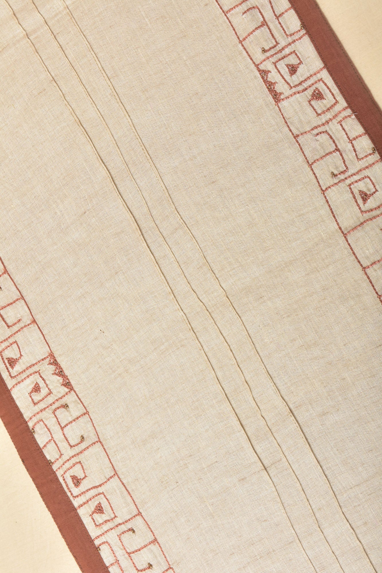 Orilla in the contemporary riverside city-limits presents the best hand-woven Linen cotton dining set with hand embroidered zardozi imaginative thread work. The Mapuche art design appears that you are looking from a skyscraper with a river flows in between a secret city. Surely you wish to spend time with the uniqueness of the moment.