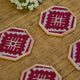 The Pluto handcrafted coasters are made of cotton which makes them very easy-to-maintain and everlasting. The uniform pattern, hand-embroidered in white, stands out brilliantly in an enriching scarlet shade. This set of coasters make a perfect ode to the glorious African-Aztec culture.
