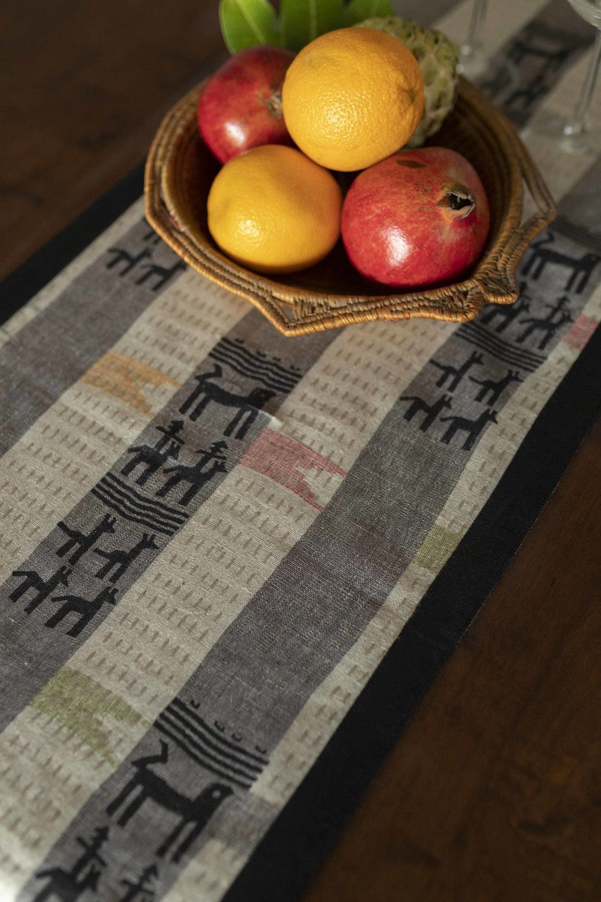 Renaissance meaning rebirth, refers to a period in European civilization that was marked by a revival of Classical learning and wisdom. Bringing it to life is our handwoven cotton linen table runner featuring a detailed running hand embroidery and block print.