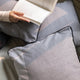 Rimjhim handwoven pure cotton cushion covers feature modern woven stripes in deep grey. The artisans' inspiration lies in Rimjhim or, the pitter-patter of a light drizzle.