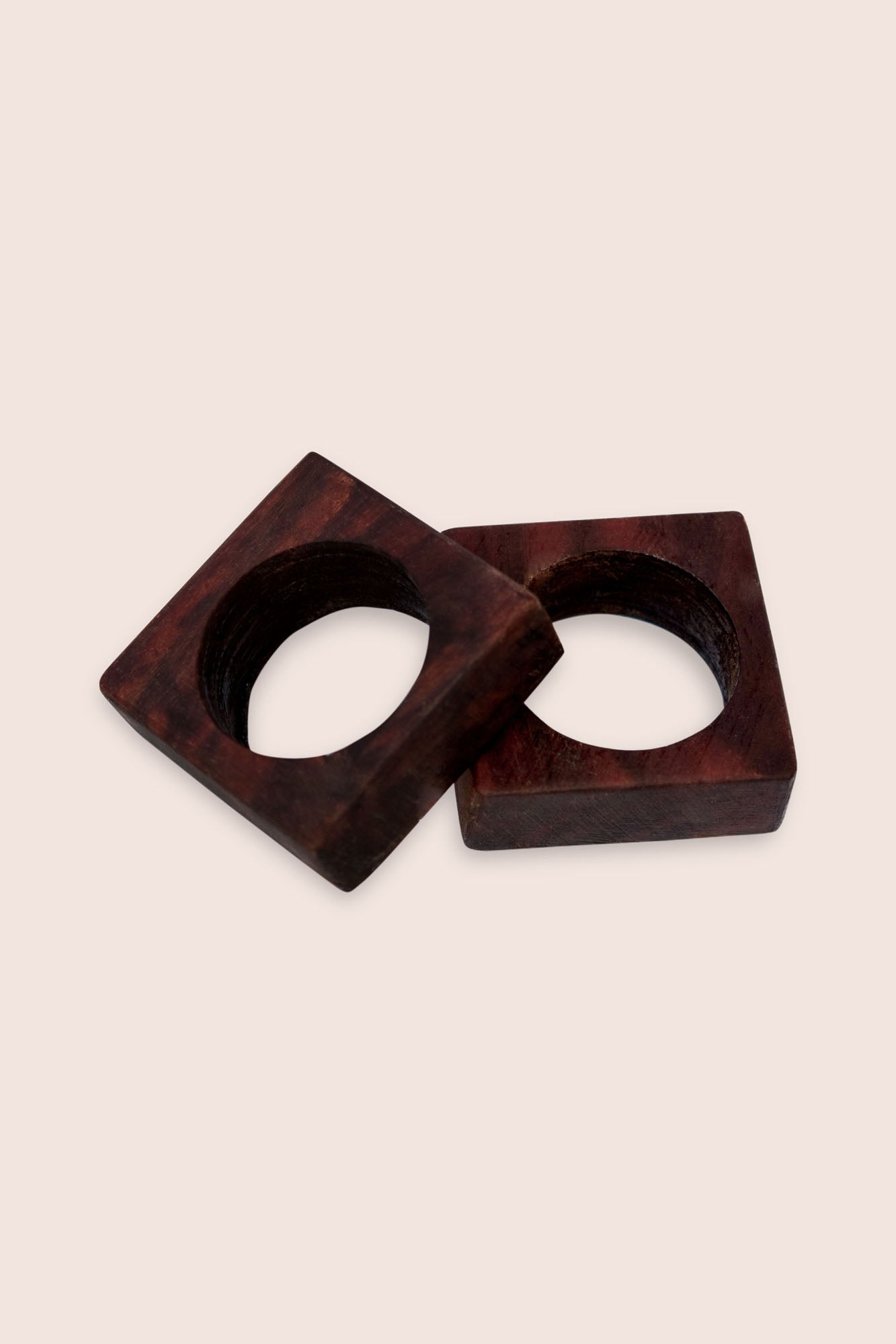 Natural wood square rings for napkins. Finely handmade for sustainable use.