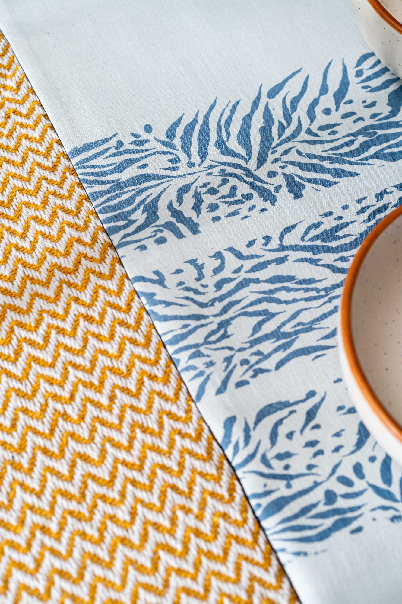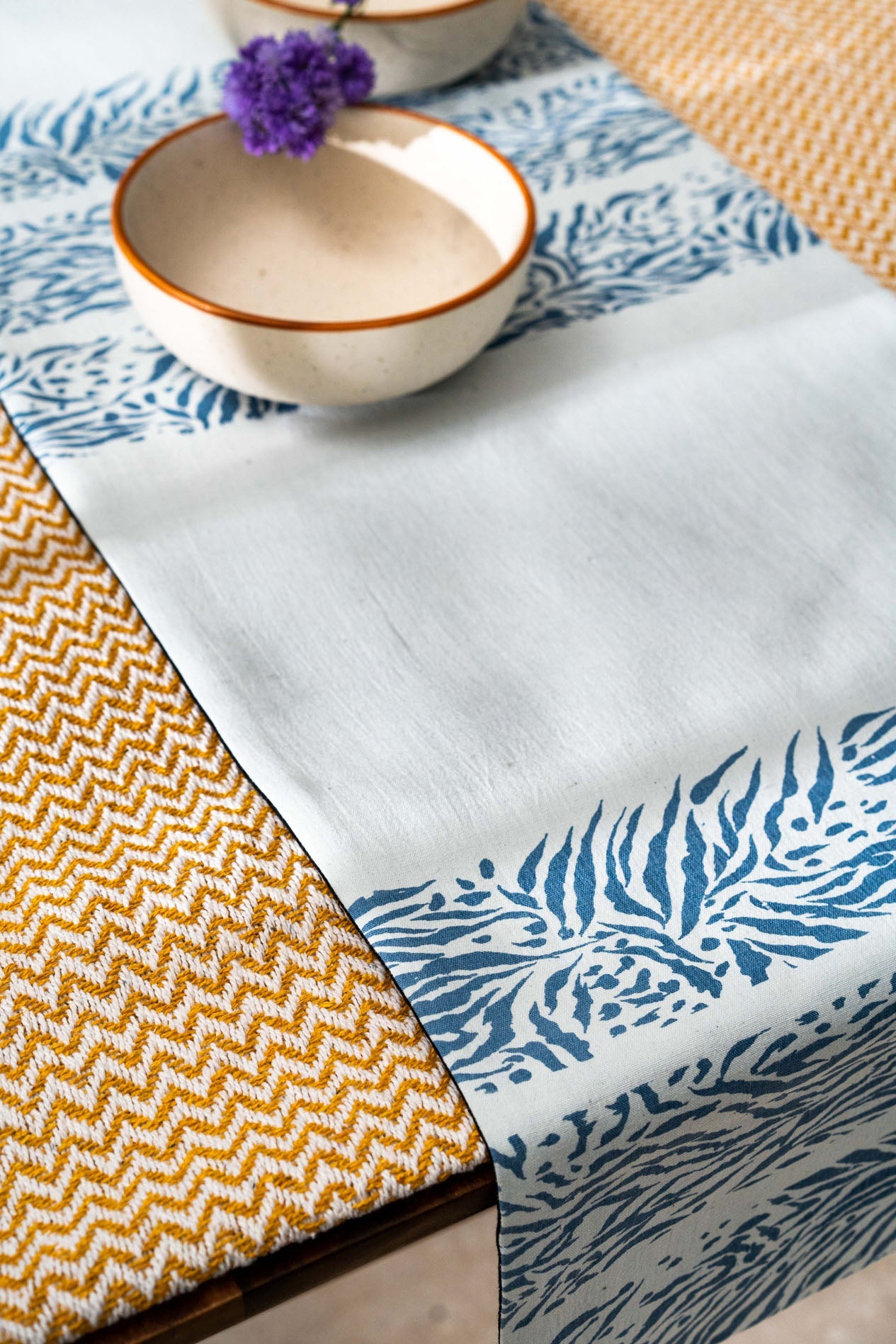 Sutoraipufuro means the fluid stripes handwoven cotton fabric. The hand block printed table runner when placed at the garden tables and traditional furniture appears the best fashion.
