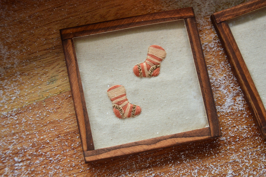 The set includes one beanie coaster & one sock handmade coaster.