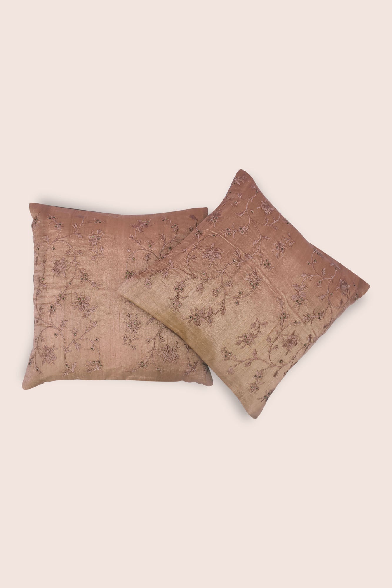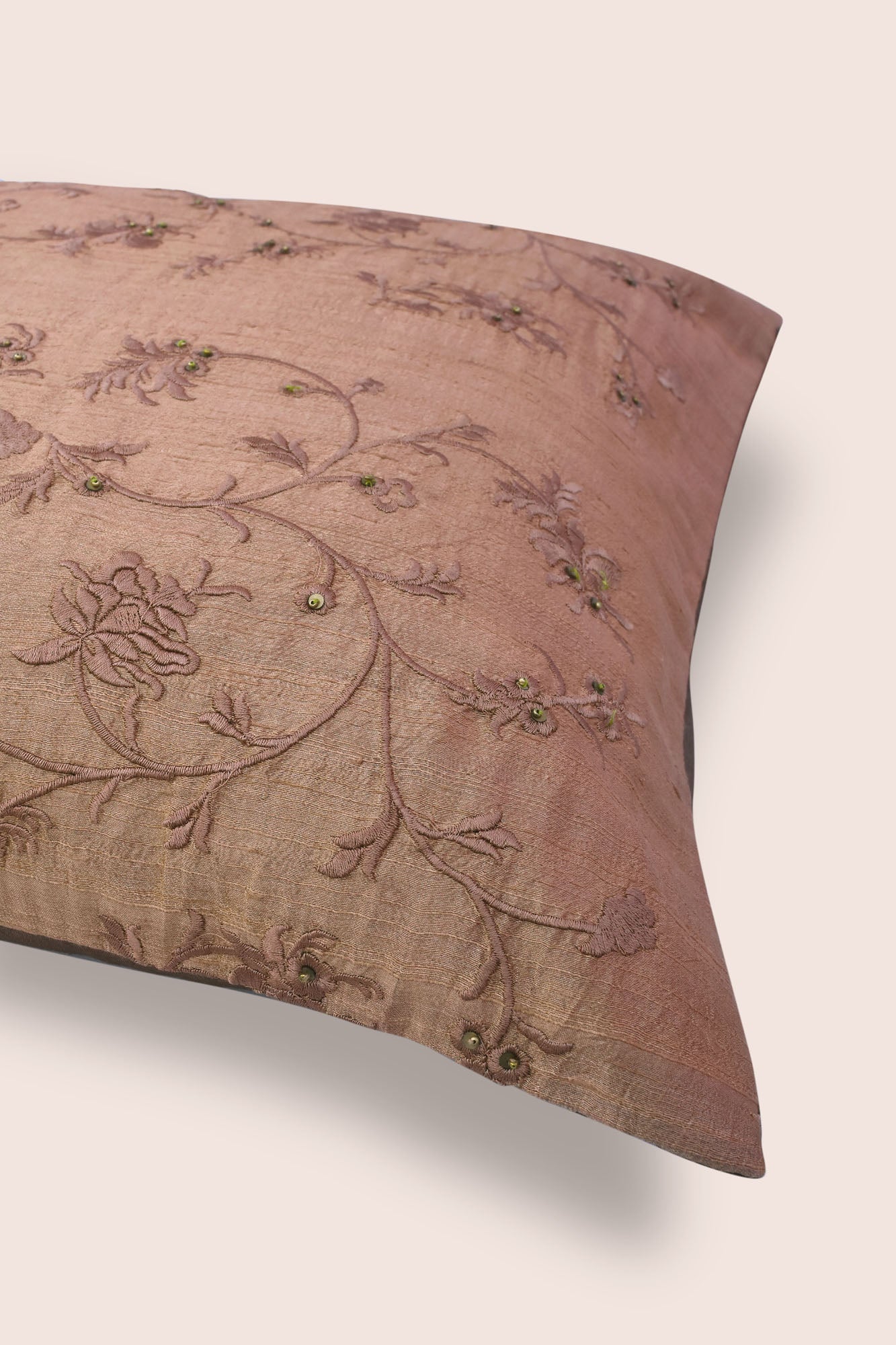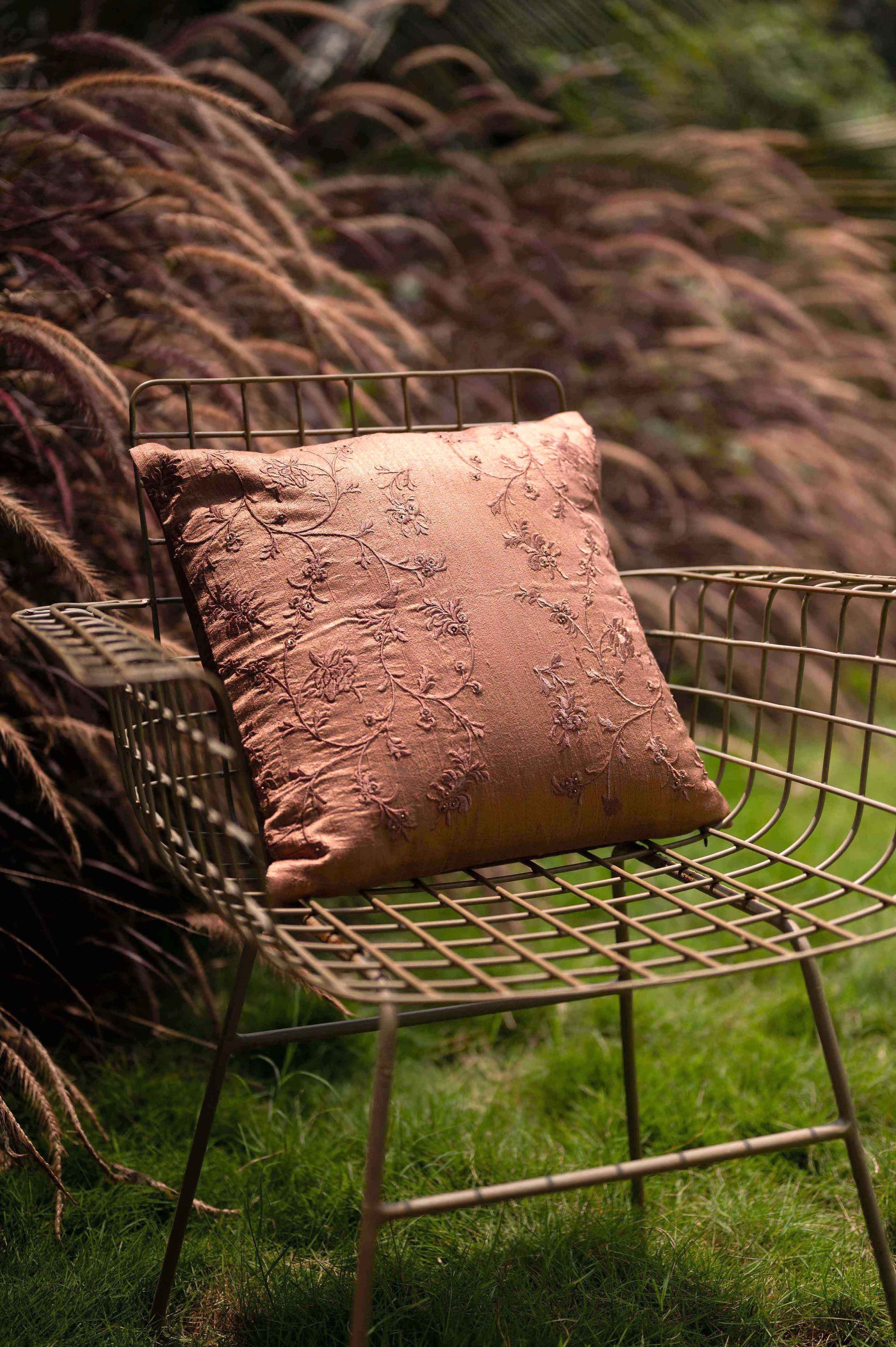 Our Sylvie Handwoven Cushions are embroidered with floral motifs to elevate your space with a scintillating spirit for the season. The handwoven Dupion Silk cushions in brown are inspired by William Morris's artwork to add a touch of artistic flair to your festivities.