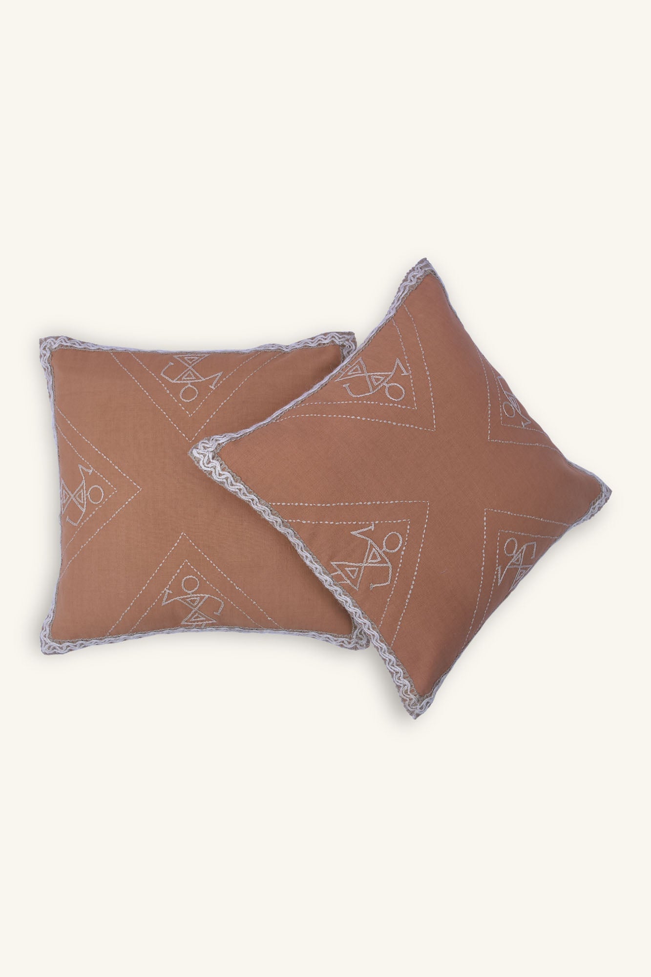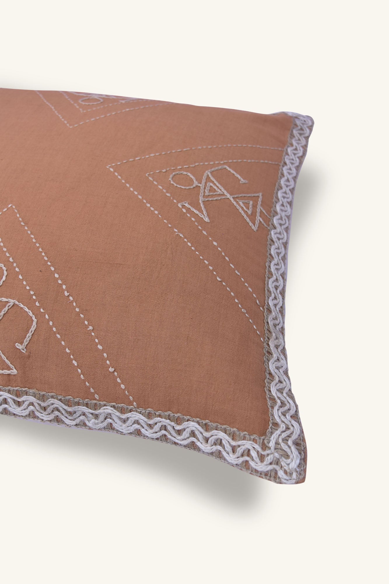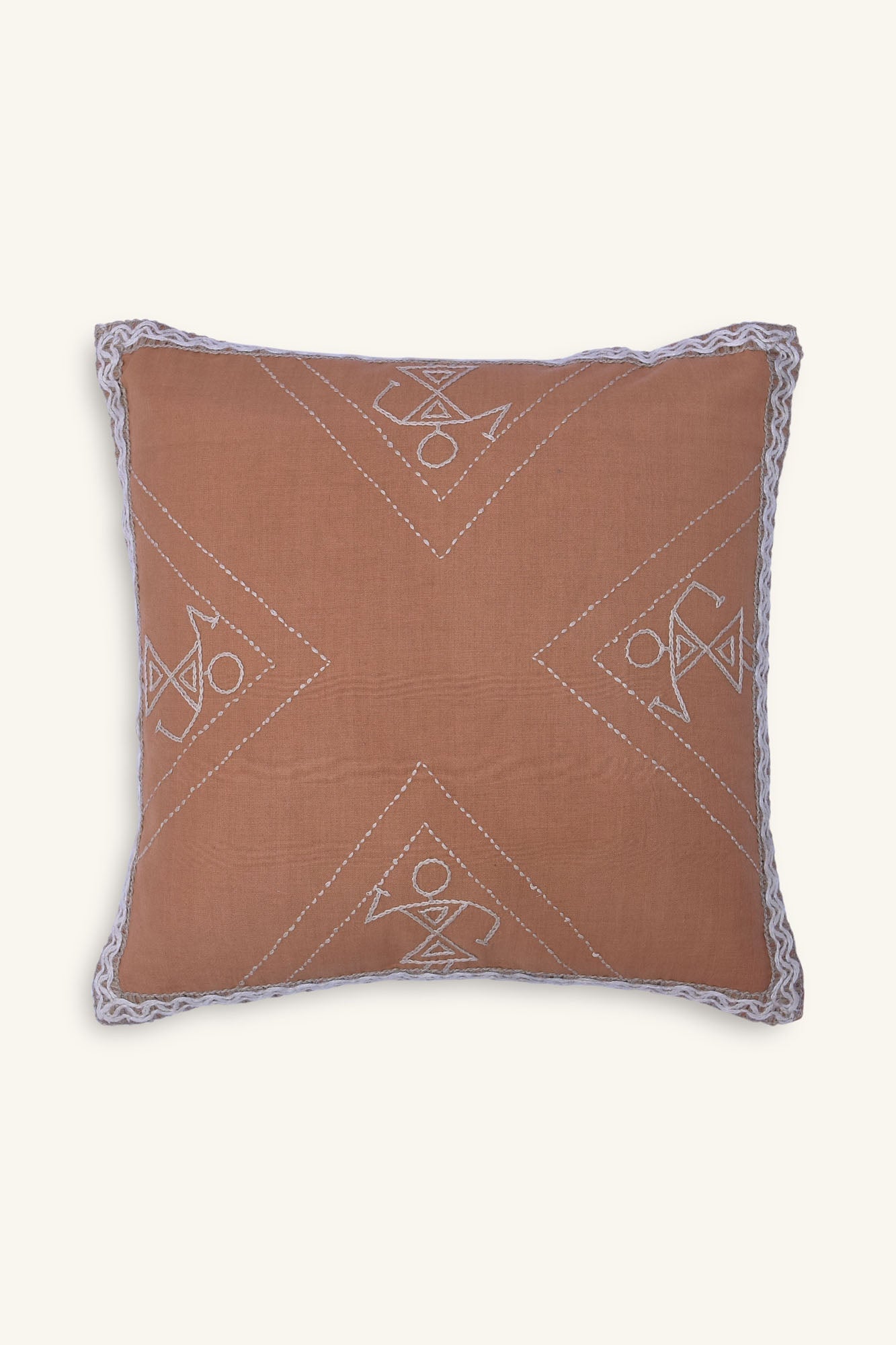 Tribal dance has divine qualities as per Greek ancient stories. The hand-woven cushion cover depicts Greek and Warli art, paired with handwoven khadi cotton and hand embroidery. The clay background depicts celebratory designs and the drum masters.