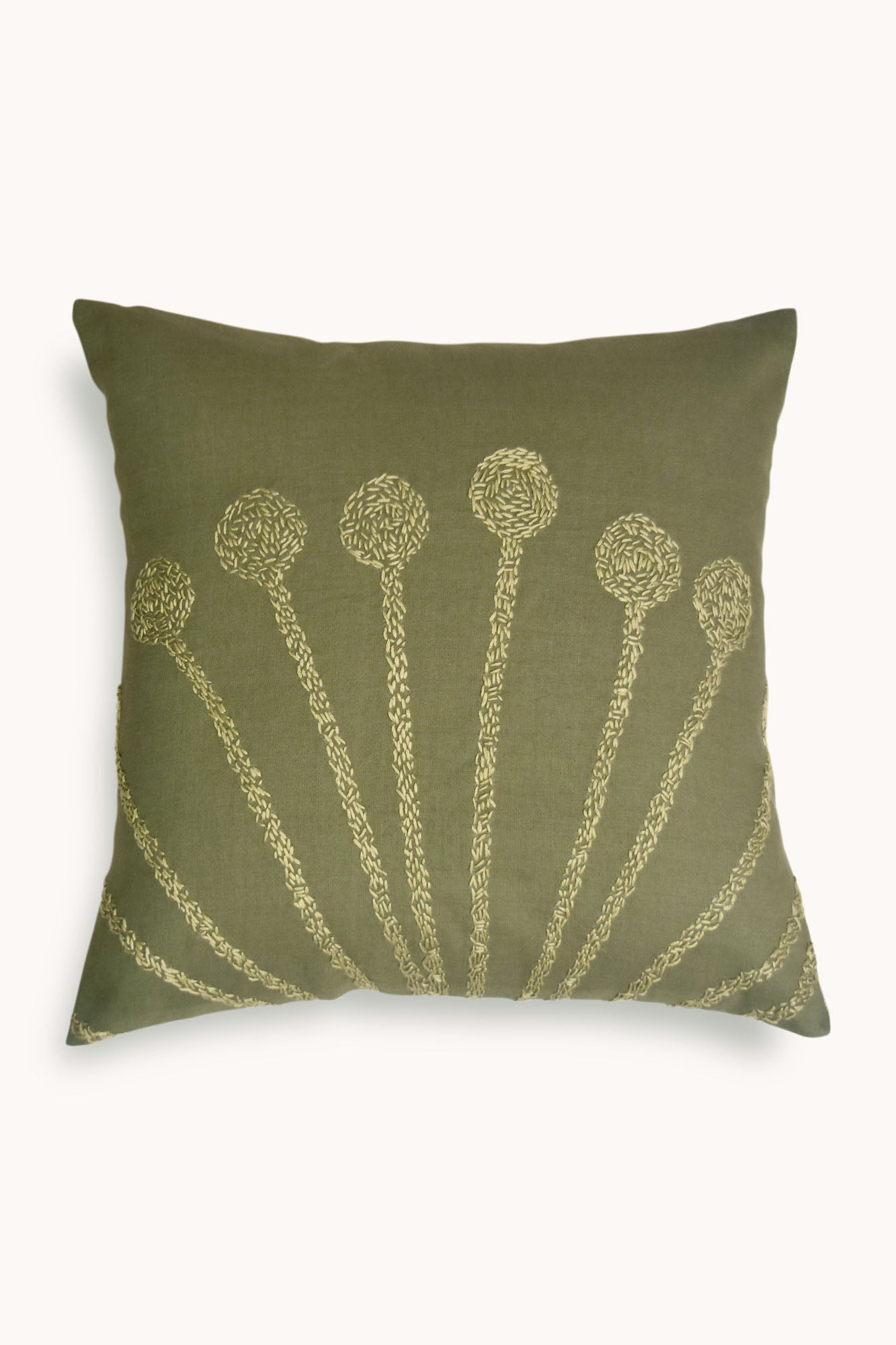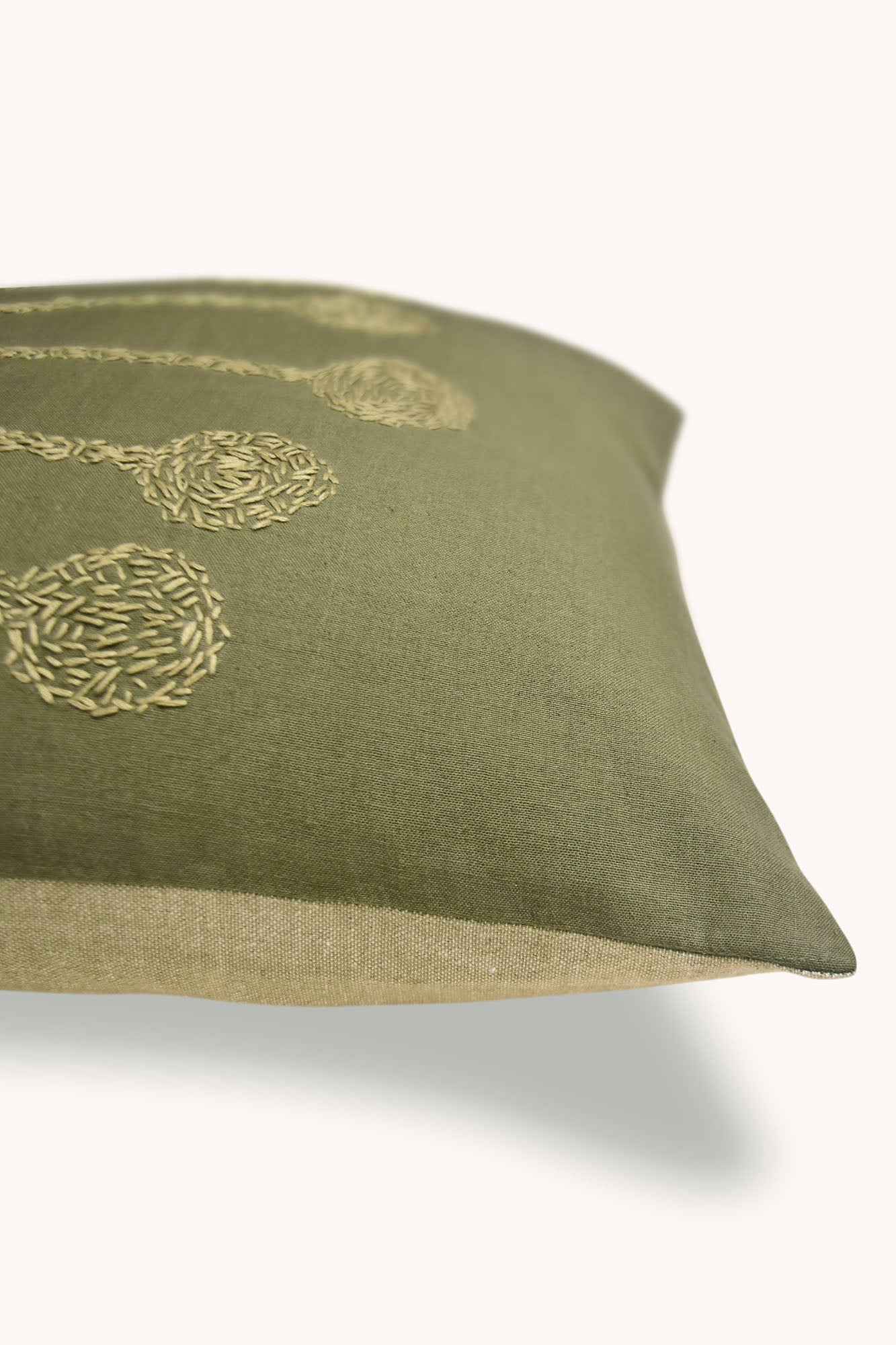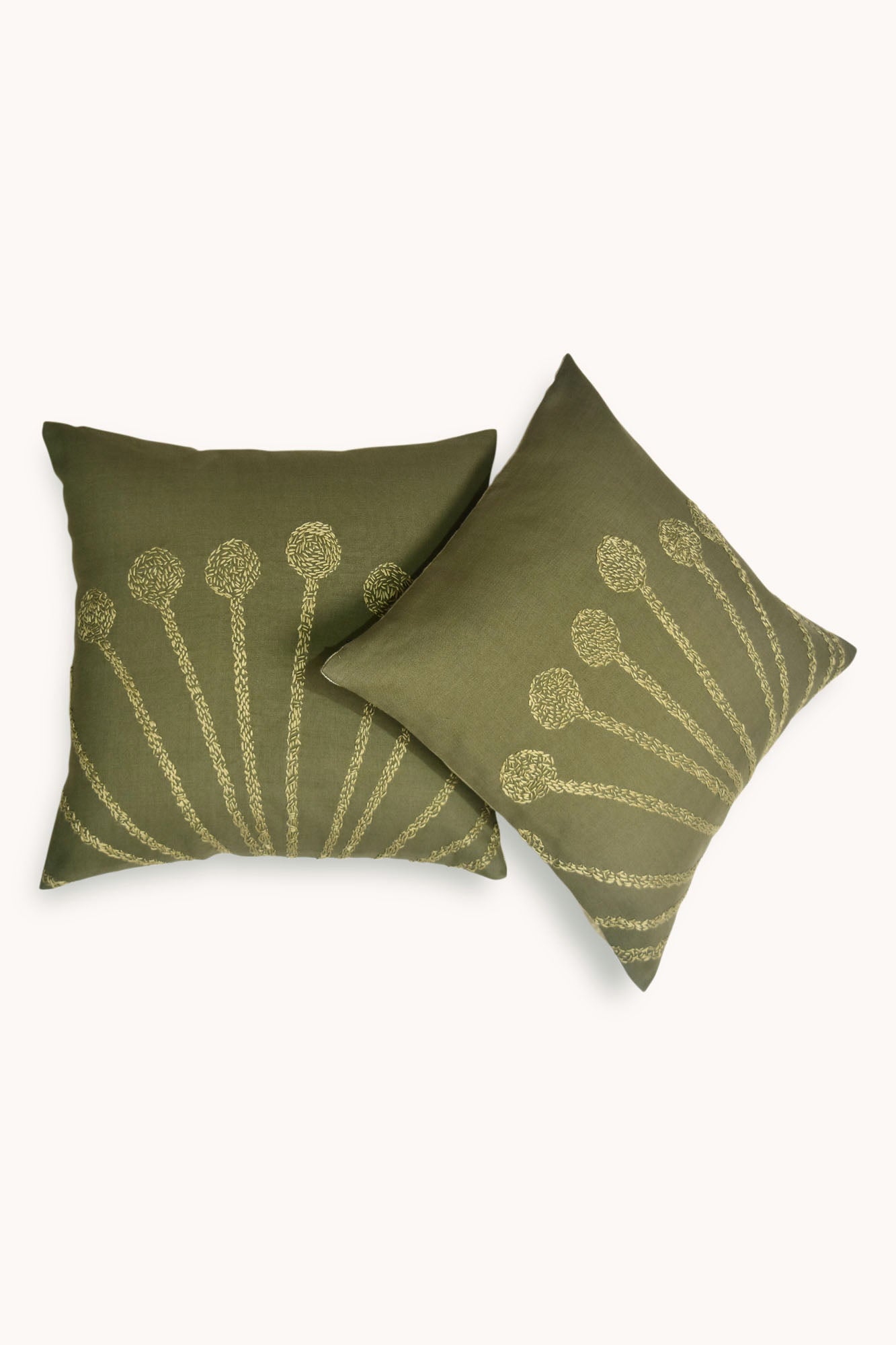 The Yuma handwoven cotton cushions are one of a kind when it comes to the pleasurely combination of the green colour palette. The hand embroidery embedded on the cushion is inspired by the beauty of the Japanese Floral artwork.