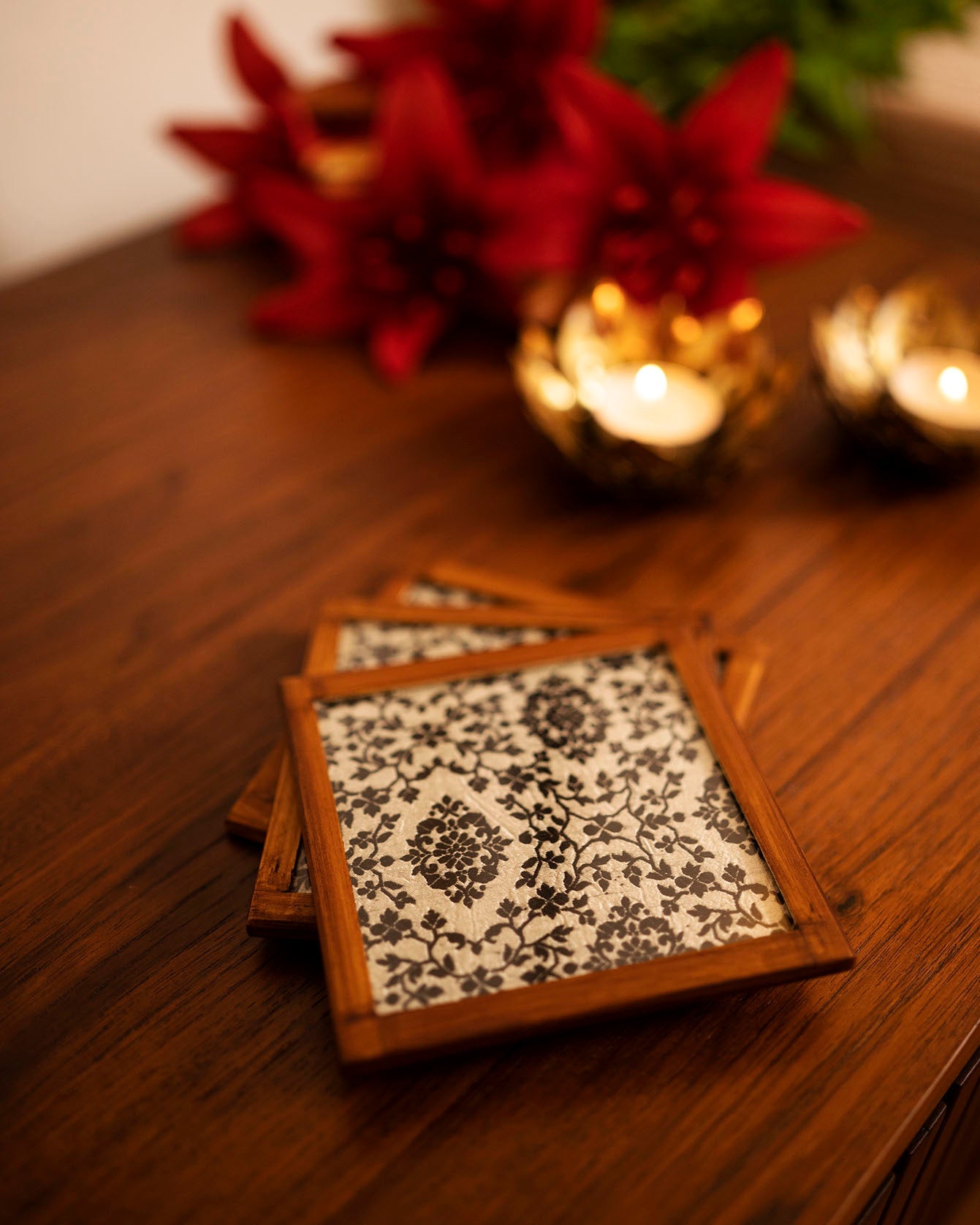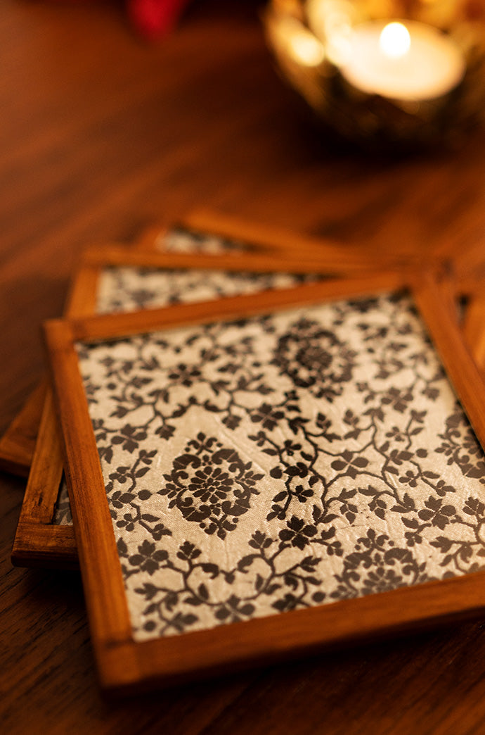 Our Zubdat Handwoven Coasters is woven with jacquard allover designs to elevate your space with a scintillating spirit for the season. The silk cotton coasters in off white is inspired by the Mughal Era to add a touch of artistic flair to your festivities.